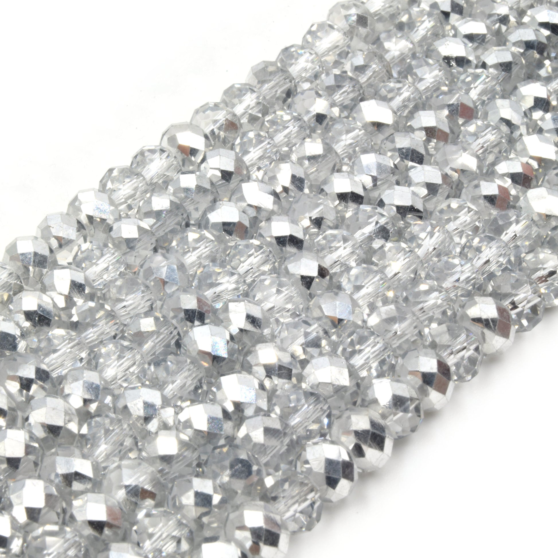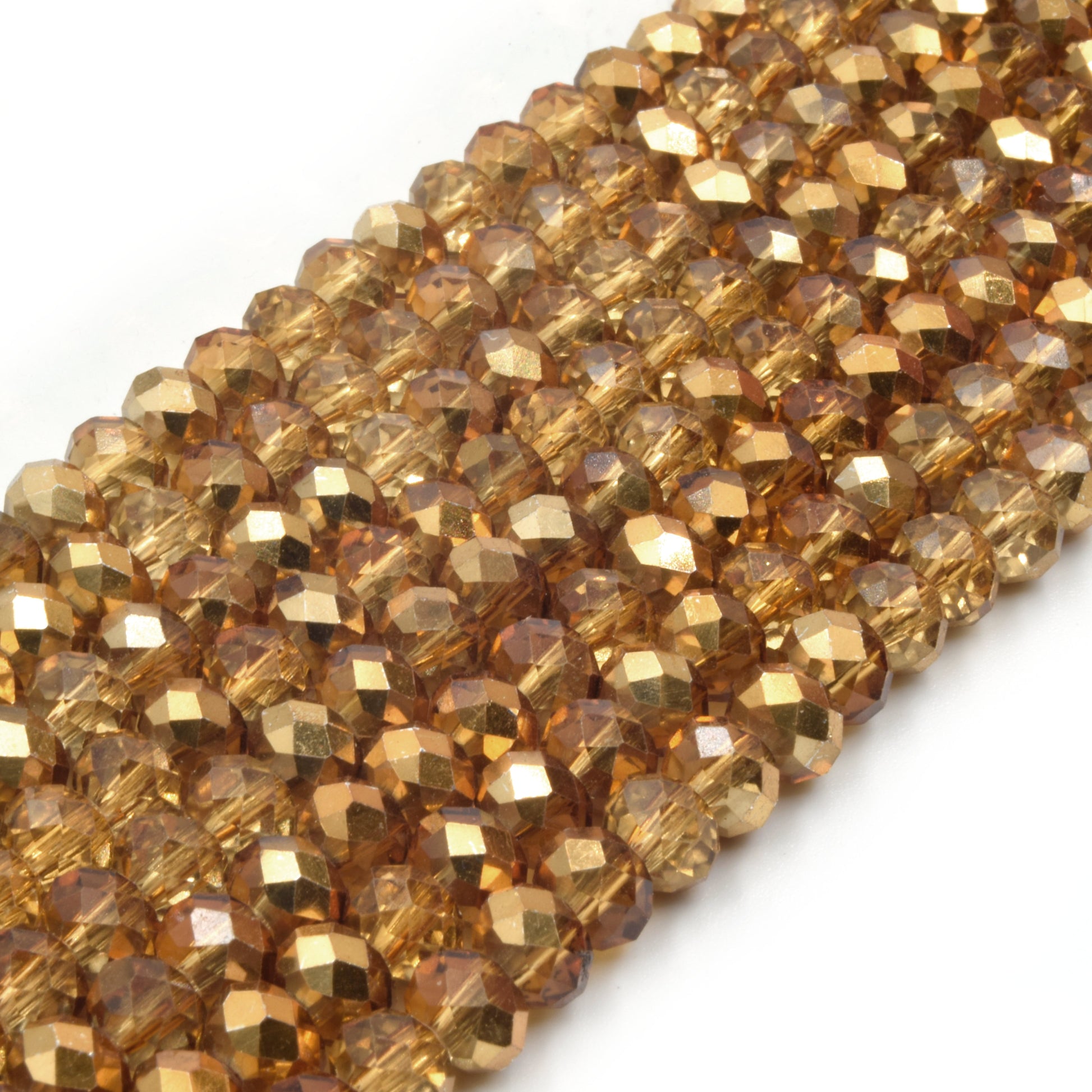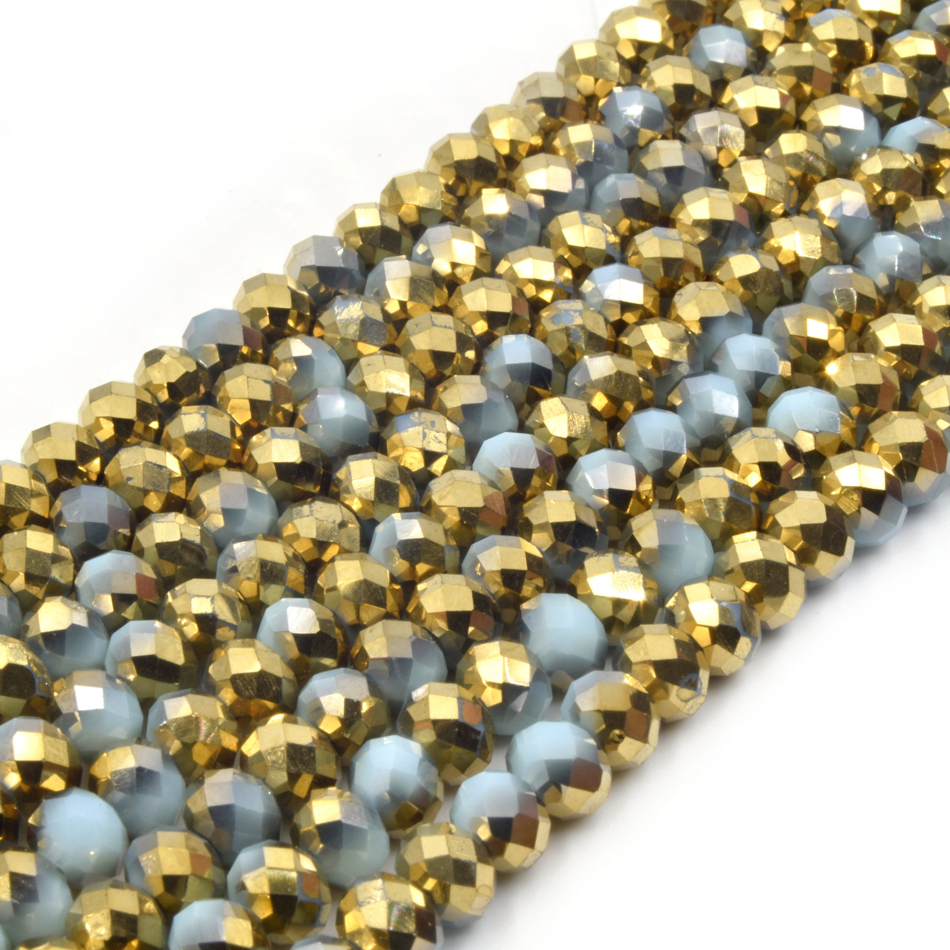 Chinese Crystal Beads | 6mm Faceted Bi-Color Metallic Rondelle Shaped Crystal Beads | Gold, Silver, Black, Blue