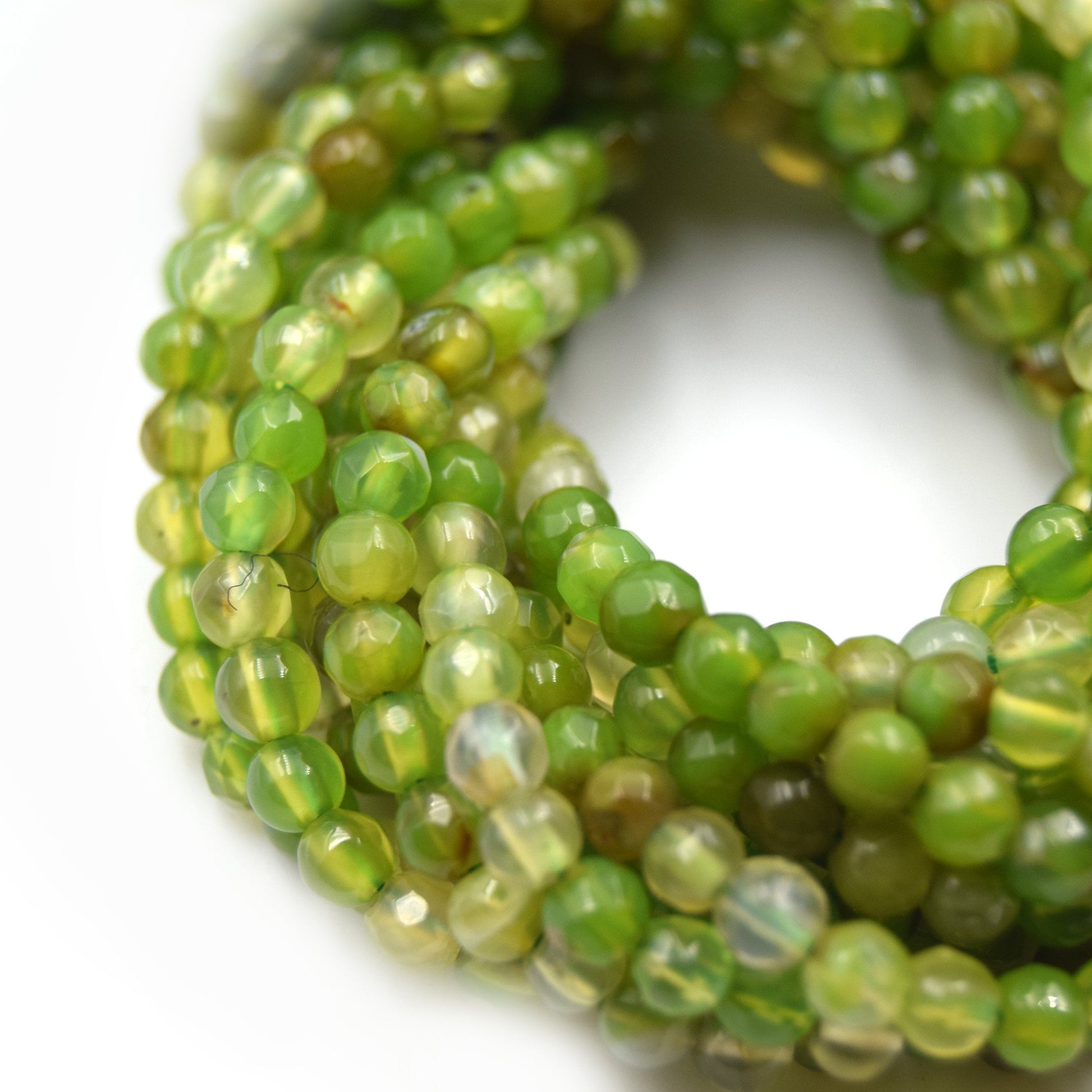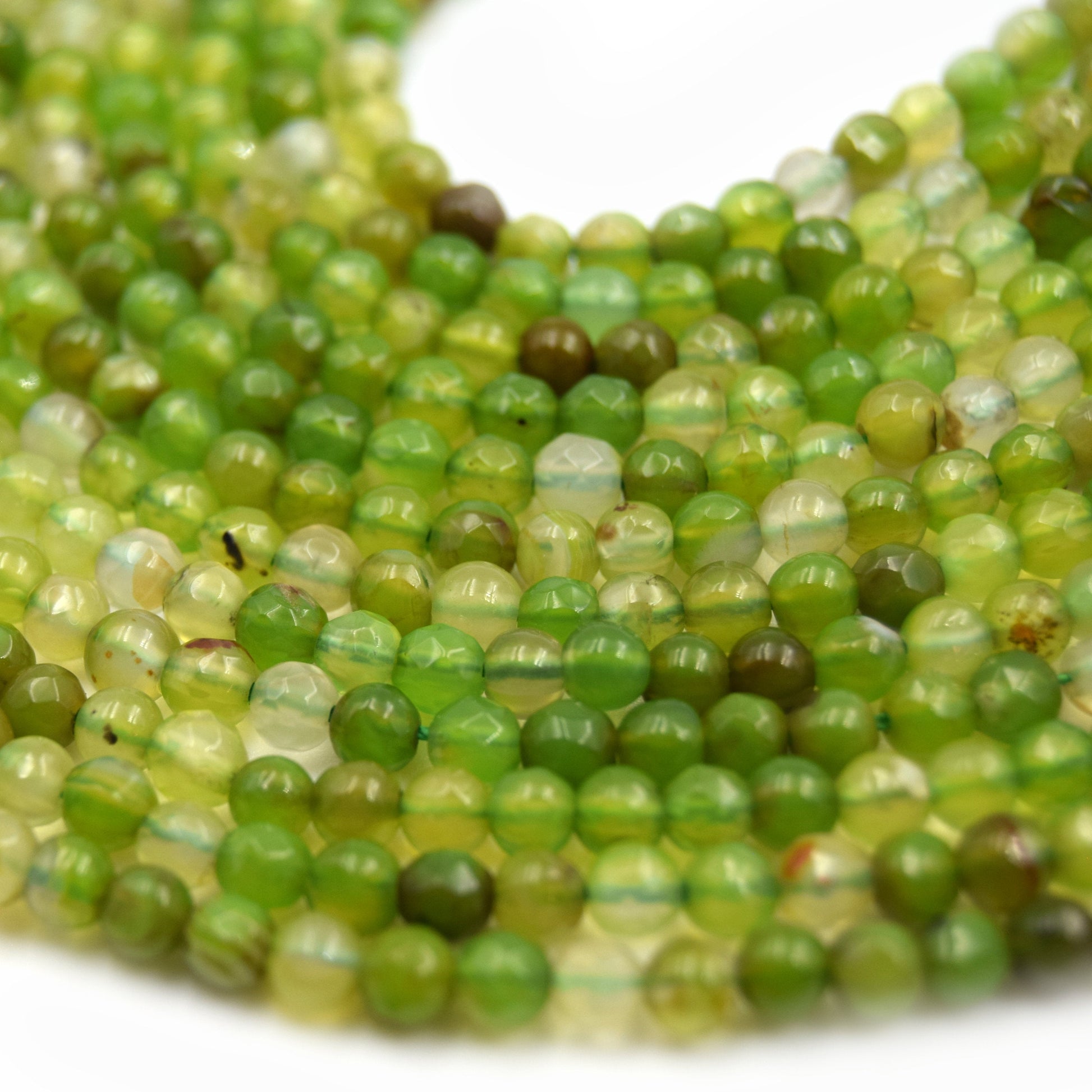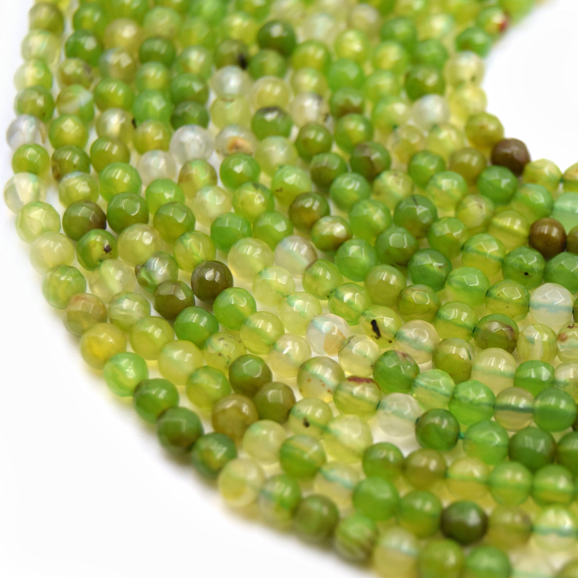 Dyed Agate Beads | 4MM Dyed Mixed Light Green Transparent Faceted Round Gemstone Beads