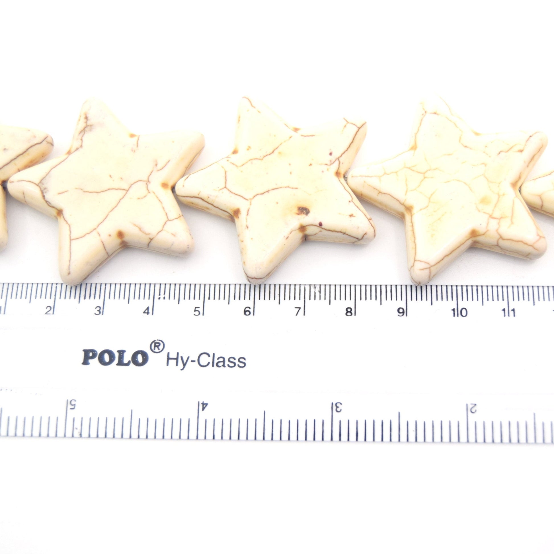 42mm Smooth Brown Veined Off White Howlite Star Shaped Beads with 1mm Holes - (Approx. 15" Strand ~ 11 Beads)