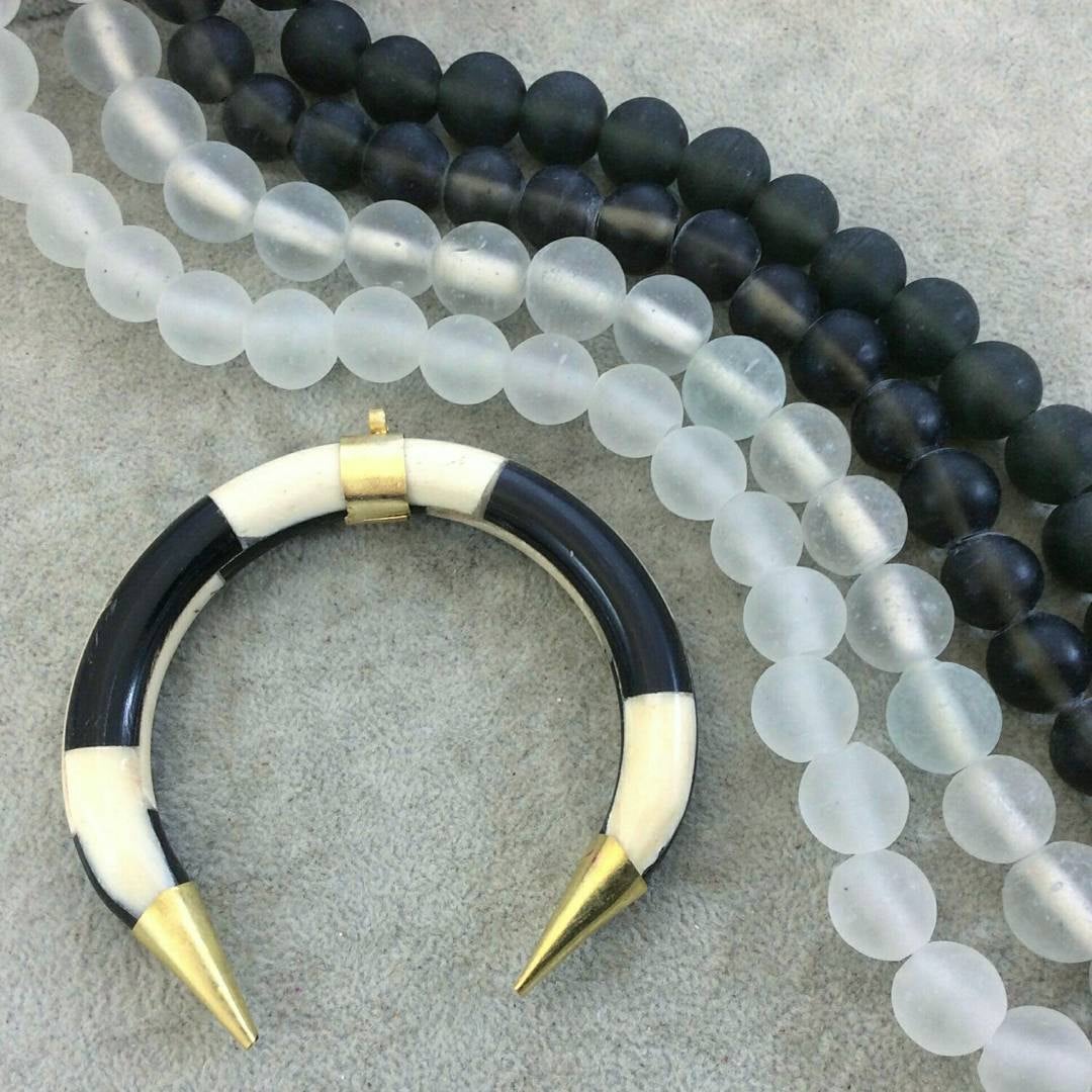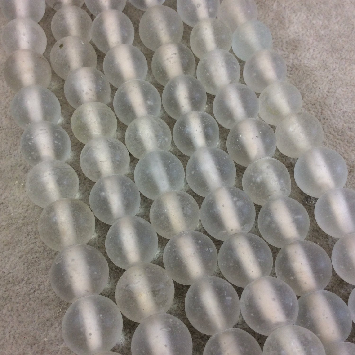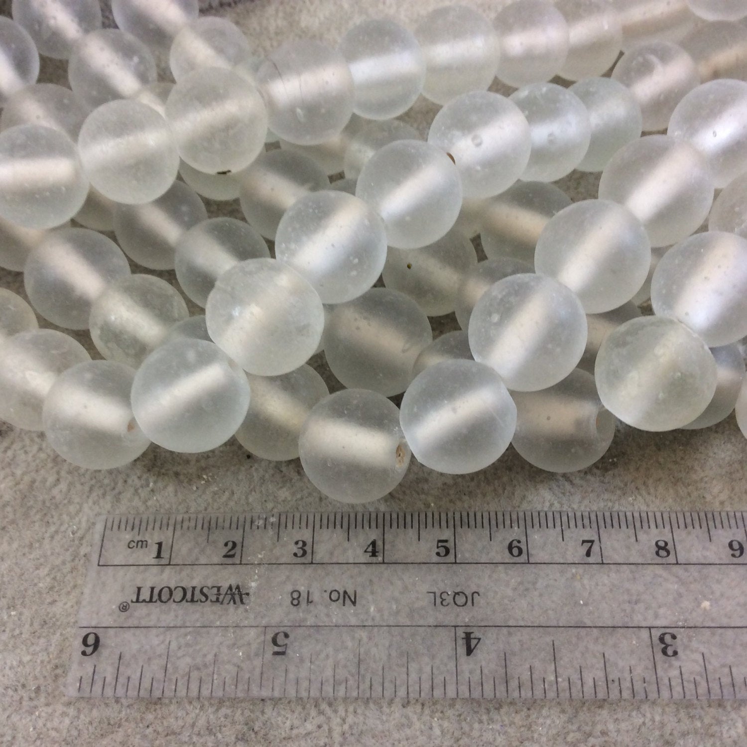 14mm Matte Trans. White Centered Irregular Rondelle Shaped Indian Beach/Sea Glass Beads - Sold by 16" Strands - Approx. 28 Beads