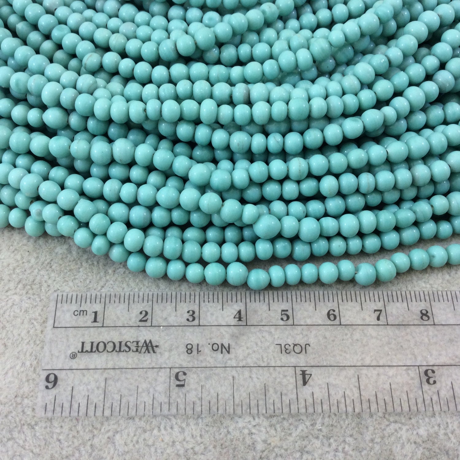 4mm Glossy Seafoam Green Quality Irregular Rondelle Shaped Indian Ceramic Beads - Sold by 16.25" Strand - Approximately 98 Beads