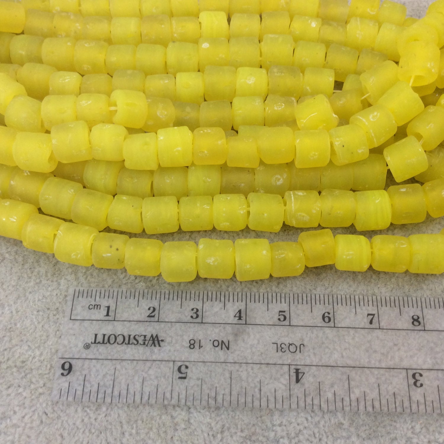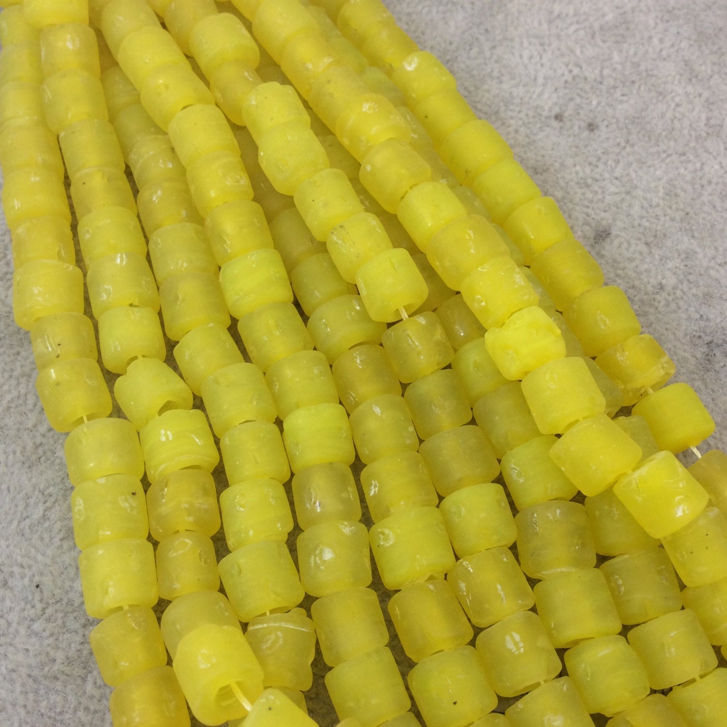 8mm x 9mm Matte Deep Yellow Fat Heishi/Tube Shaped Indian Beach/Sea Glass Beads - Sold by 8" Strands - Approximately 26 Beads