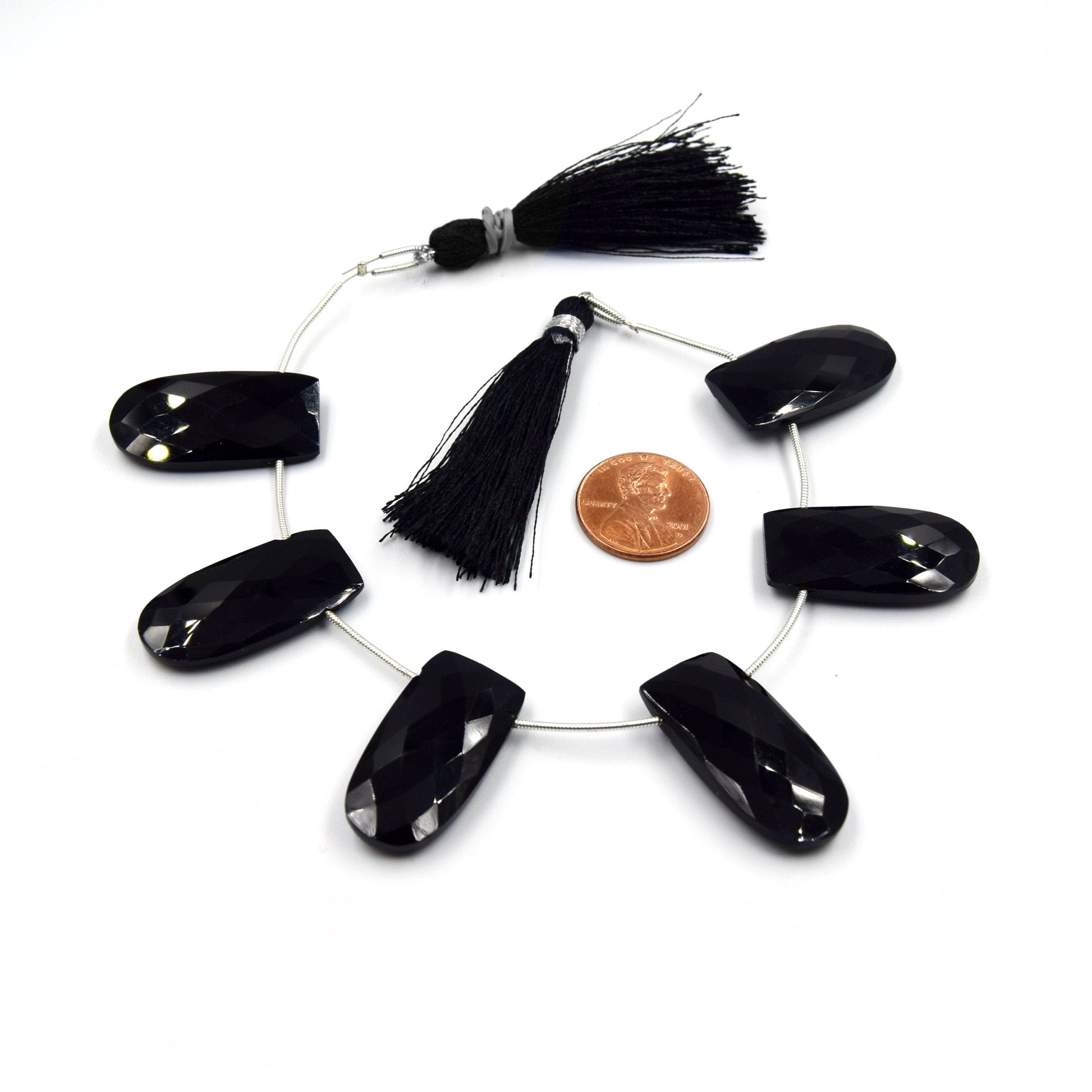 Black Onyx Beads | Hand Cut Indian Gemstone | 15mm x 30mm U Shaped Beads