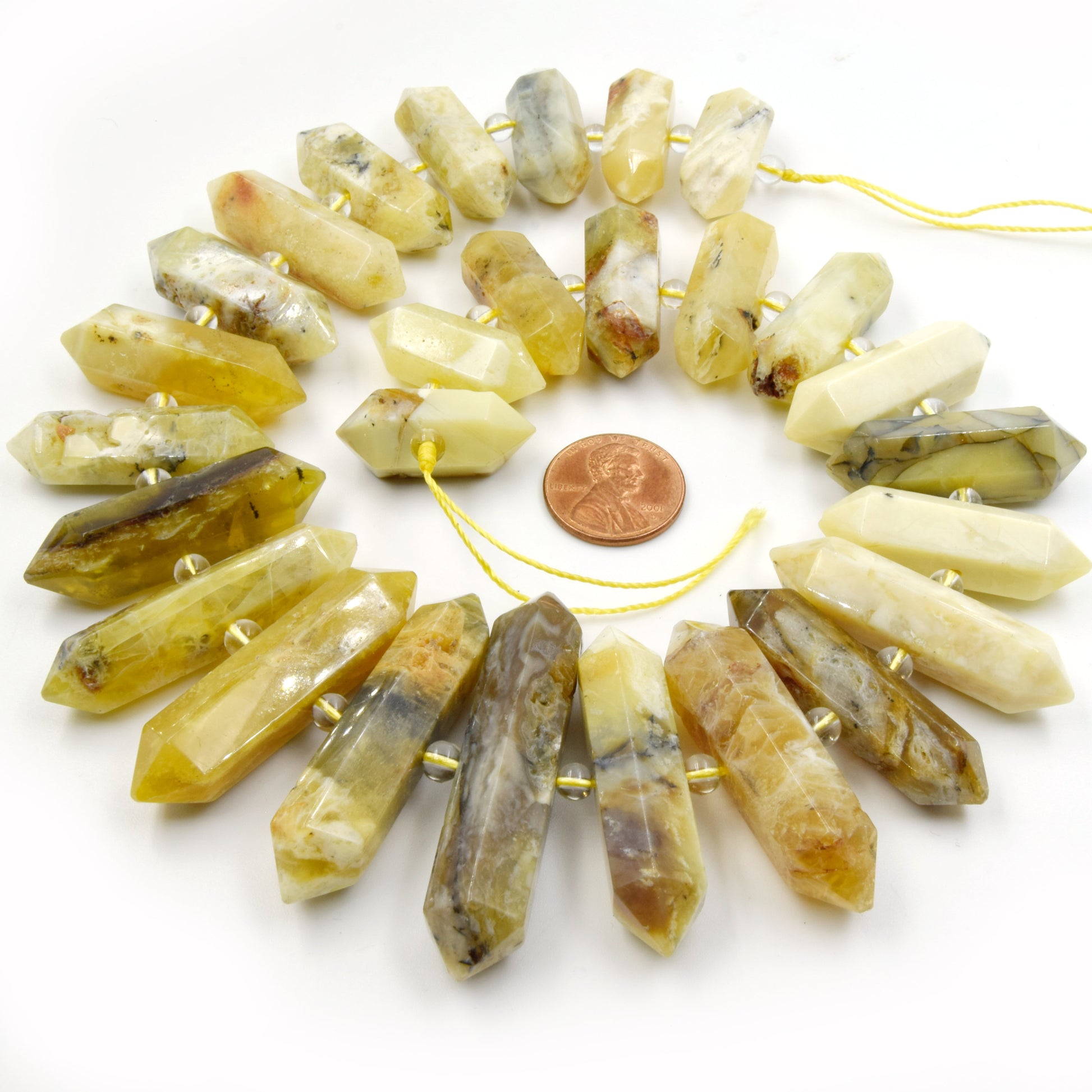 Yellow Opal Beads | Double Point Center Drilled Gemstone Beads | 25mm - 50mm Graduated Double Point Shaped Beads