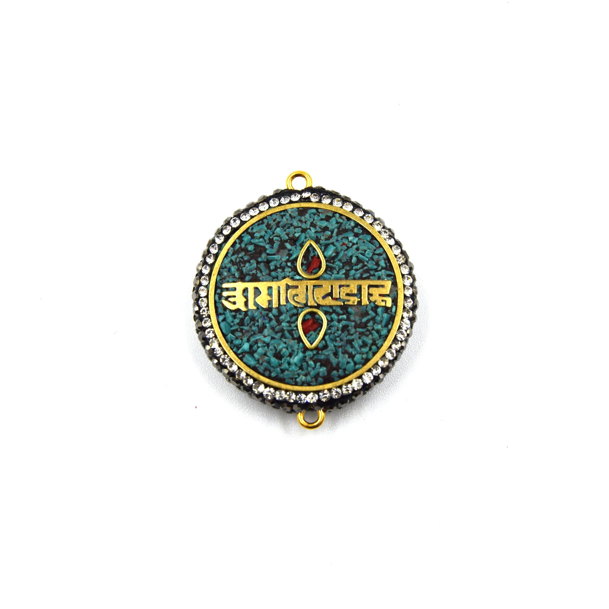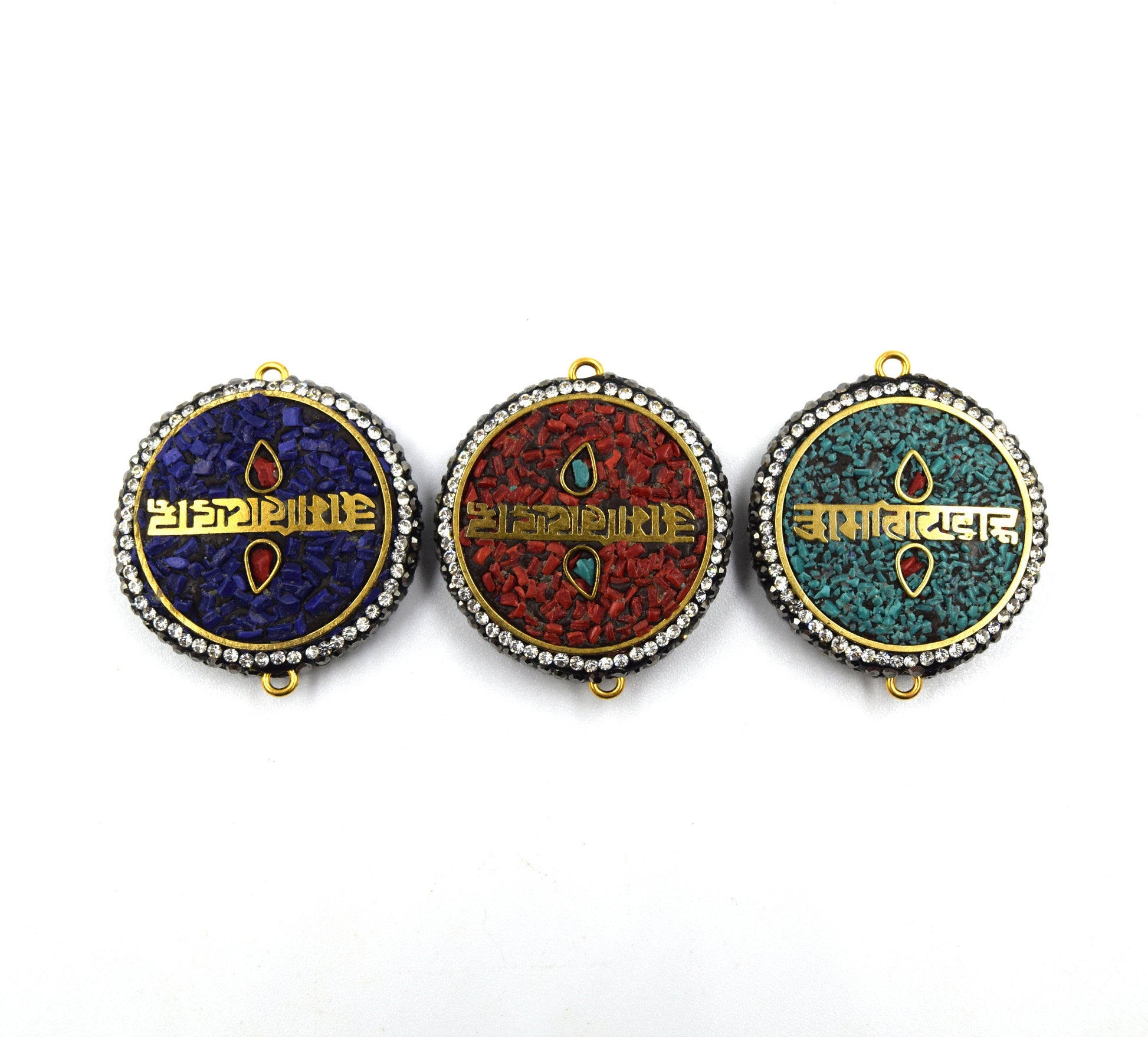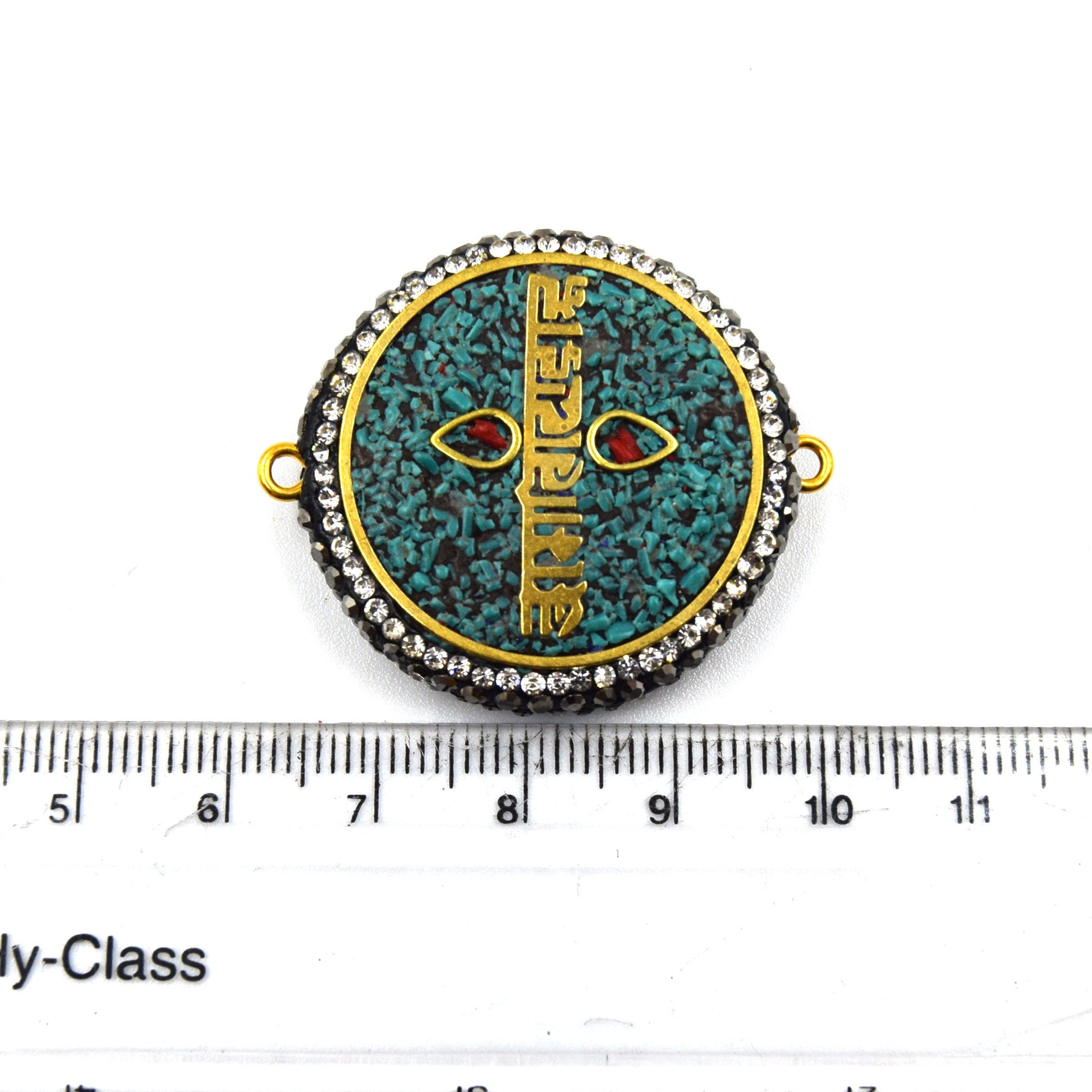 1.5" Tibetan Reversible Design Medallion Coin Shaped Connector Encrusted with Cubic Zirconia - 32mm x 32mm - Sold Individually