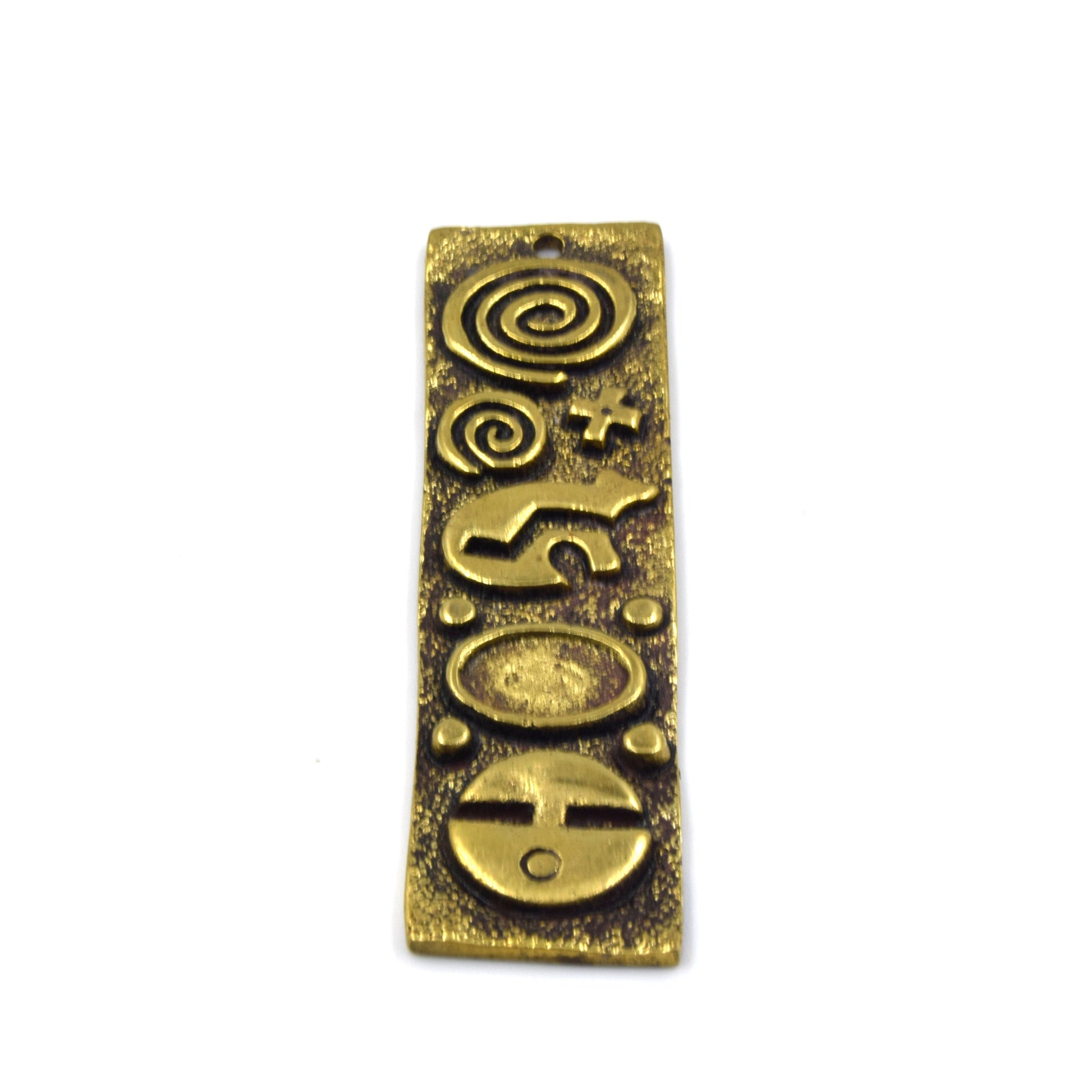 Brass Pendant | 13mm x 68mm Hieroglyphic Tablet Brass Pendants | Antique Gold and Silver