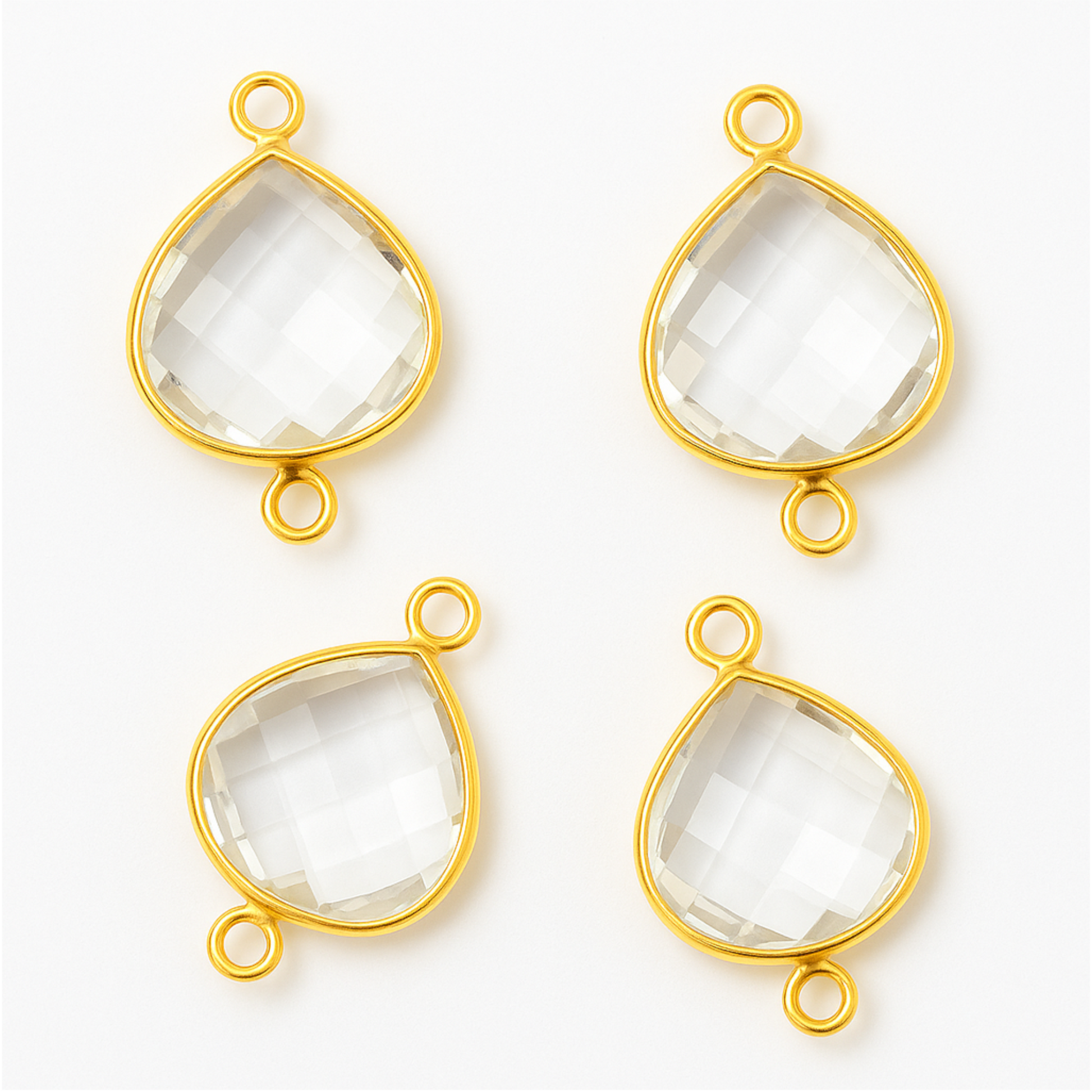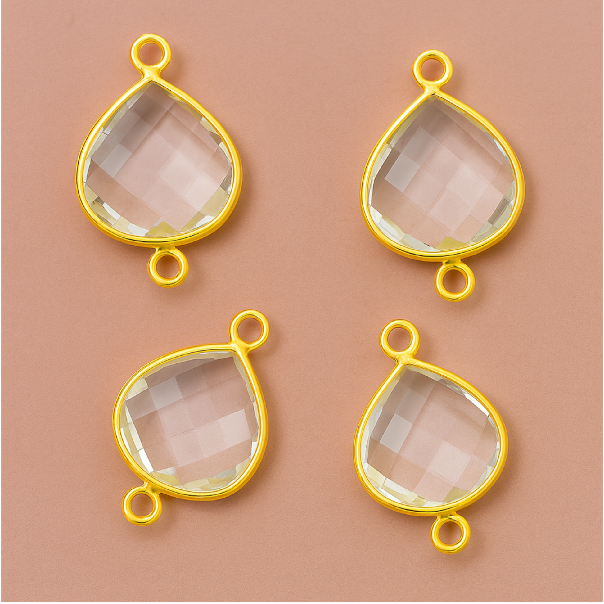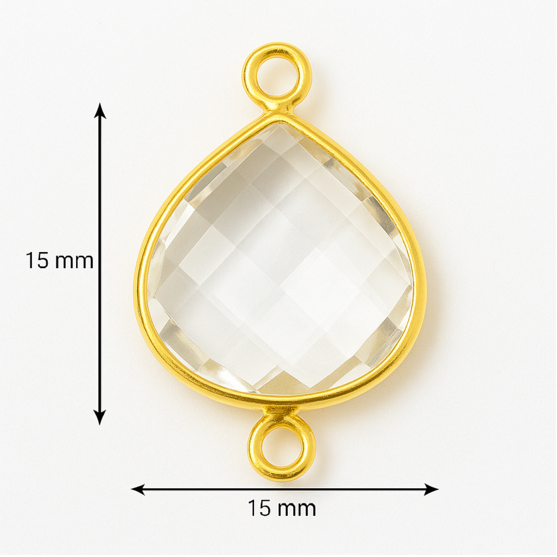 ✨ Clear Hydro Quartz Bezel | Gold Plated Heart Teardrop Connector (15mm x 15mm)