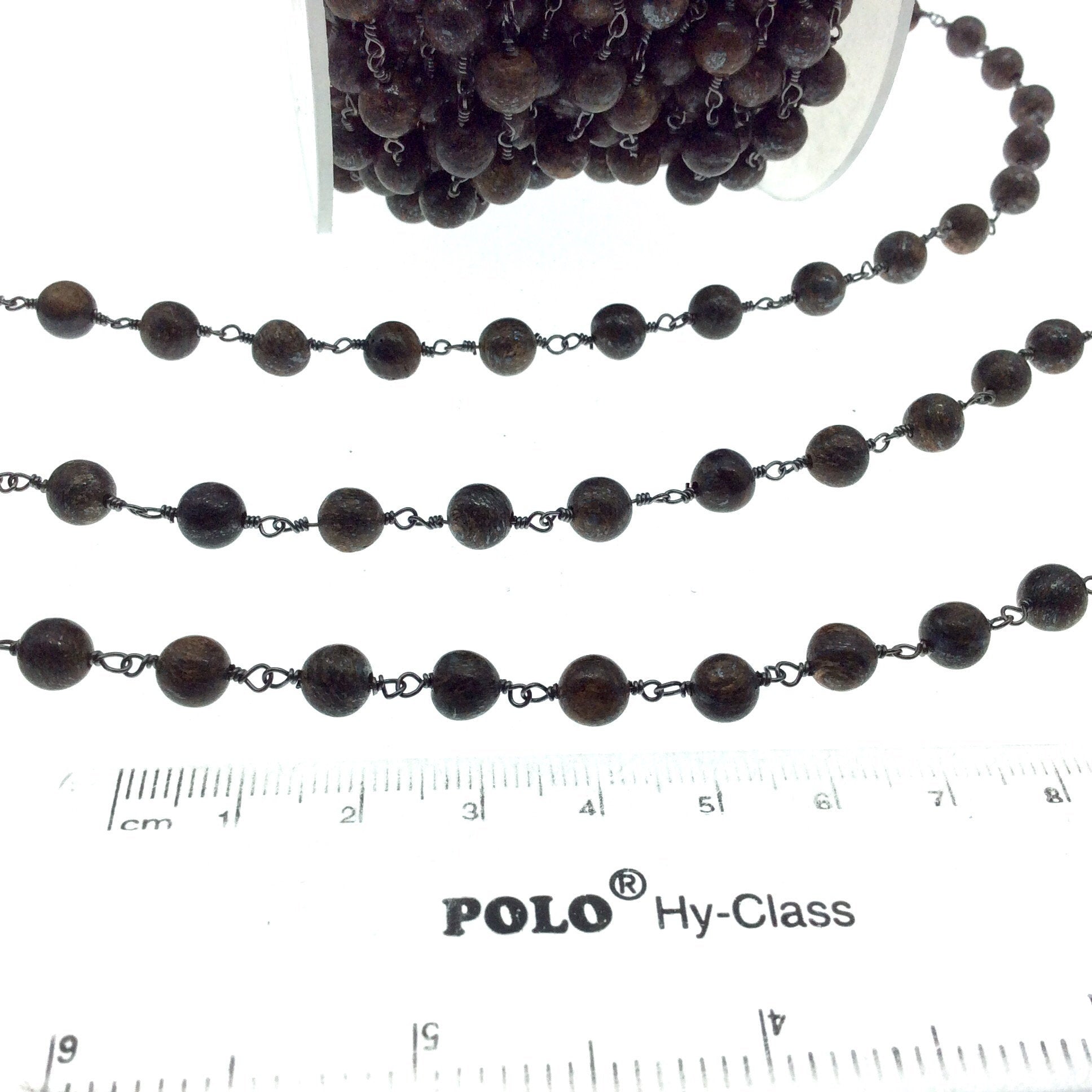 Gunmetal Plated Copper Rosary Chain with 6mm Smooth Round Shaped Bonzite Beads - Sold by the Foot! - Natural Beaded Chain