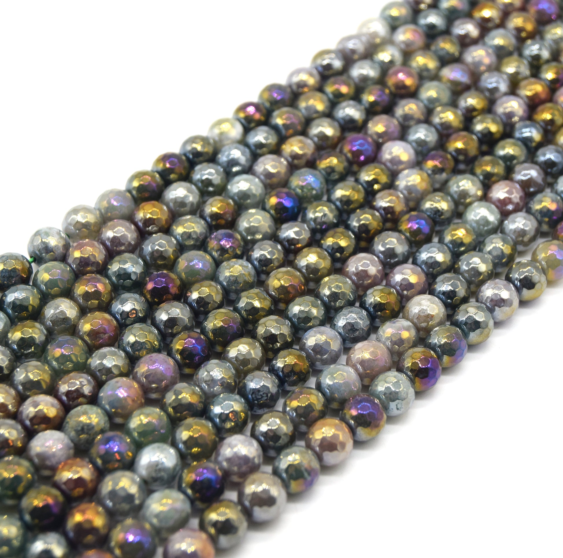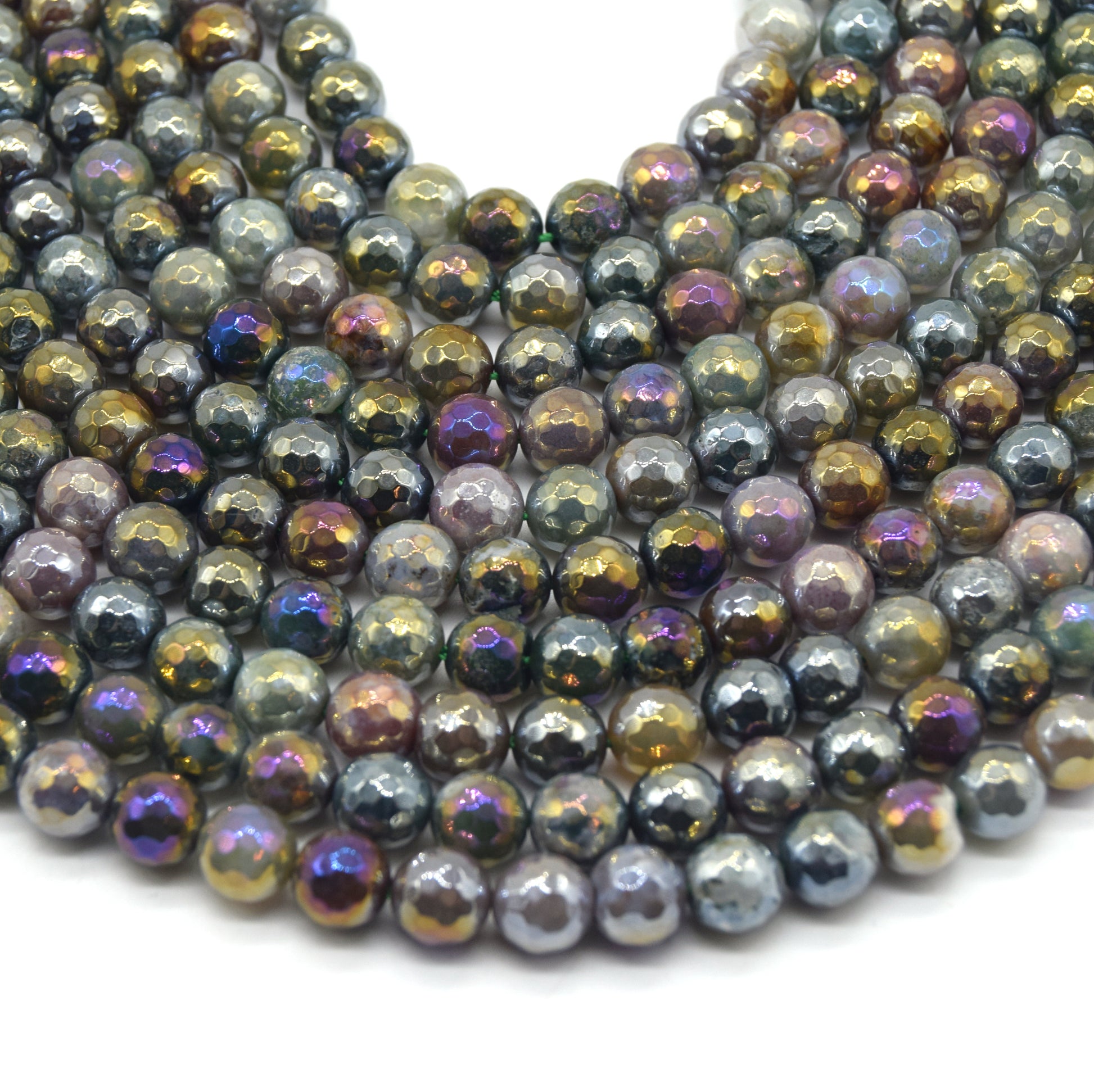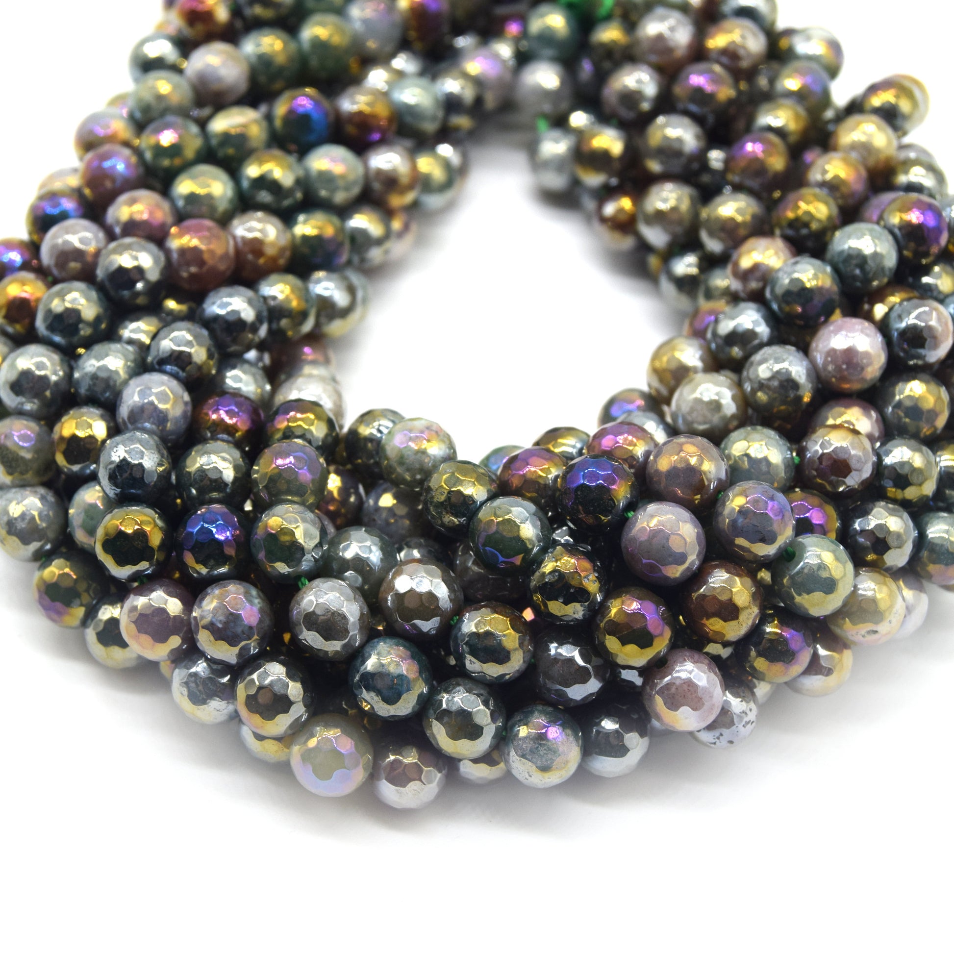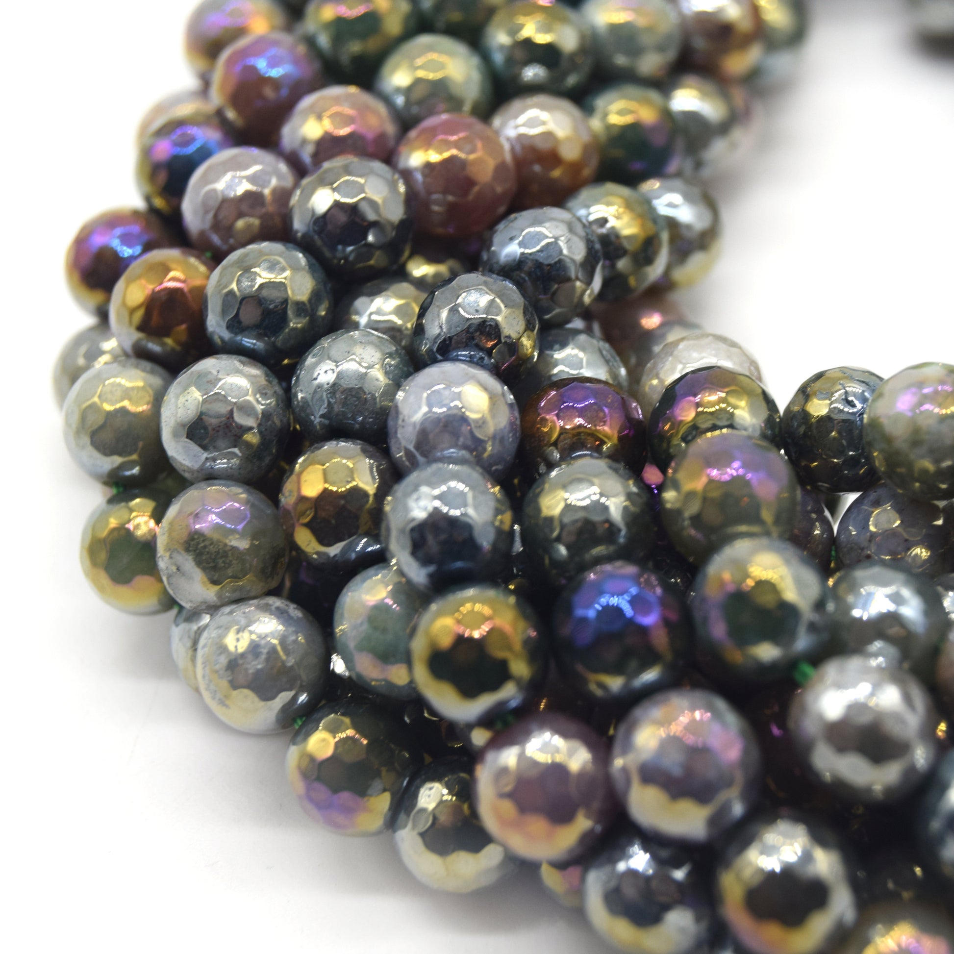 Mystic Coated Indian Agate Beads - Faceted Round AB Coated Agate Gemstone Beads - 8mm & 10mm Available