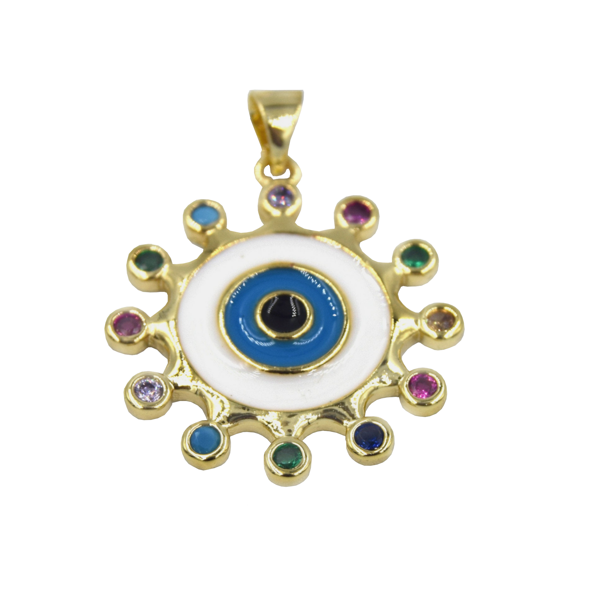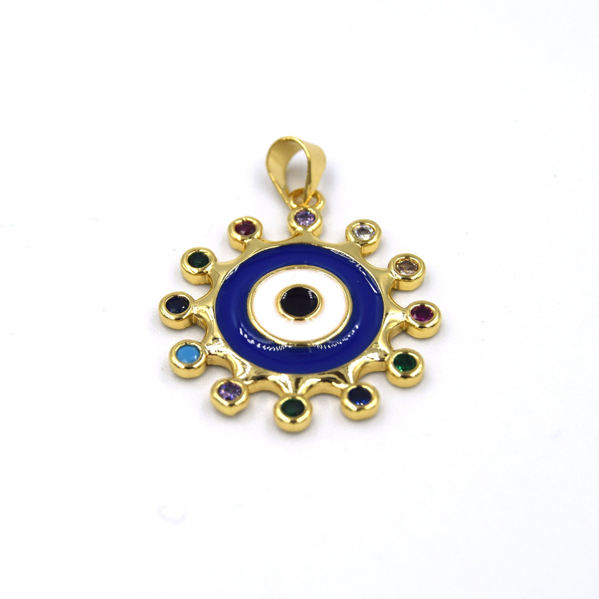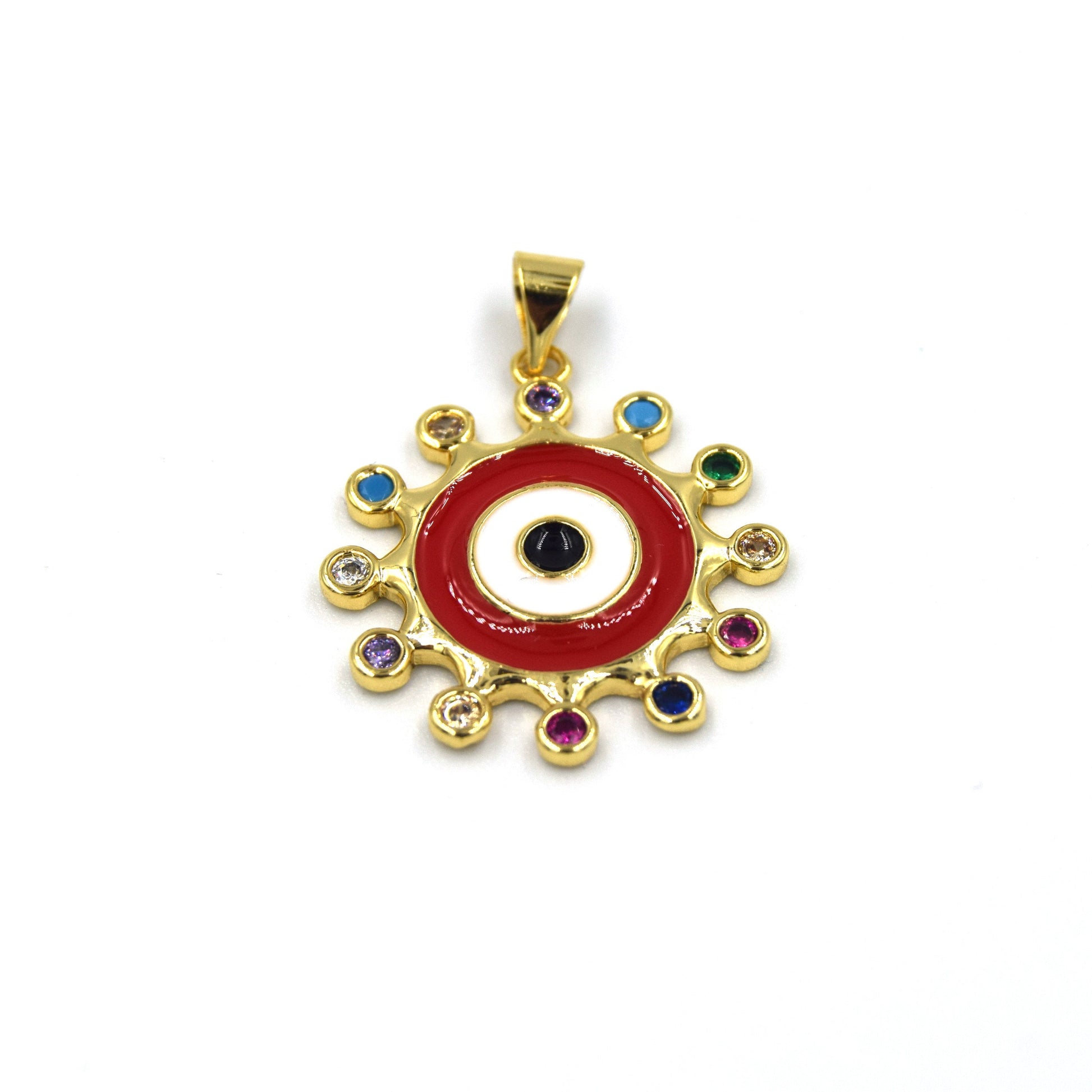CZ and Enamel Brass Pendant | 25mm Enamel Evil Eye with Multicolor Cubic Zirconia - White, Blue, Red, Pink available