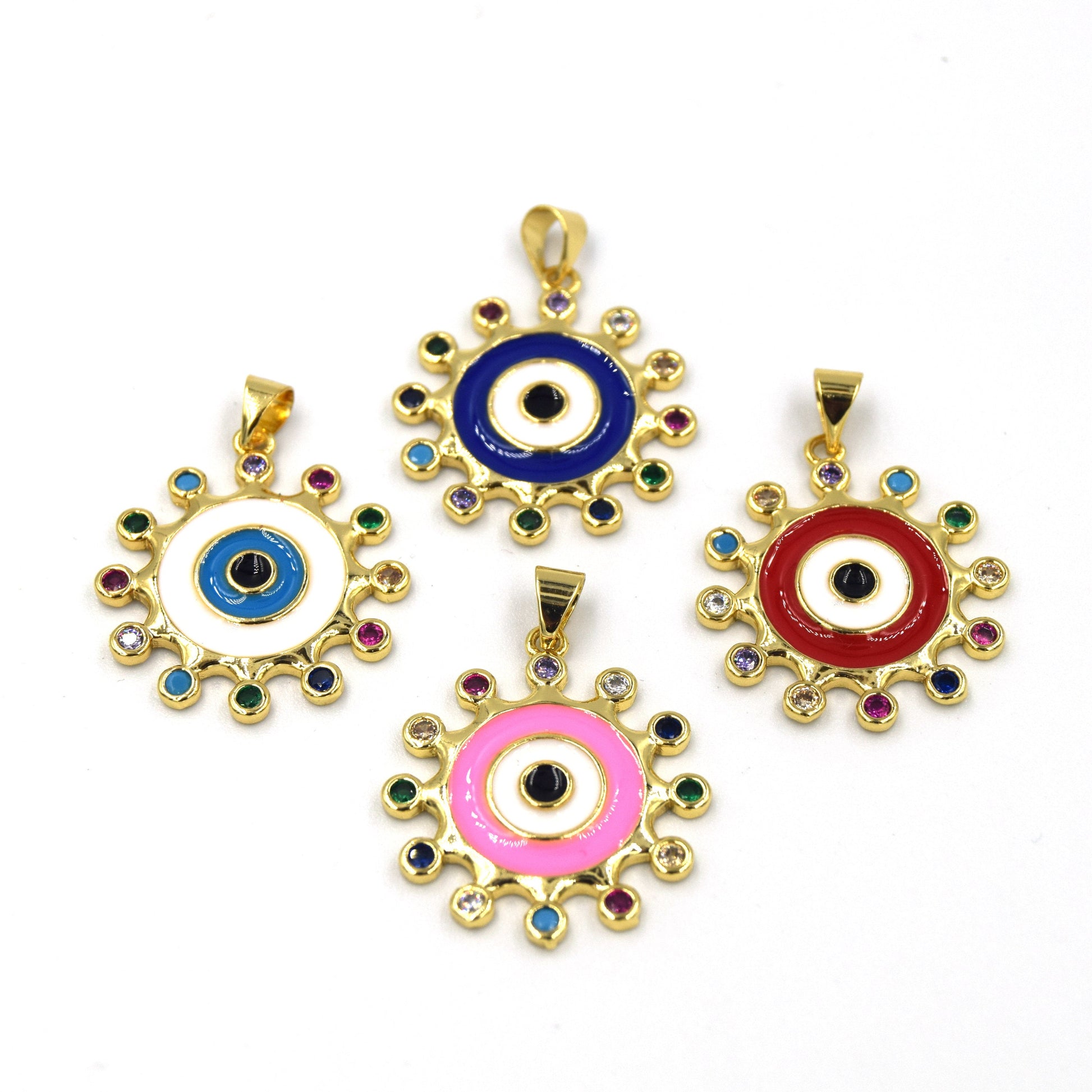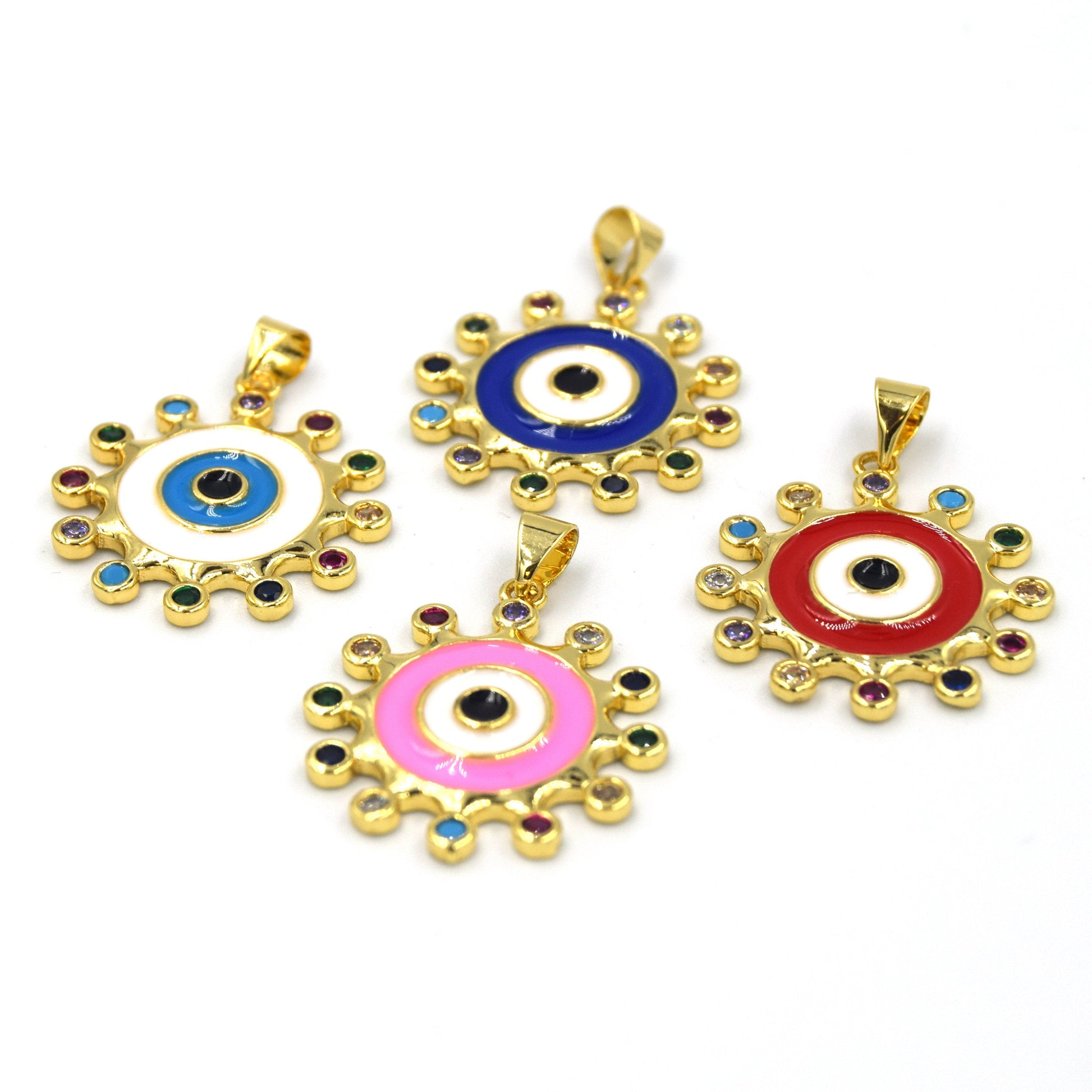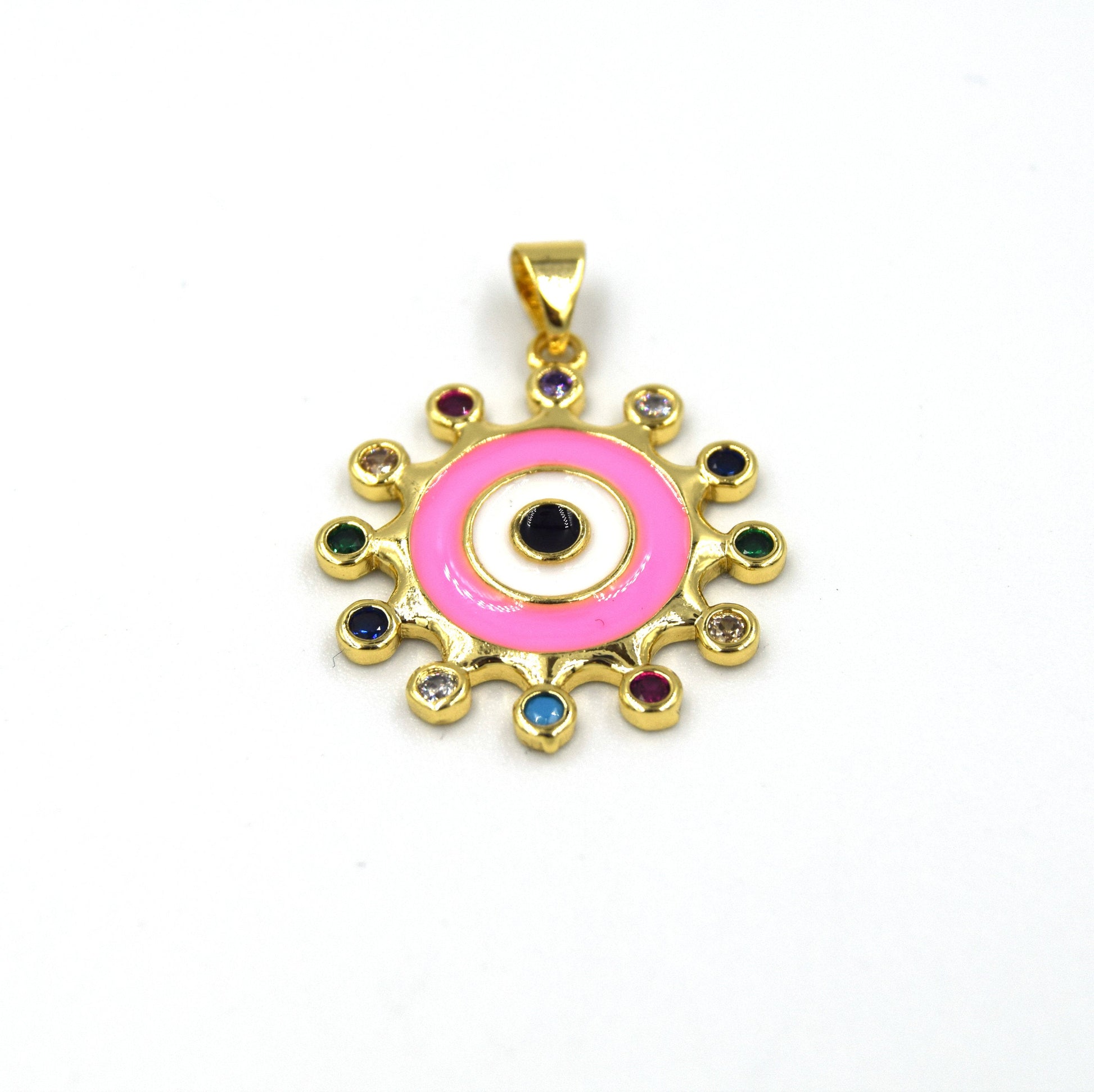 CZ and Enamel Brass Pendant | 25mm Enamel Evil Eye with Multicolor Cubic Zirconia - White, Blue, Red, Pink available