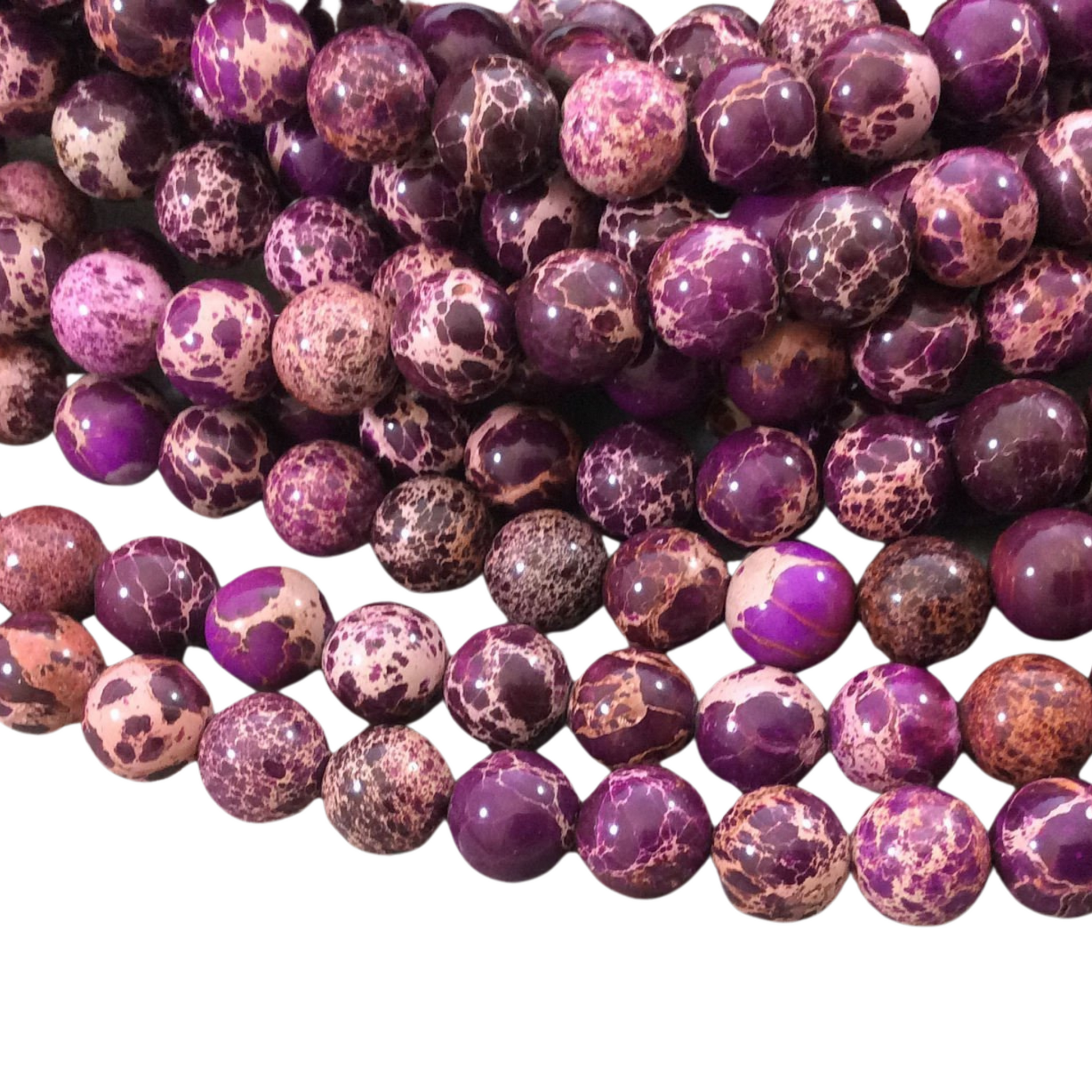 10mm Smooth Dyed Purple/Magenta Sea Sediment Jasper Round/Ball Shaped Beads - 16" Strand (Approximately 41 Beads) - Natural Aqua Terra Stone