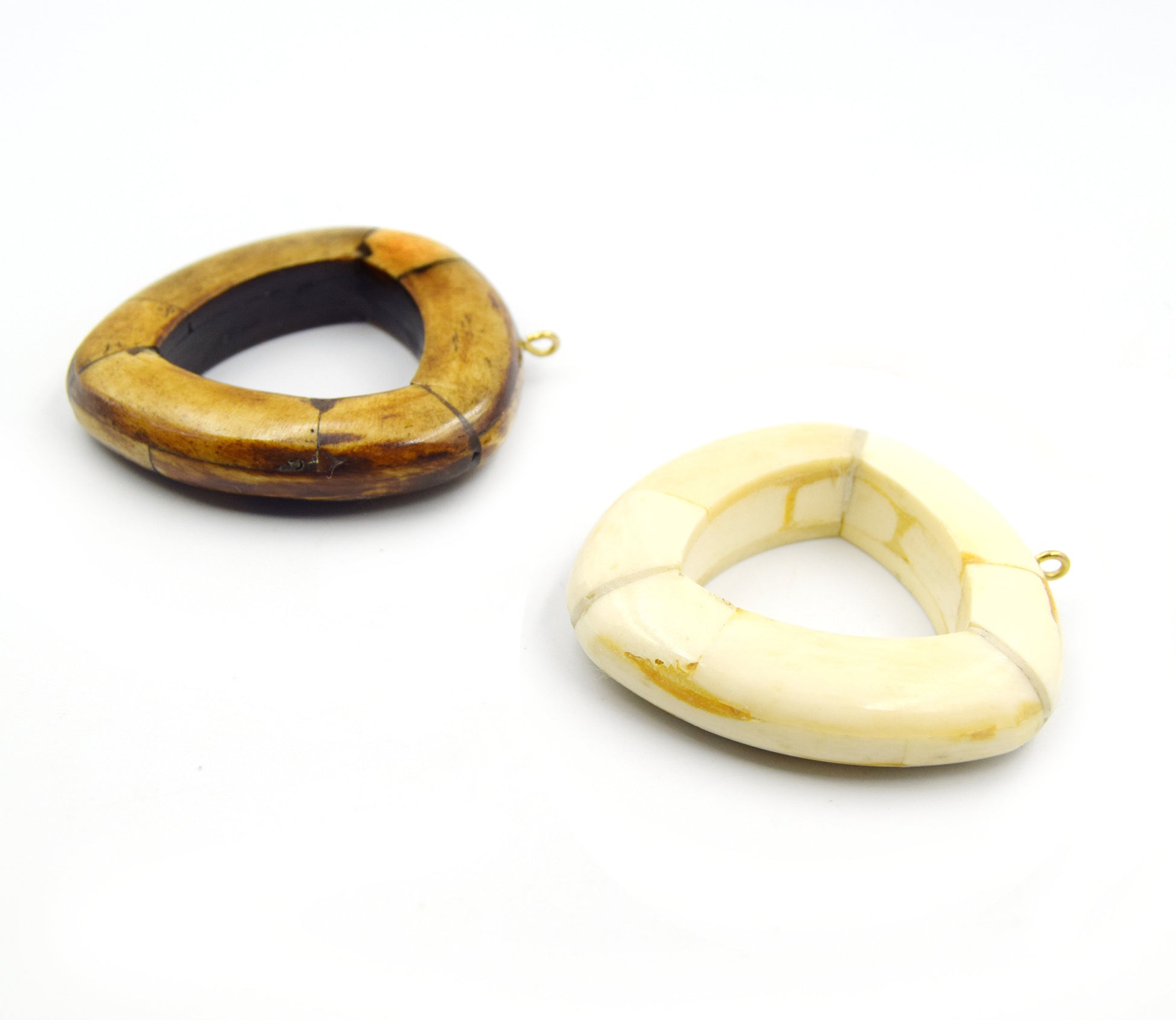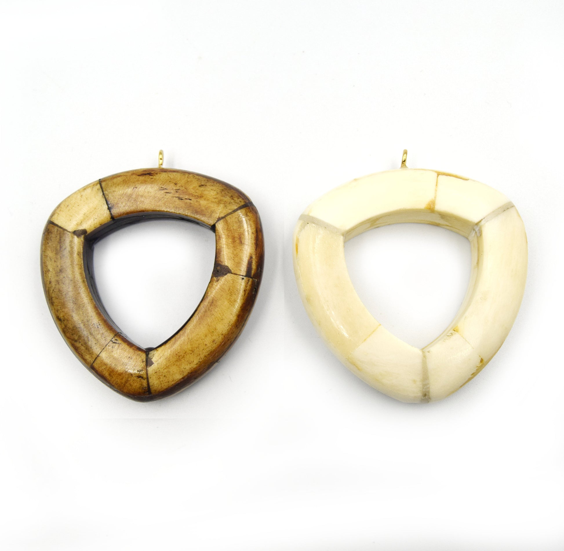 Ox Bone Focal Pendant | 2.25" - Natural Ox Bone Triangle Shaped Focal Pendant with Gold Bail - White, Light Brown, Brown available