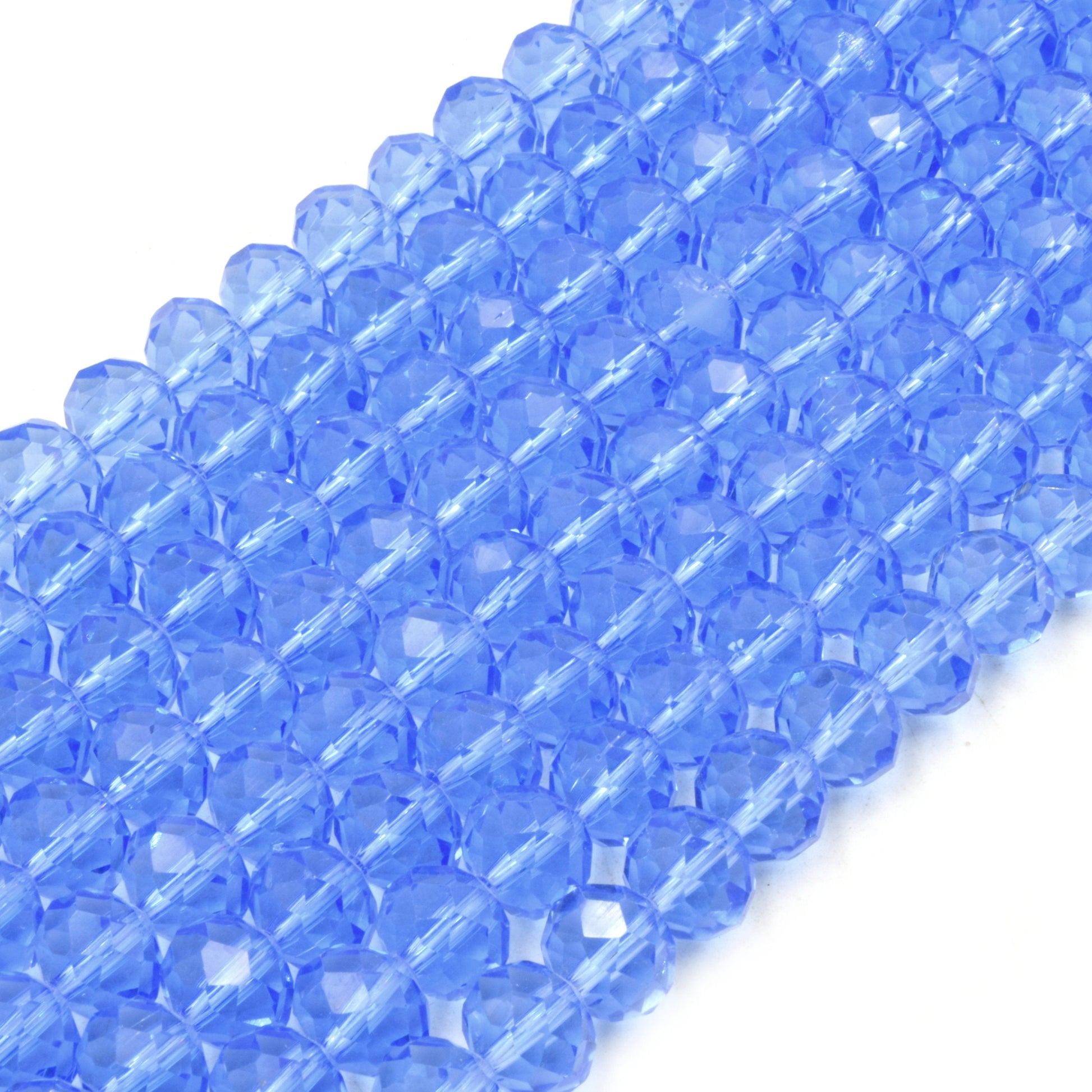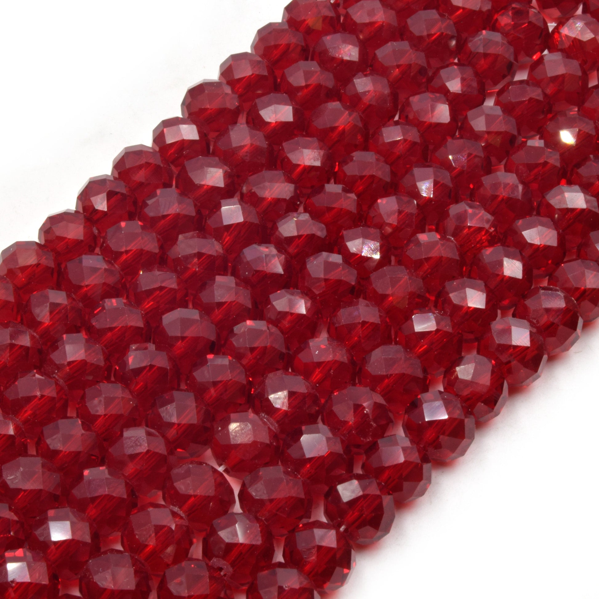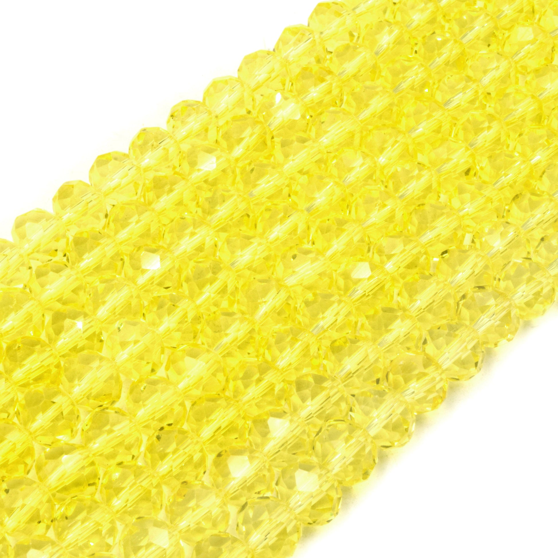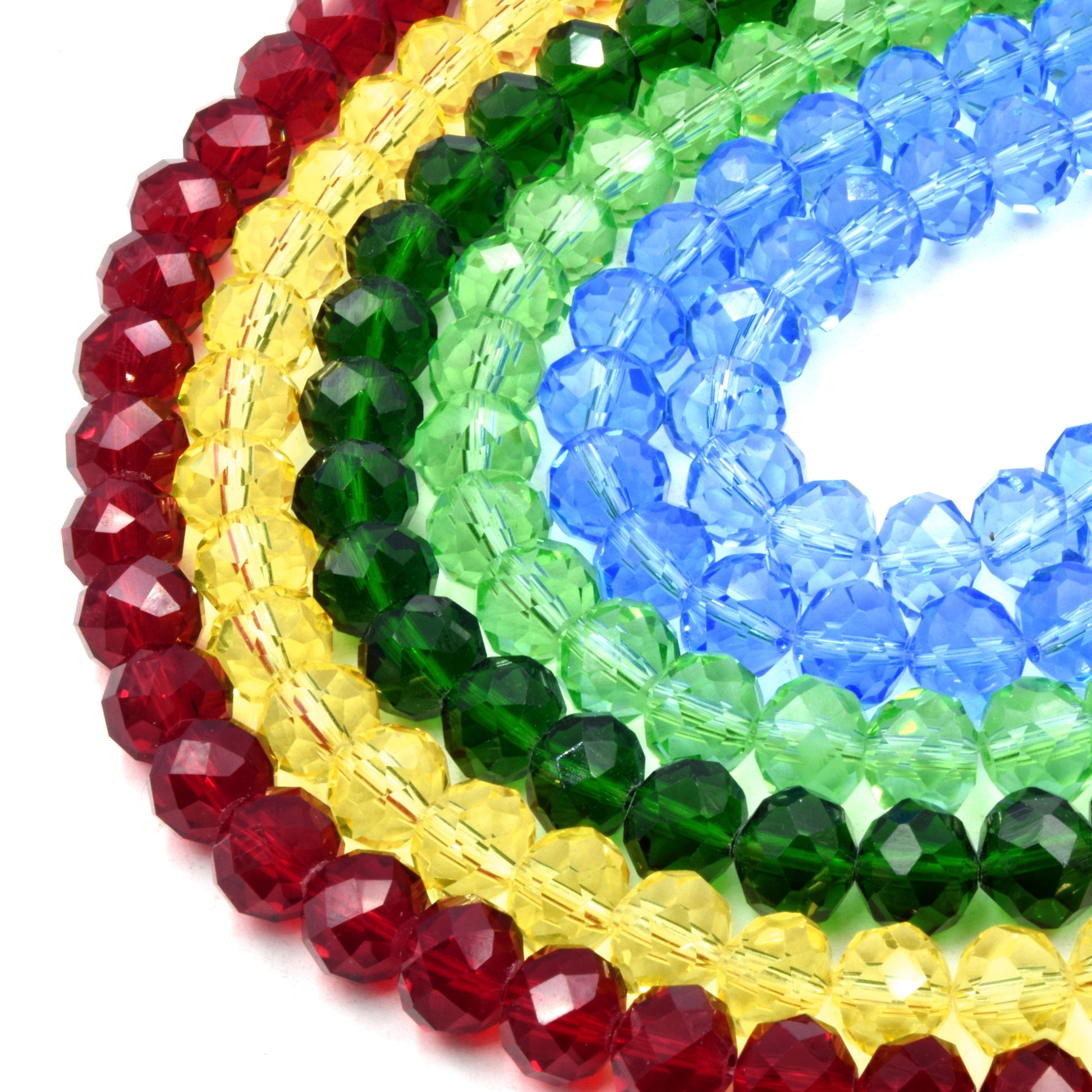 Description: These 10mm Faceted Transparent Rondelle Shaped Chinese Crystal Beads are crafted from high-quality Chinese glass/crystal. Available in vibrant colors such as red, blue, green, and yellow, these beads are perfect for adding a touch of elegance and sparkle to your jewelry creations. Each strand is approximately 14.5 inches long, containing around 50 beads with a 1mm hole size, making them ideal for various beading and crafting projects.