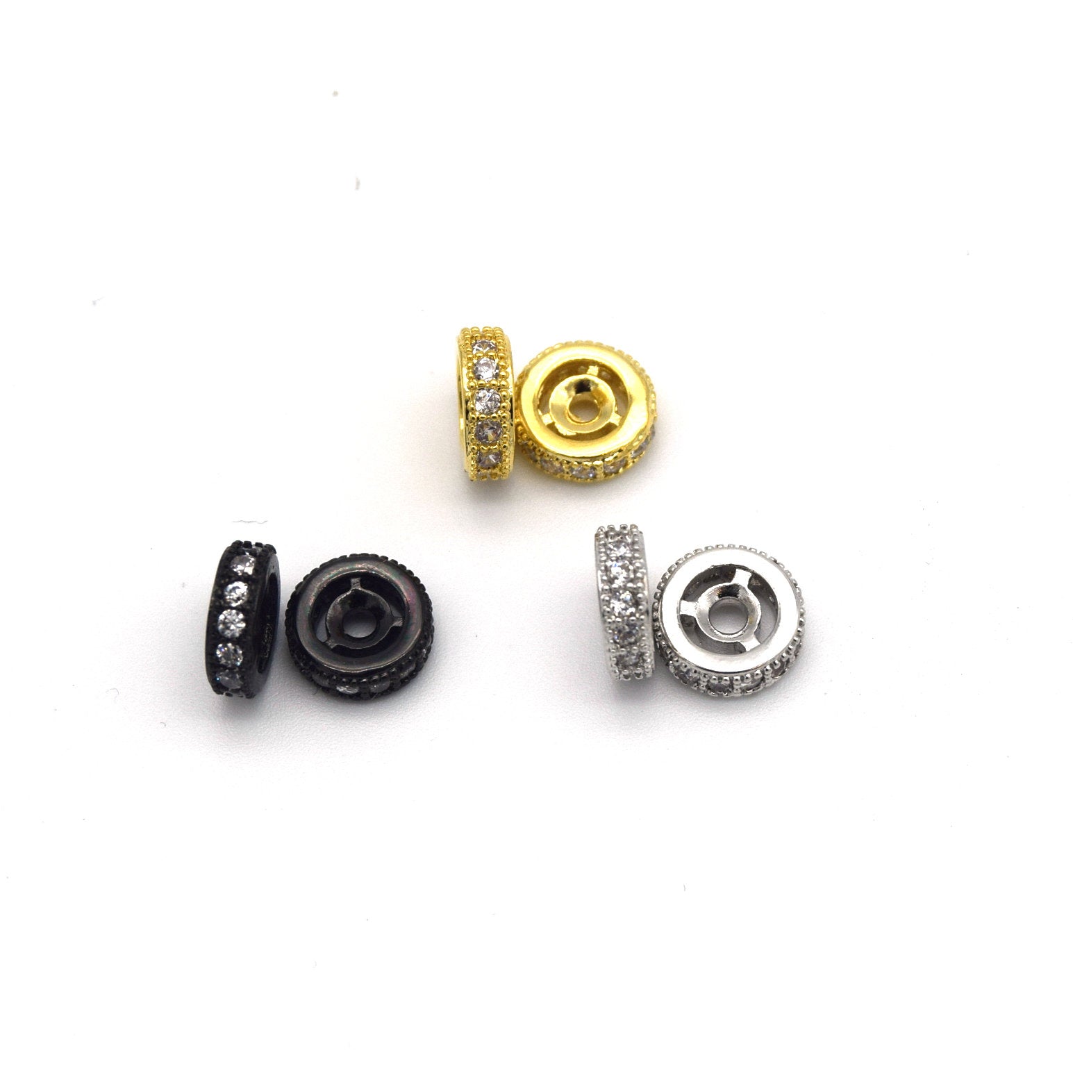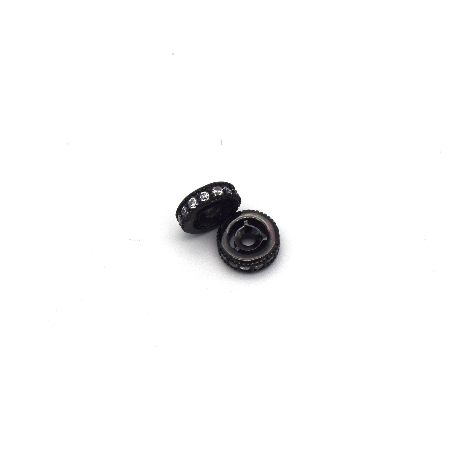 8mm x 8mm Gunmetal Plated Cubic Zirconia Encrusted/Inlaid Eyed Donut/Ring Shaped Spacer Bead