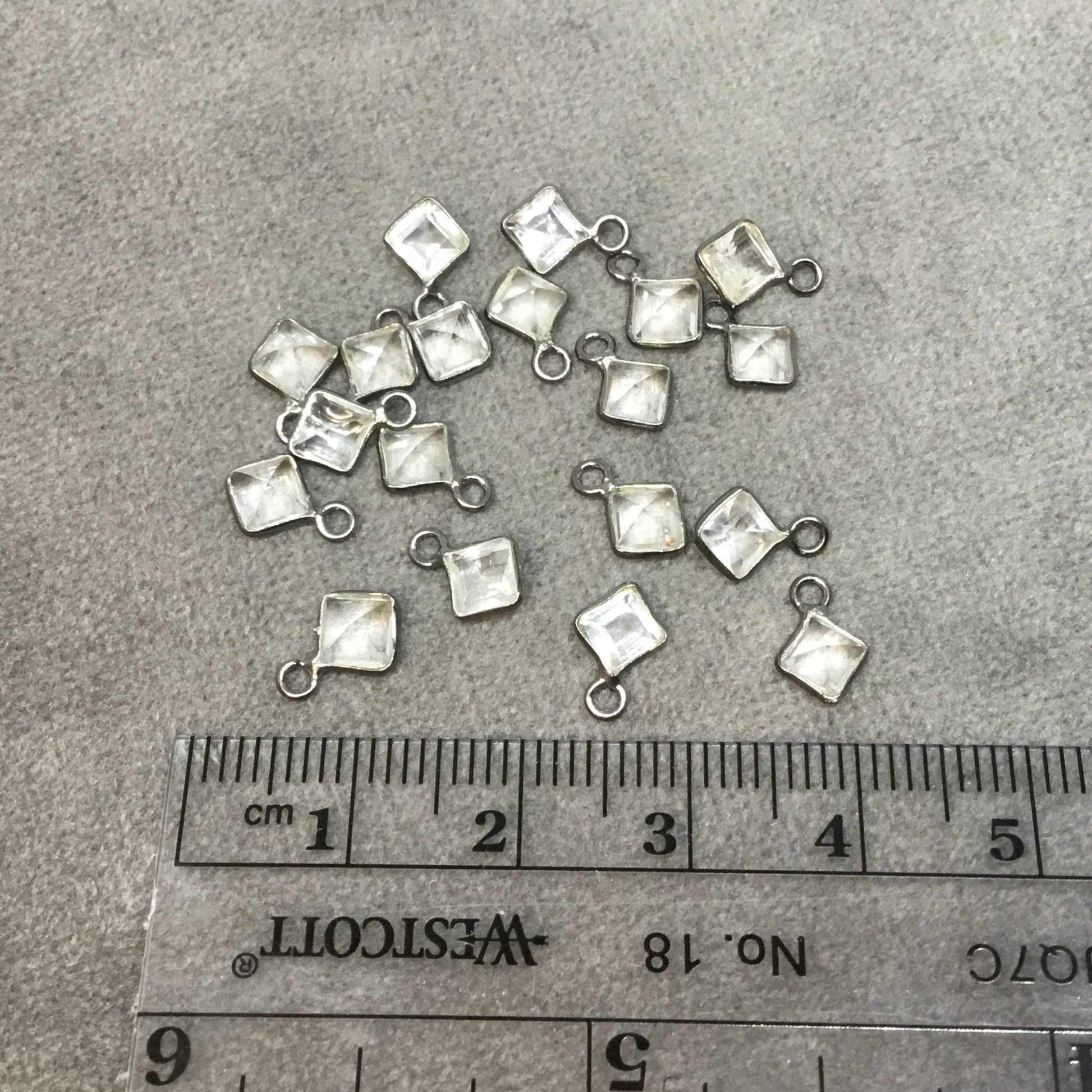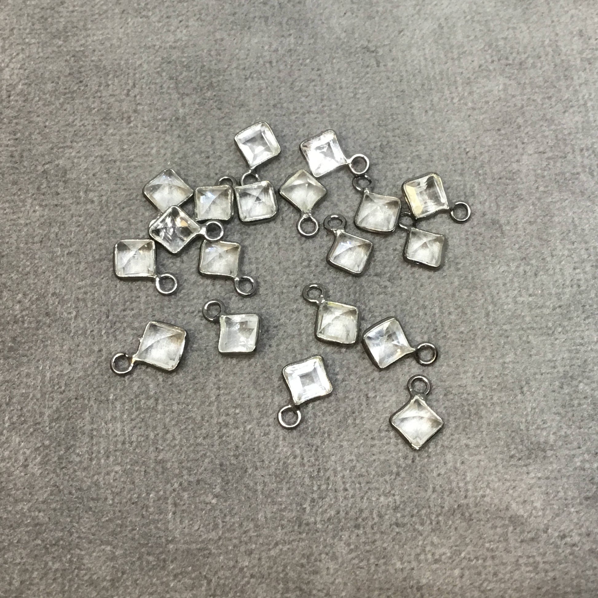 Clear Quartz Bezel | BULK PACK of Six (6) Gunmetal Sterling Silver Pointed Cut Stone Faceted Diamond Shaped Pendants - Measuring 4mm x 4mm