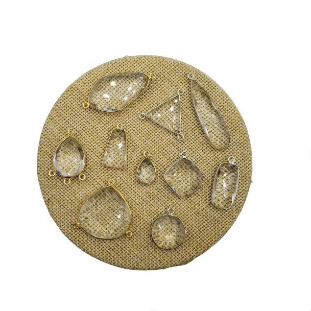 Clear Quartz Bezel | Gold and Silver Plated Faceted Clear (Lab Created) Bezel Pendant & Connector - Sold Individually