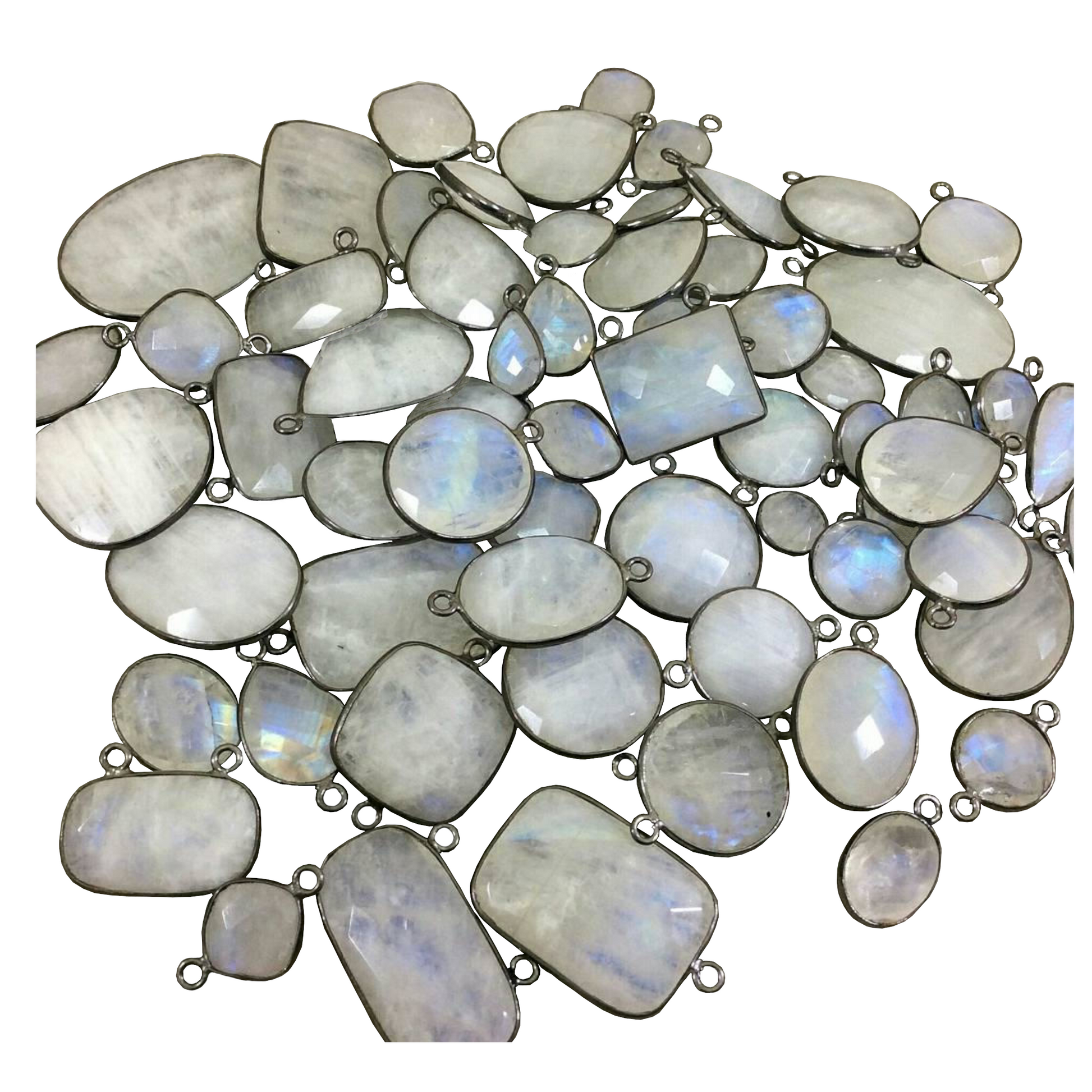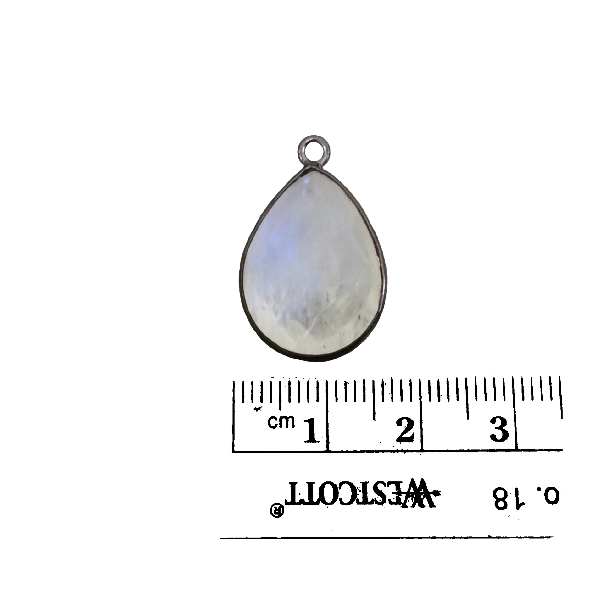 Gunmetal Plated Natural Moonstone Faceted Pear/Teardrop Shaped Copper Bezel Pendant - Measures 15mm x 20mm - Sold Individually, Random