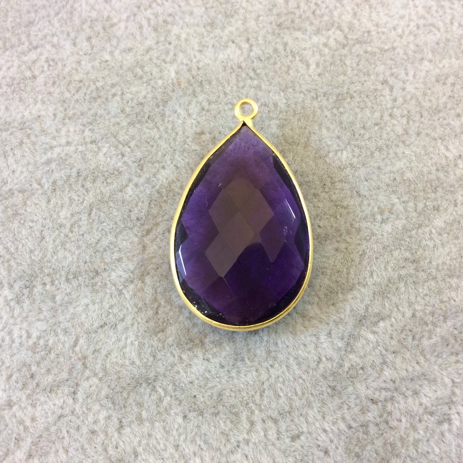 Rich Purple Quartz Bezel | Gold Finish Faceted Pear Teardop Shaped Pendant Component -Measuring 20mm x 30mm - Natural Semi precious Gemstone