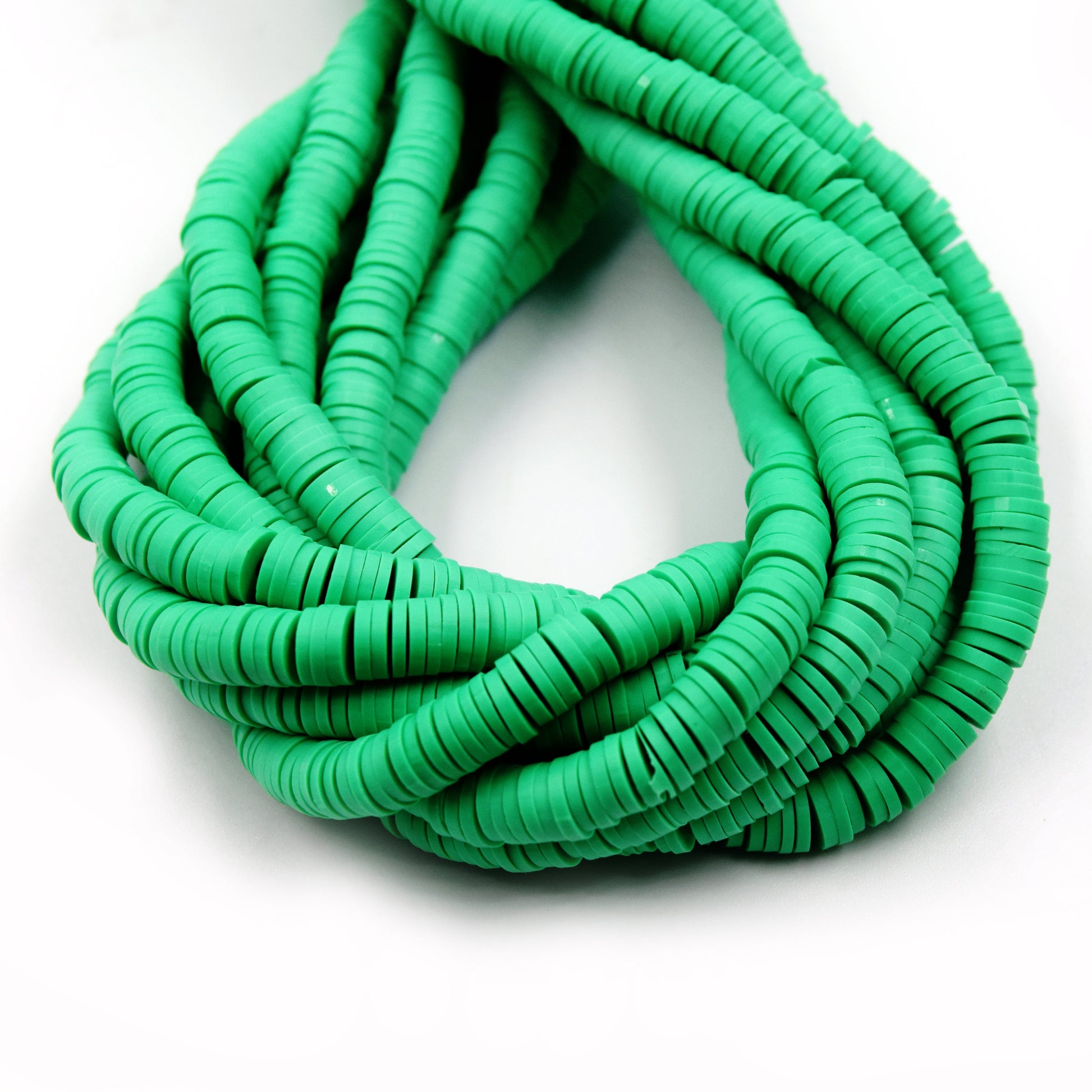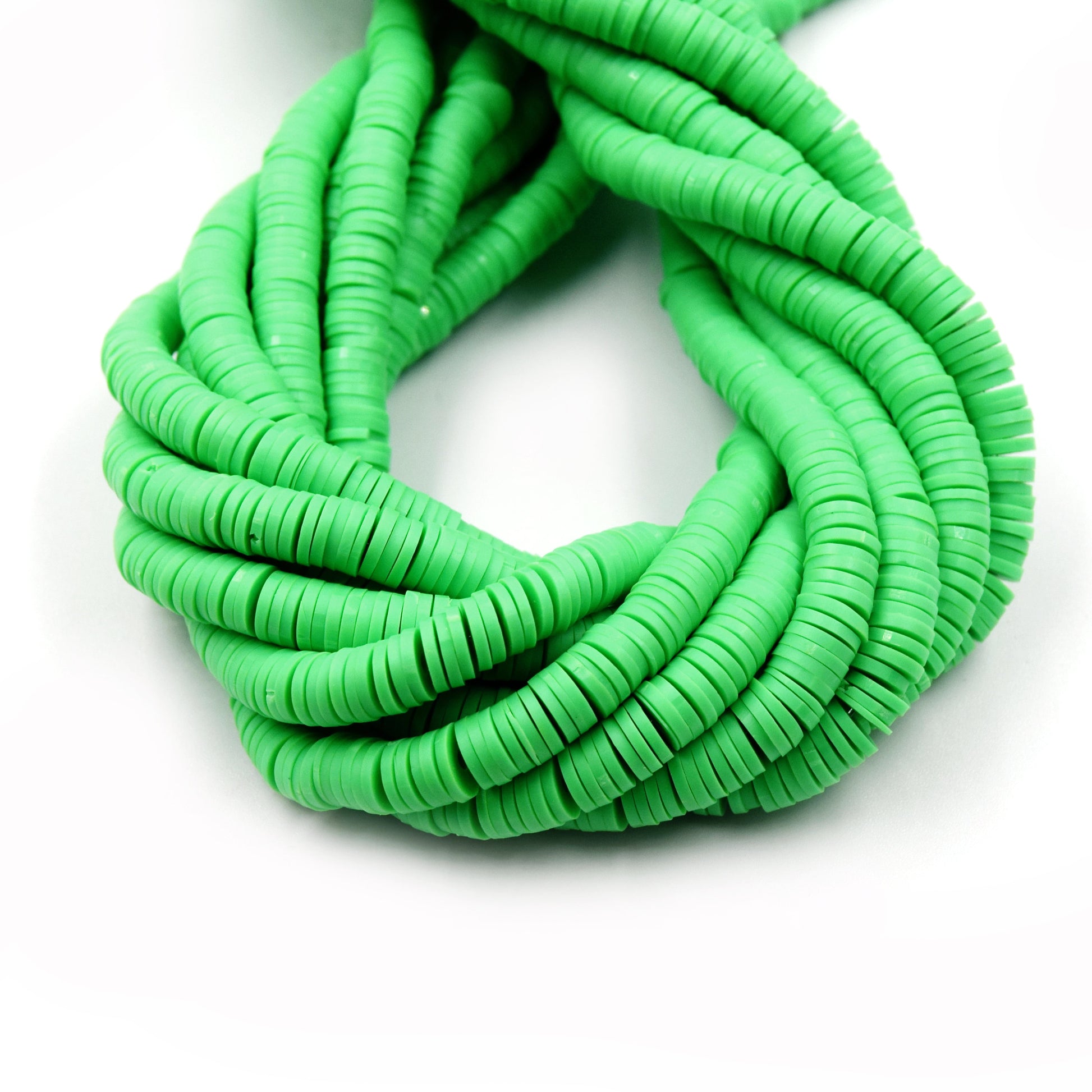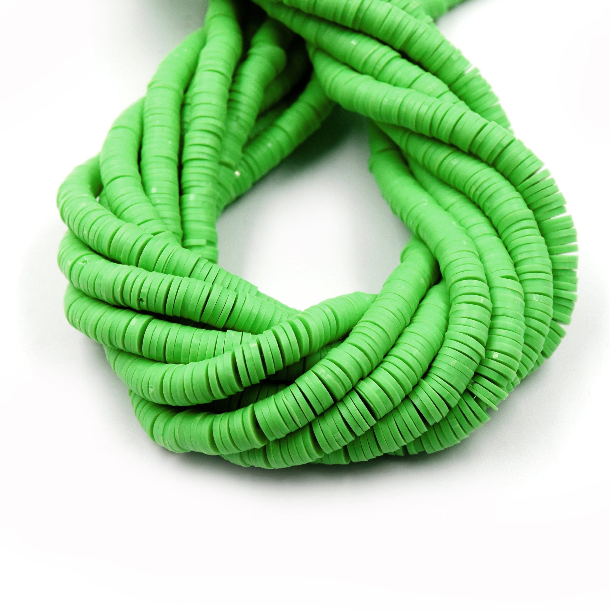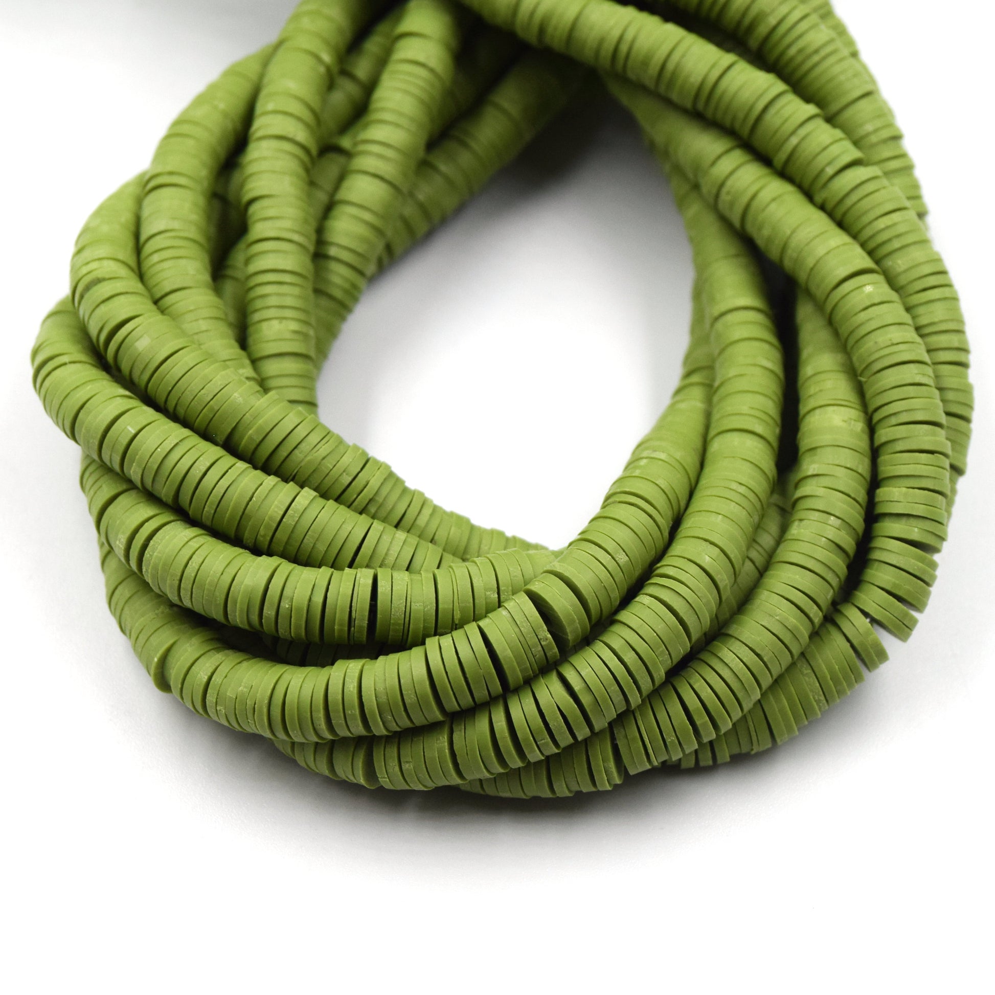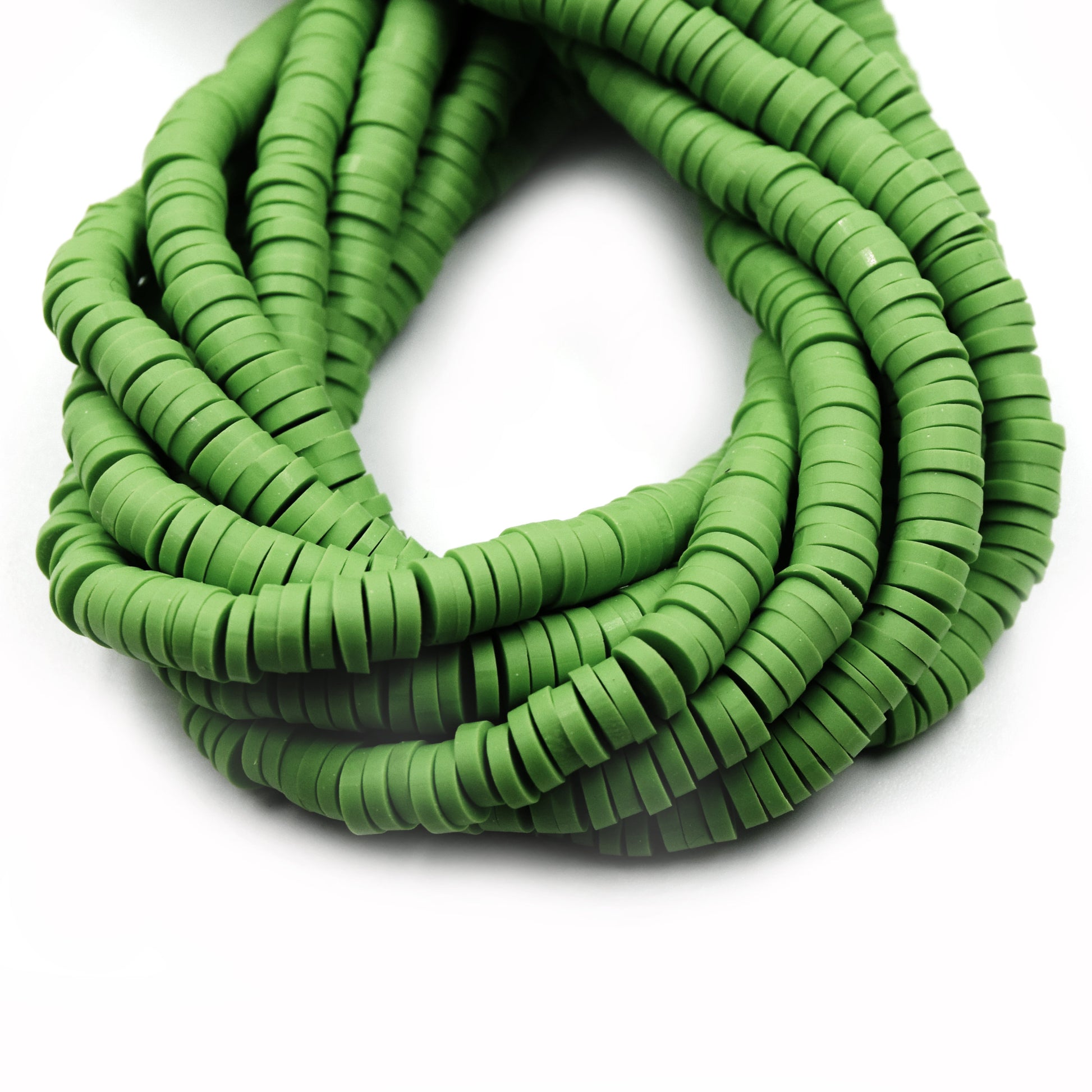 African Vinyl Beads | 6mm Green Vinyl Clay Heishi Disc Beads (Approx. 350 Beads)