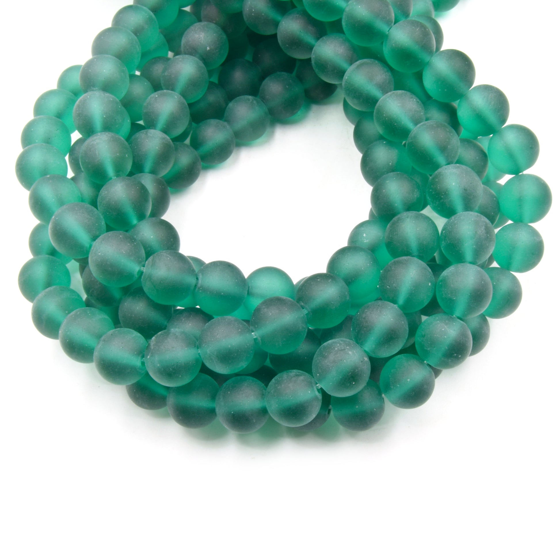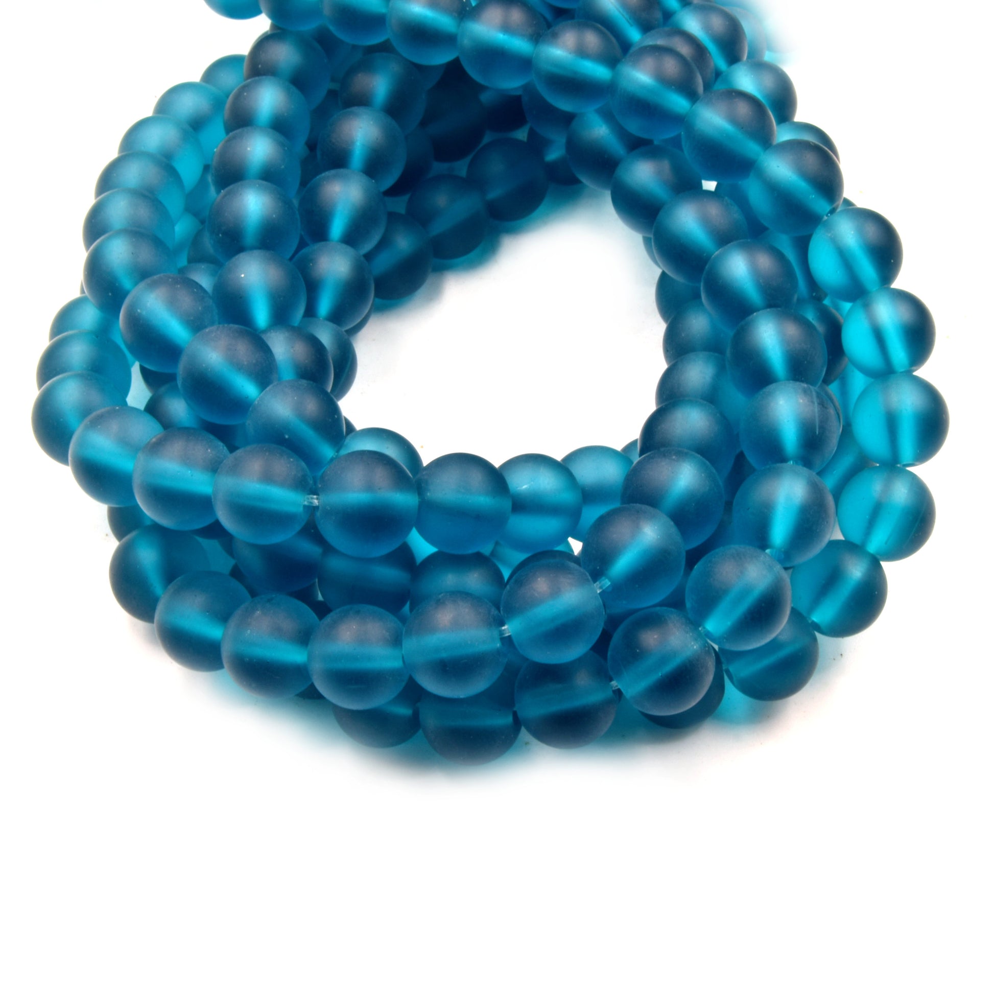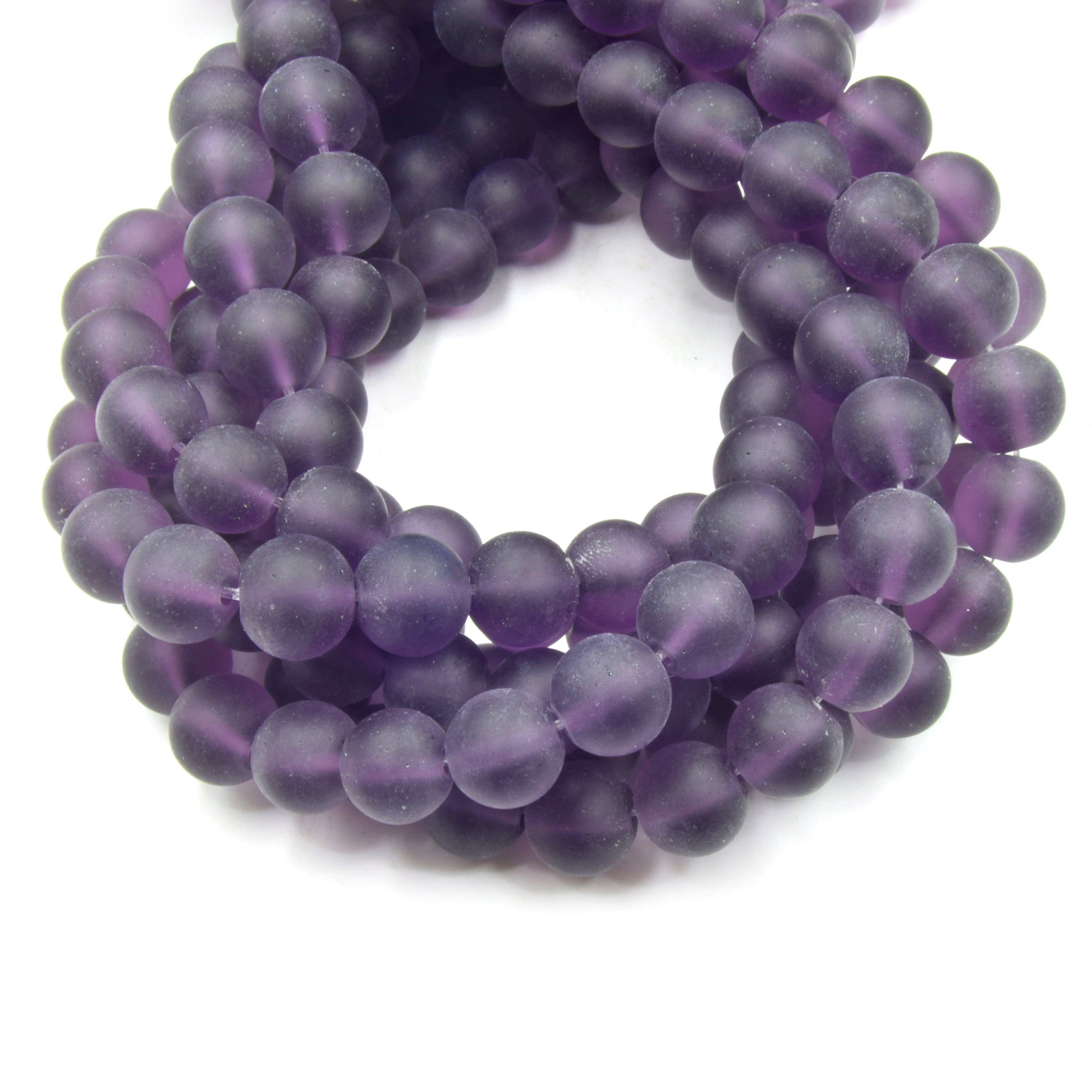 Indian Glass Beads | 10mm Matte Round Shaped Indian Beach Glass Beads | Purple Blue Green Available