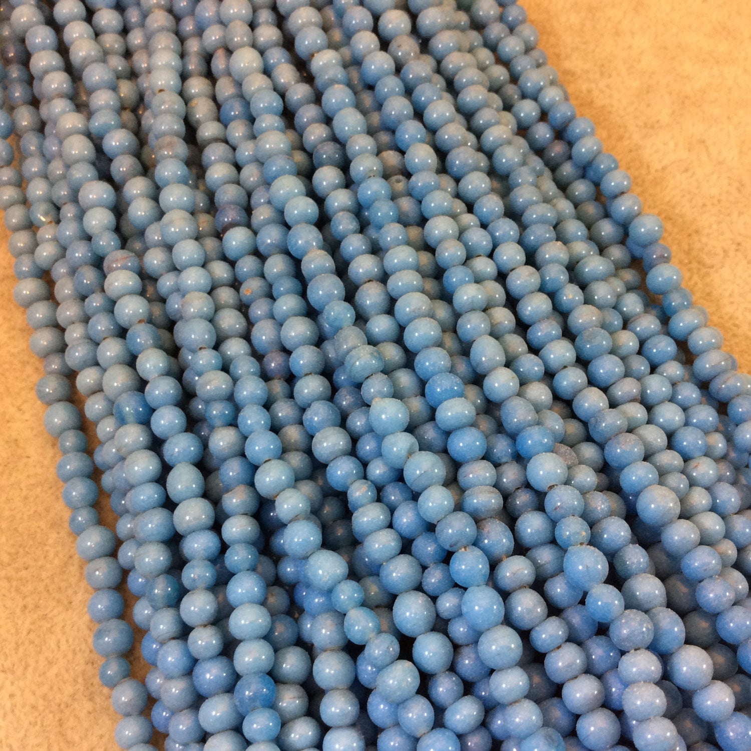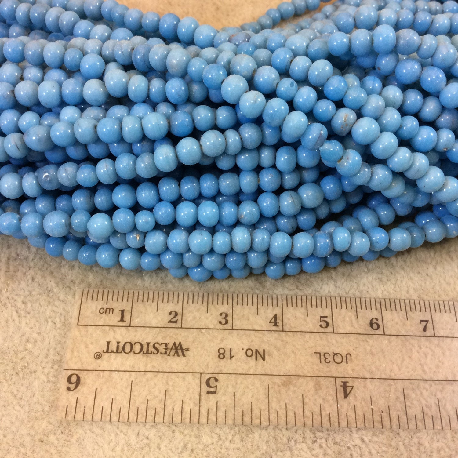 4mm Glossy Sky Blue Quality Irregular Rondelle Shaped Indian Ceramic Beads - Sold by 16.25" Strands - Approximately 98 Beads per Strand