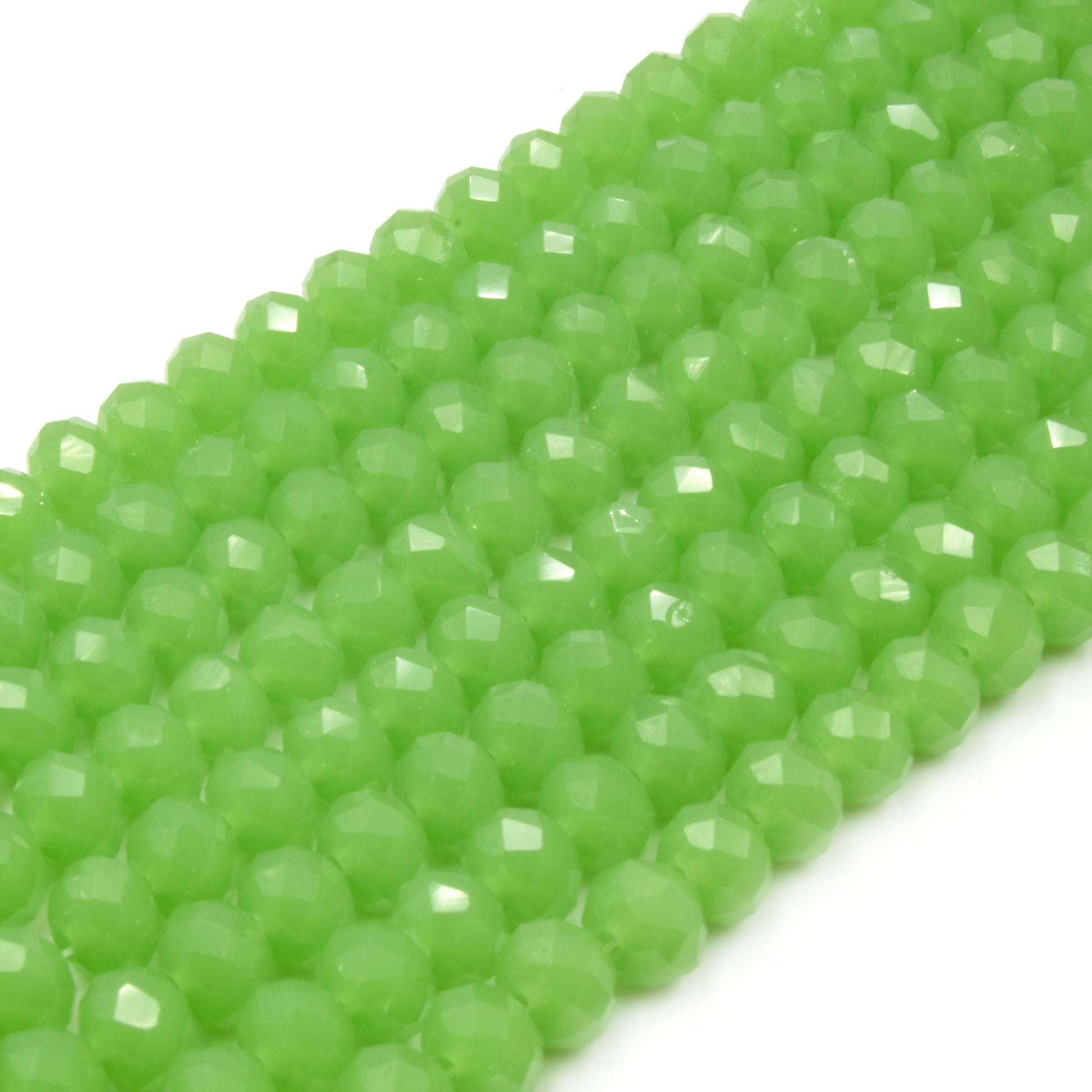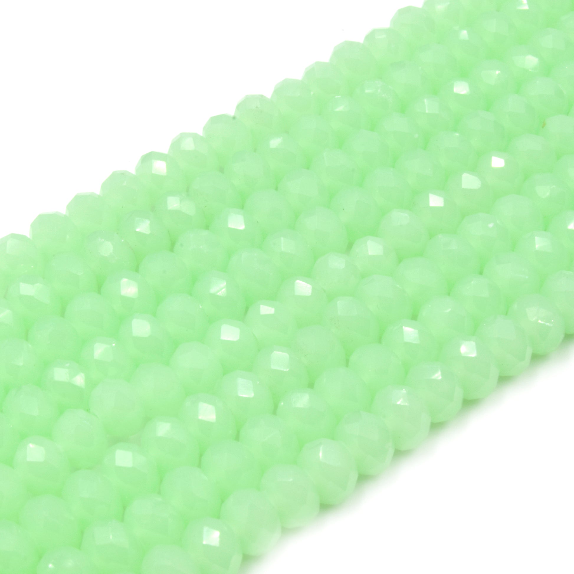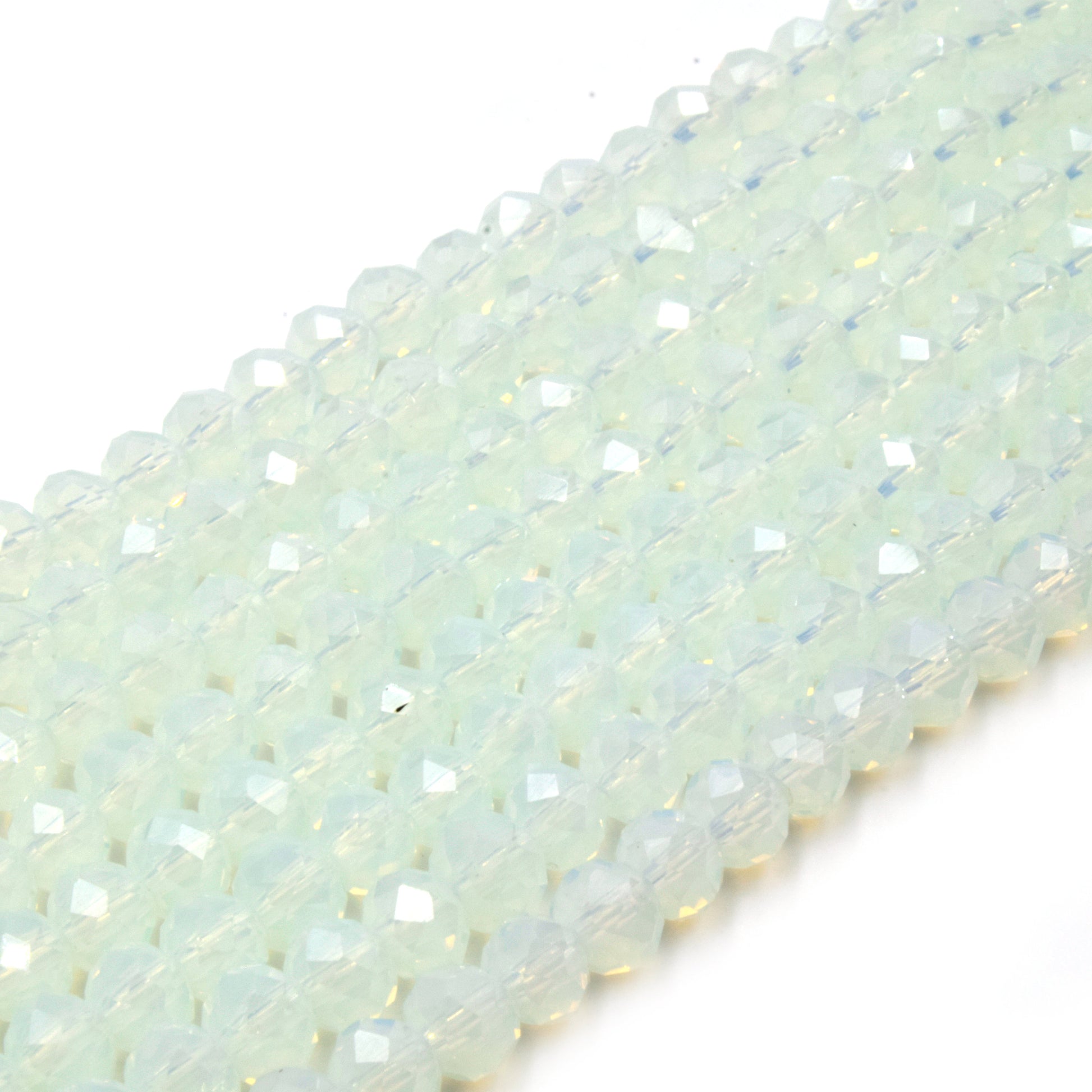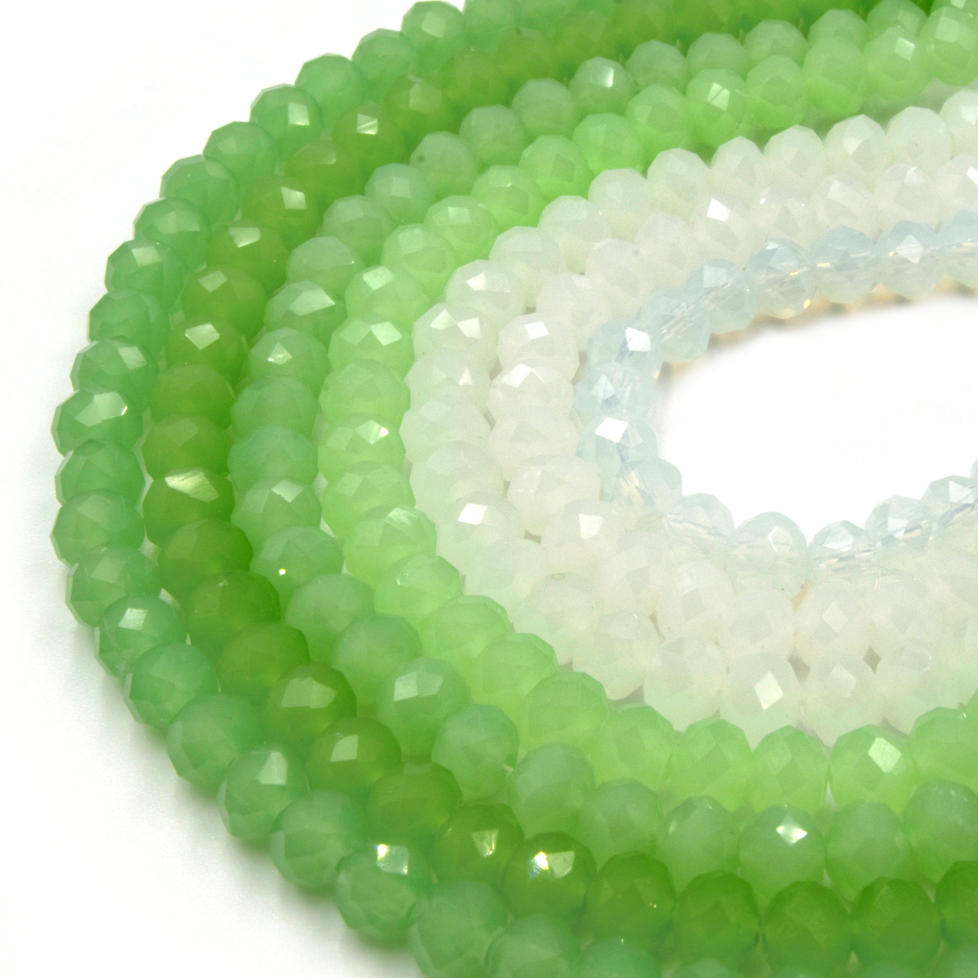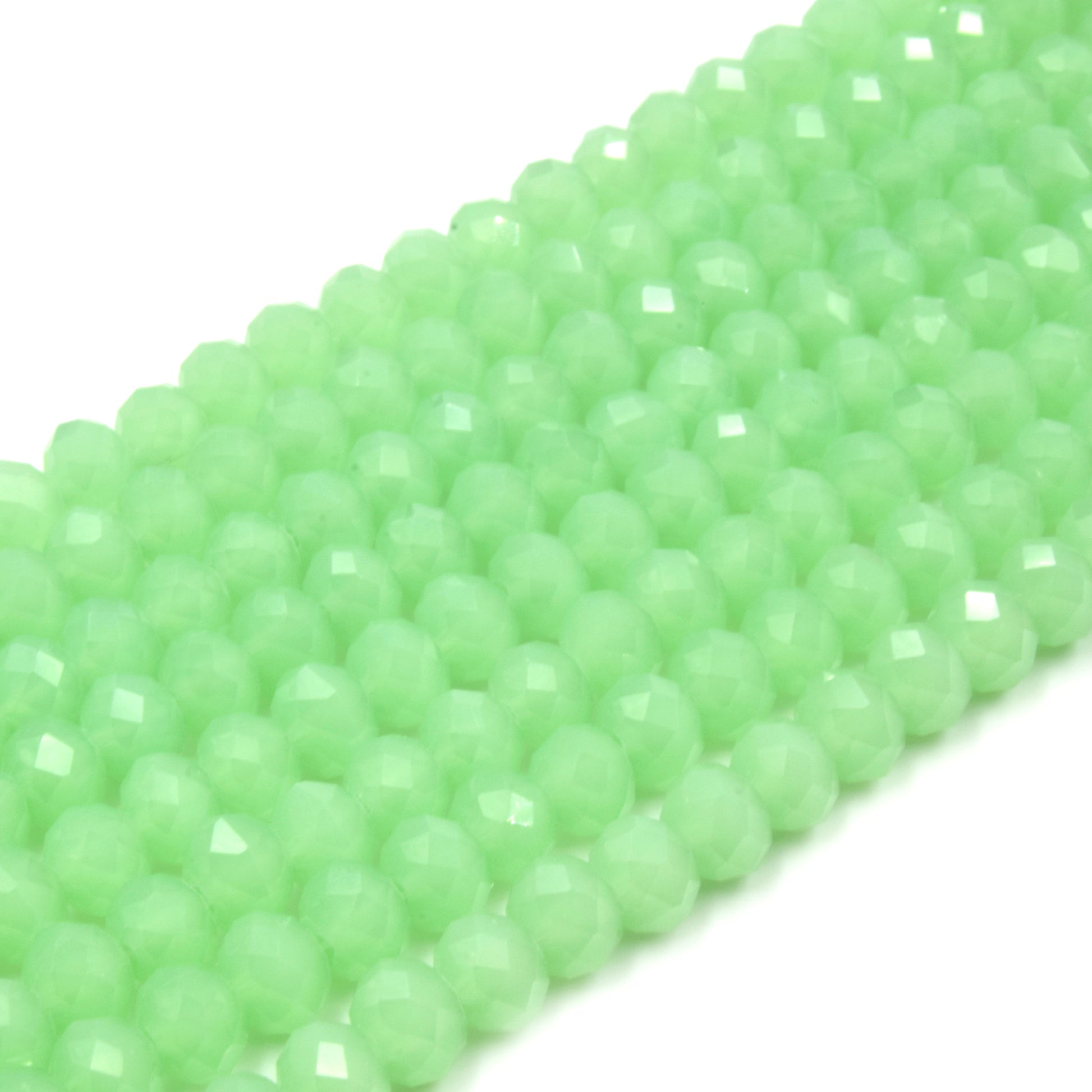 Chinese Crystal Beads | 6mm Faceted Semi-Opaque Rondelle Shaped Crystal Beads | Green White