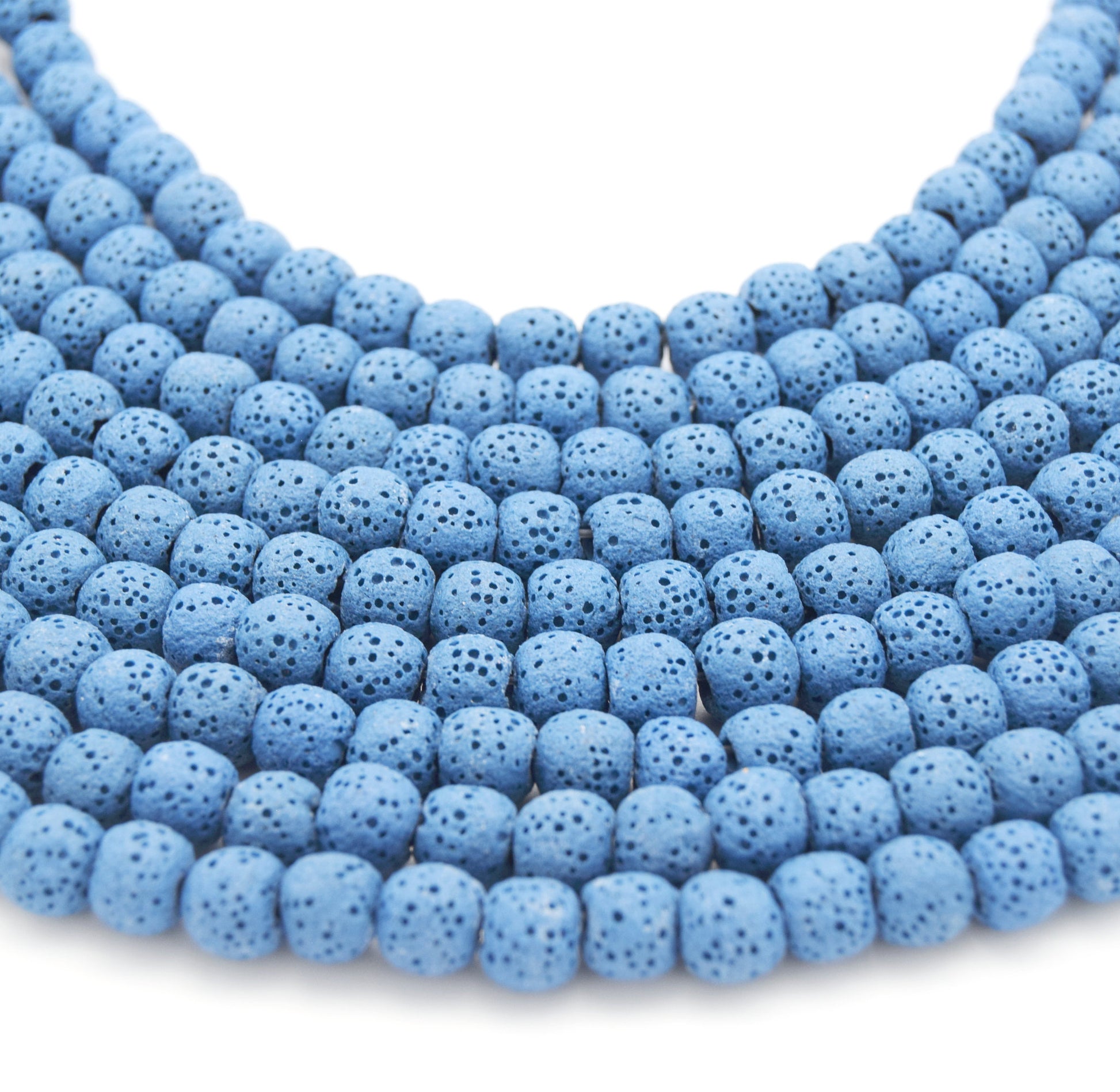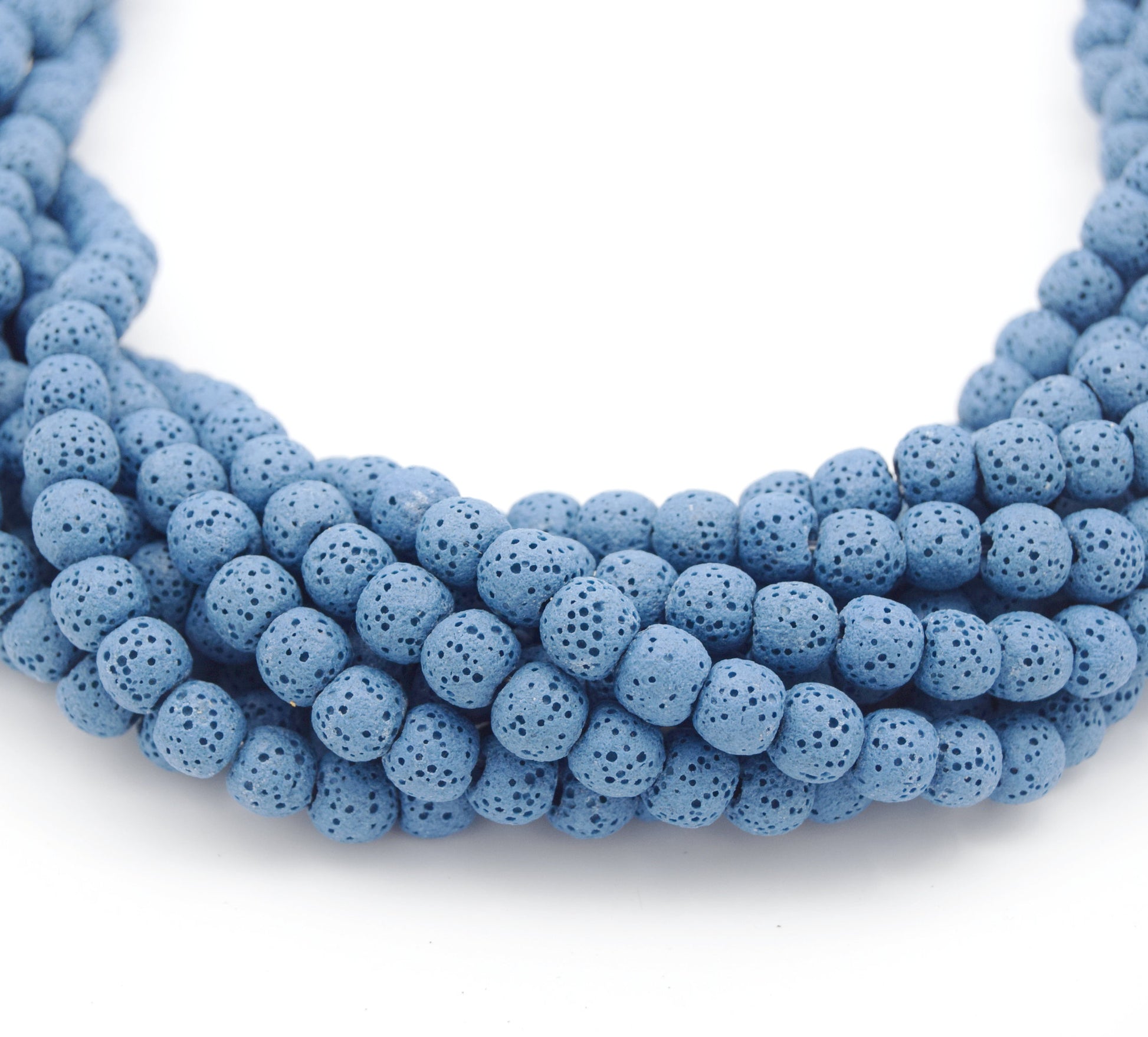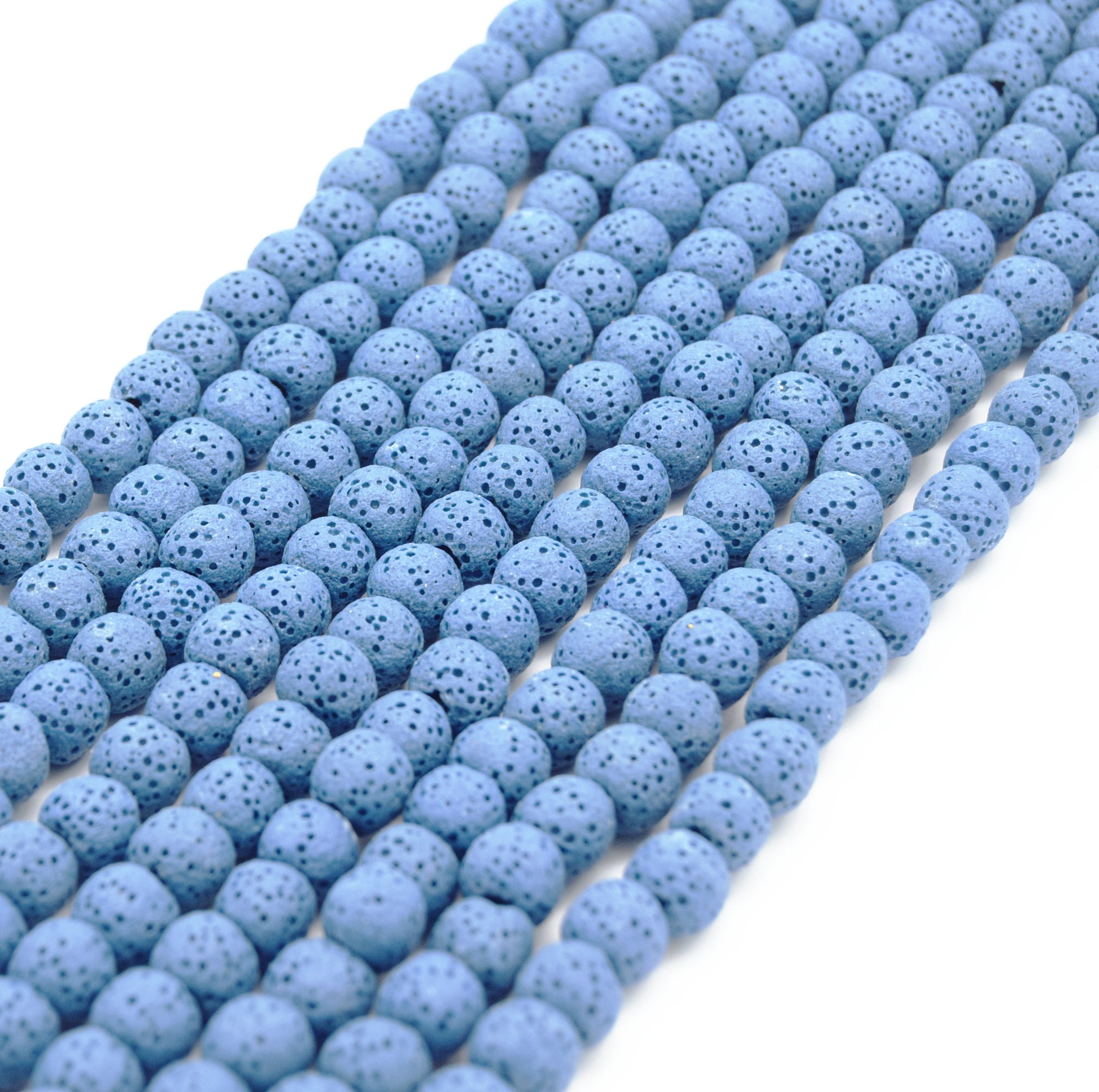 These Light Blue Lava Beads are crafted from high-quality colored volcanic lava stone, providing both durability and natural texture. Their porous surface allows them to absorb and slowly diffuse essential oils, making them perfect for aromatherapy jewelry. The soft light blue hue evokes serenity and elegance, making them a versatile addition to jewelry and craft projects.