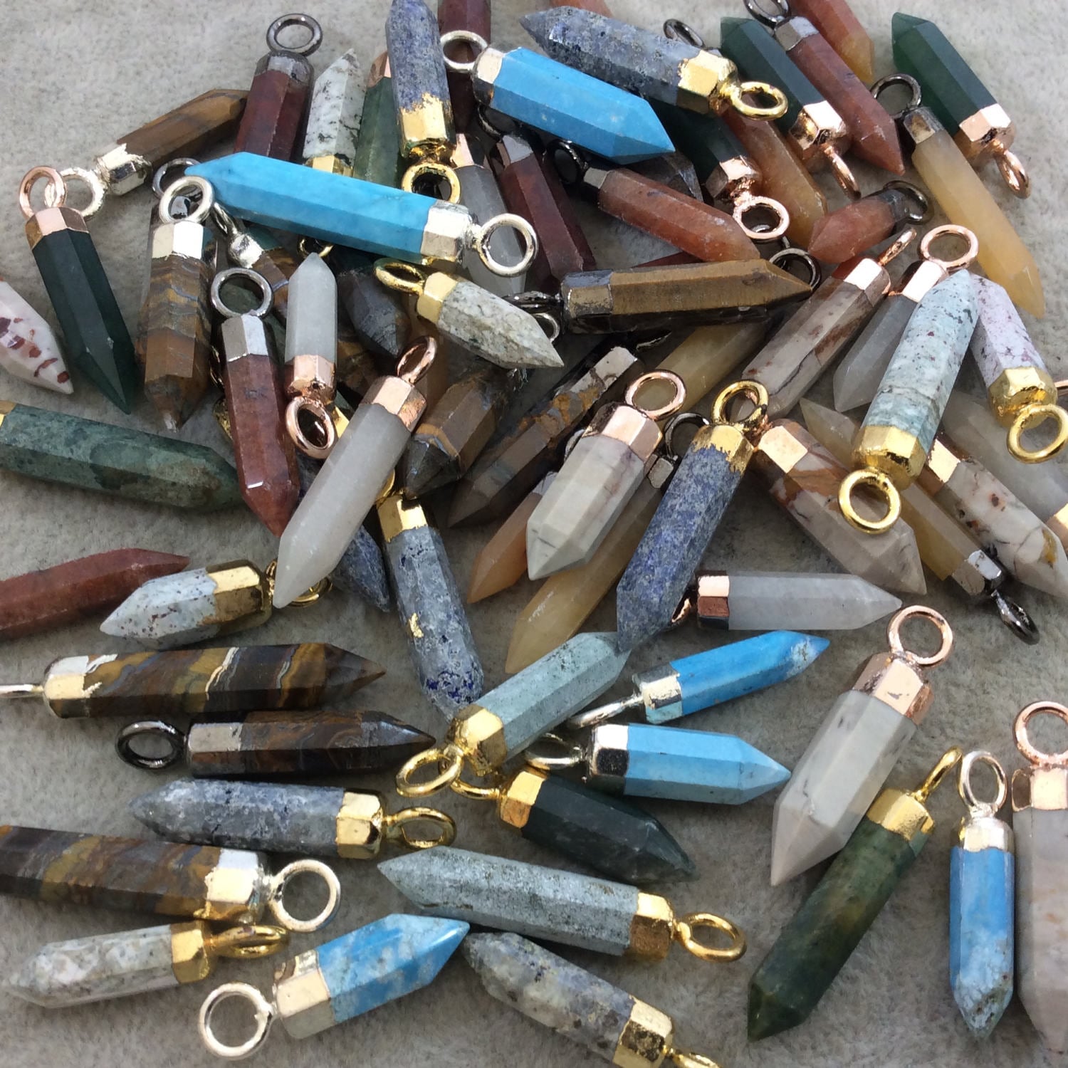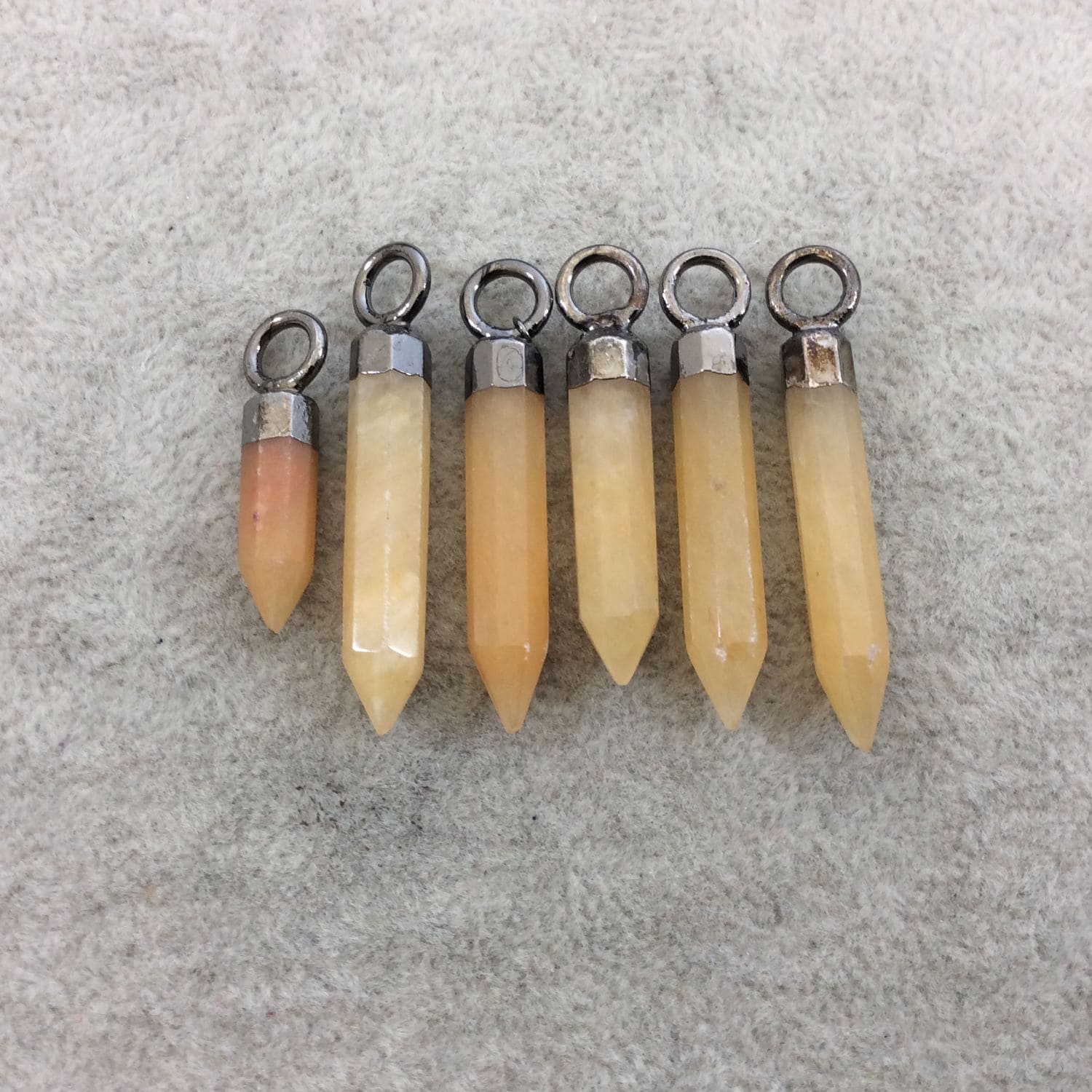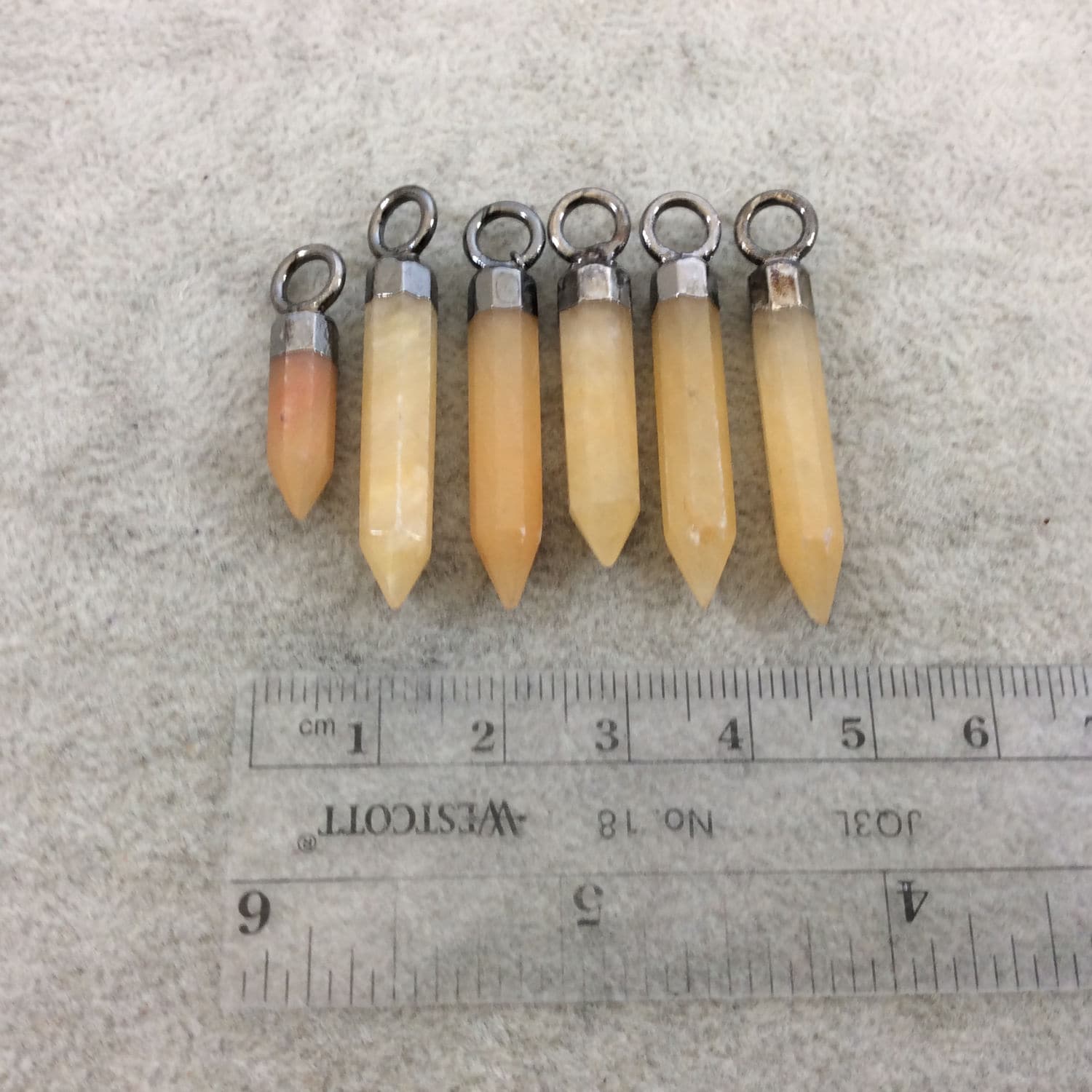 "Gunmetal Electroplated Yellow Aventurine Crystal Point Pendant - 0.75"-1.25" - Size: 7-8mm x 22-32mm approximately - Individual/Random"