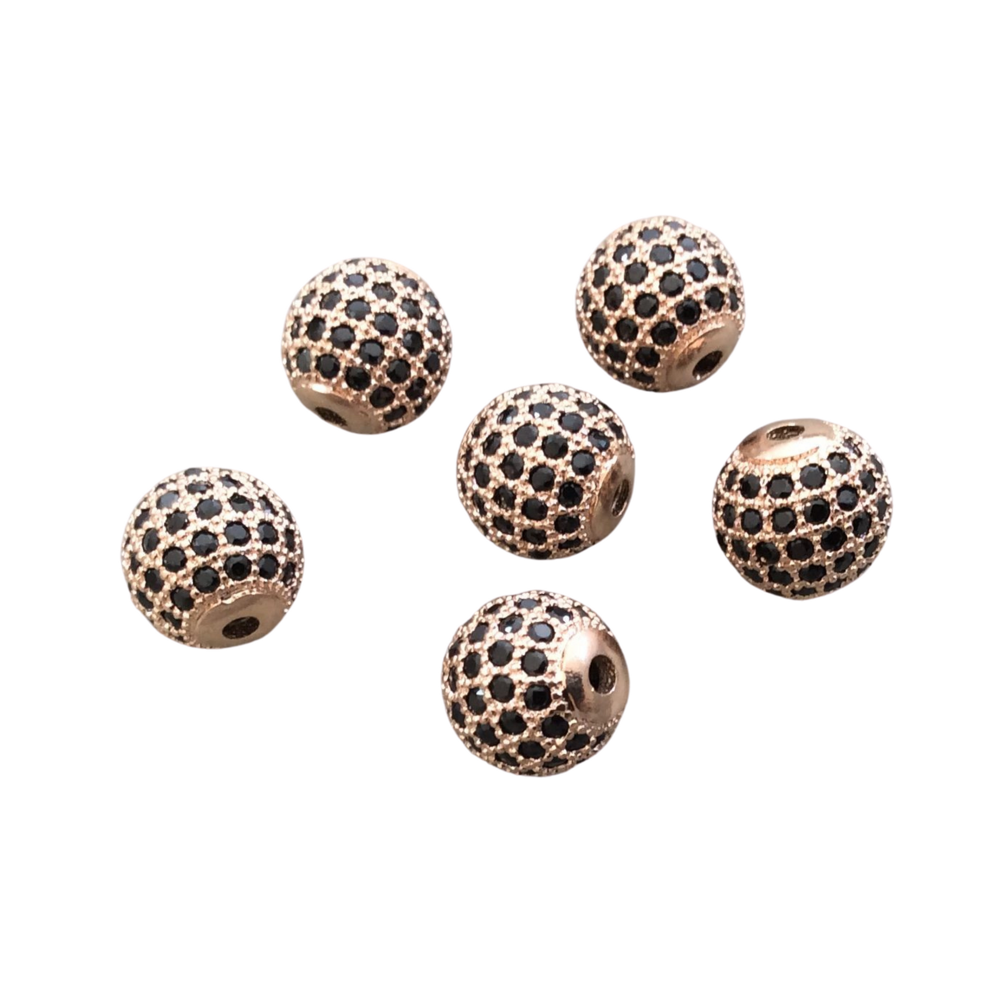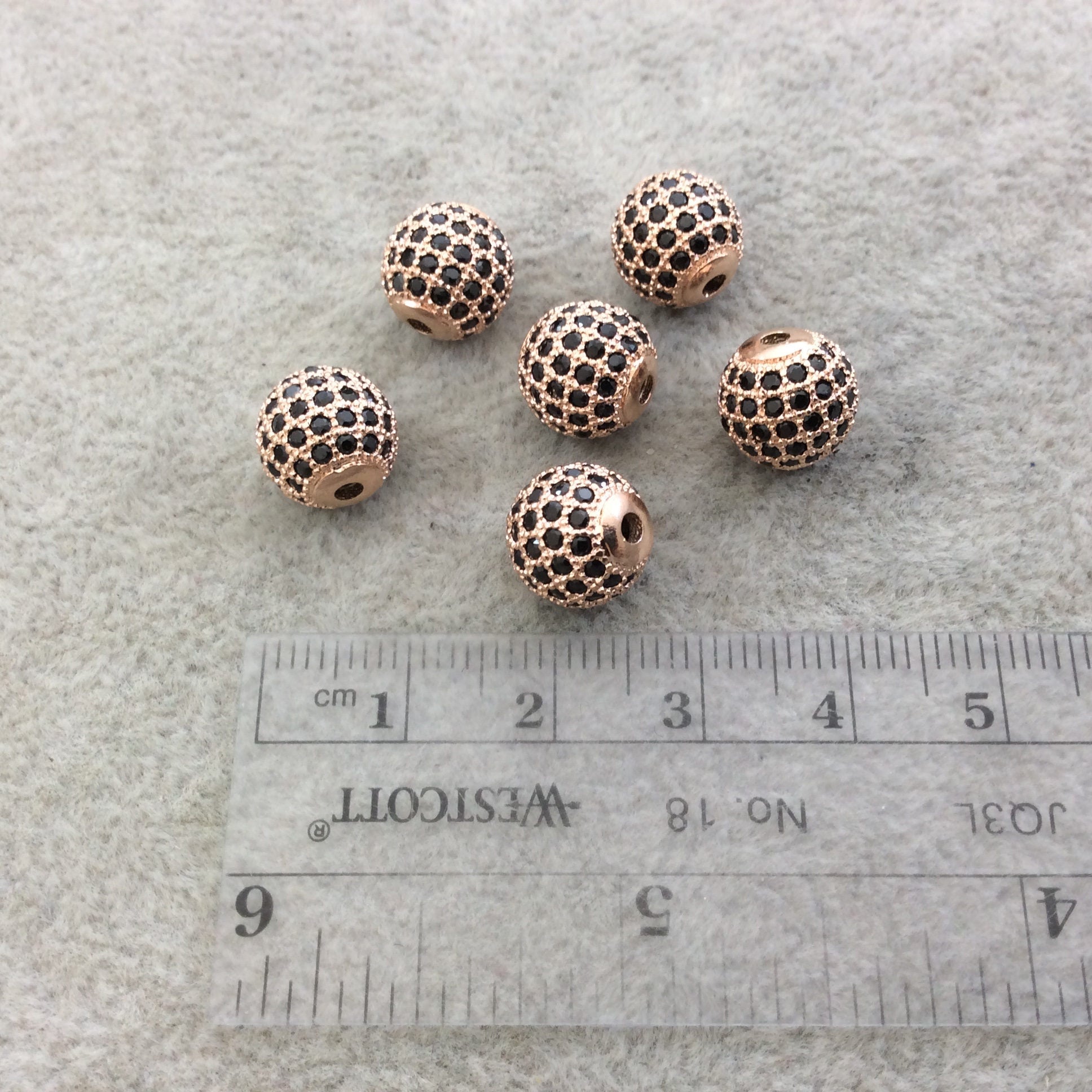 10mm Rose Gold Plated CZ Cubic Zirconia Inlaid Round/Ball Shaped Copper Bead with 2mm Holes - Sold Individually - Other Colors Available!