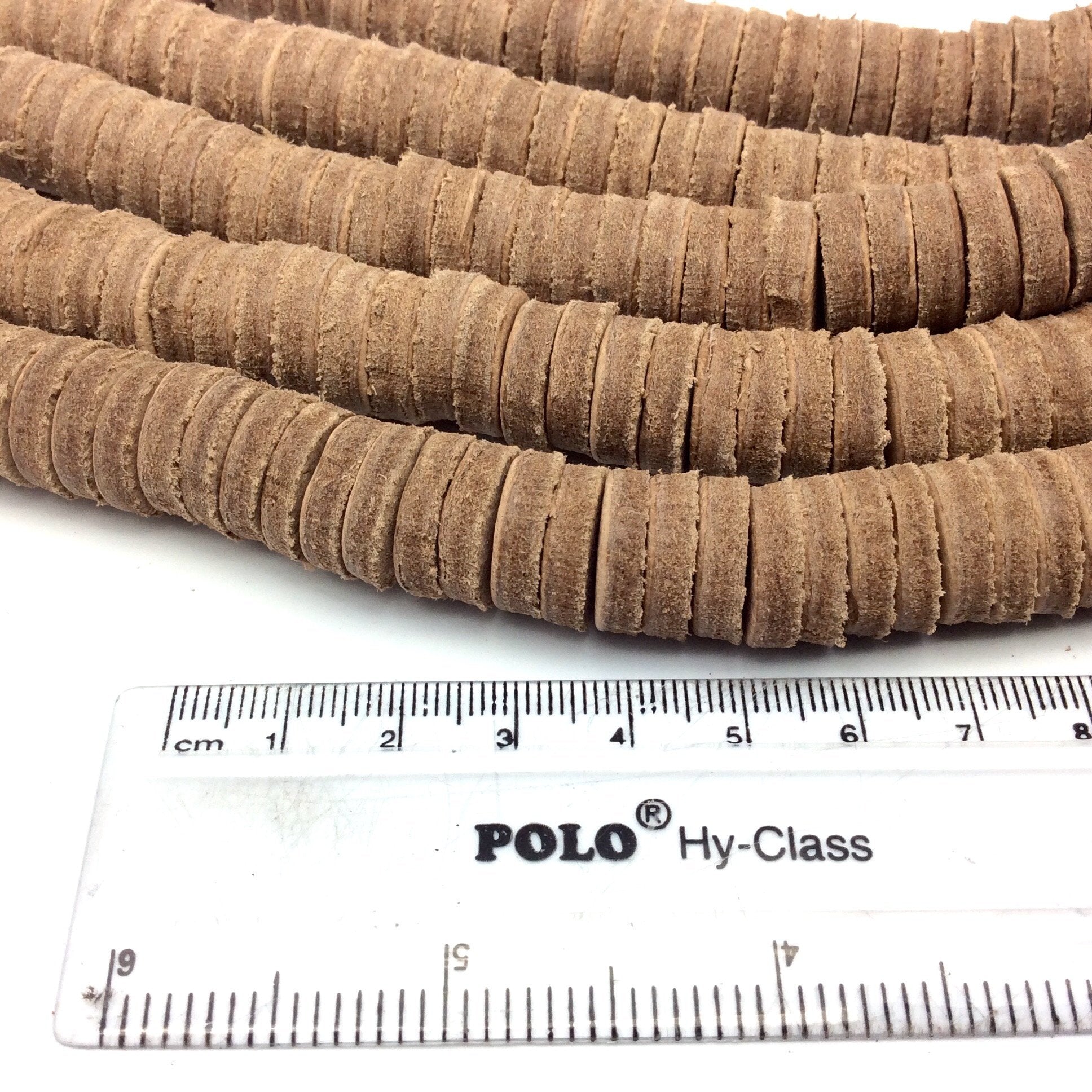 15mm Natural Light Brown Colored Suede Leather Heishi/Disc Beads with 2mm Holes - 7.5" Strand (Approx. 50 Beads) - Sold by the Strand