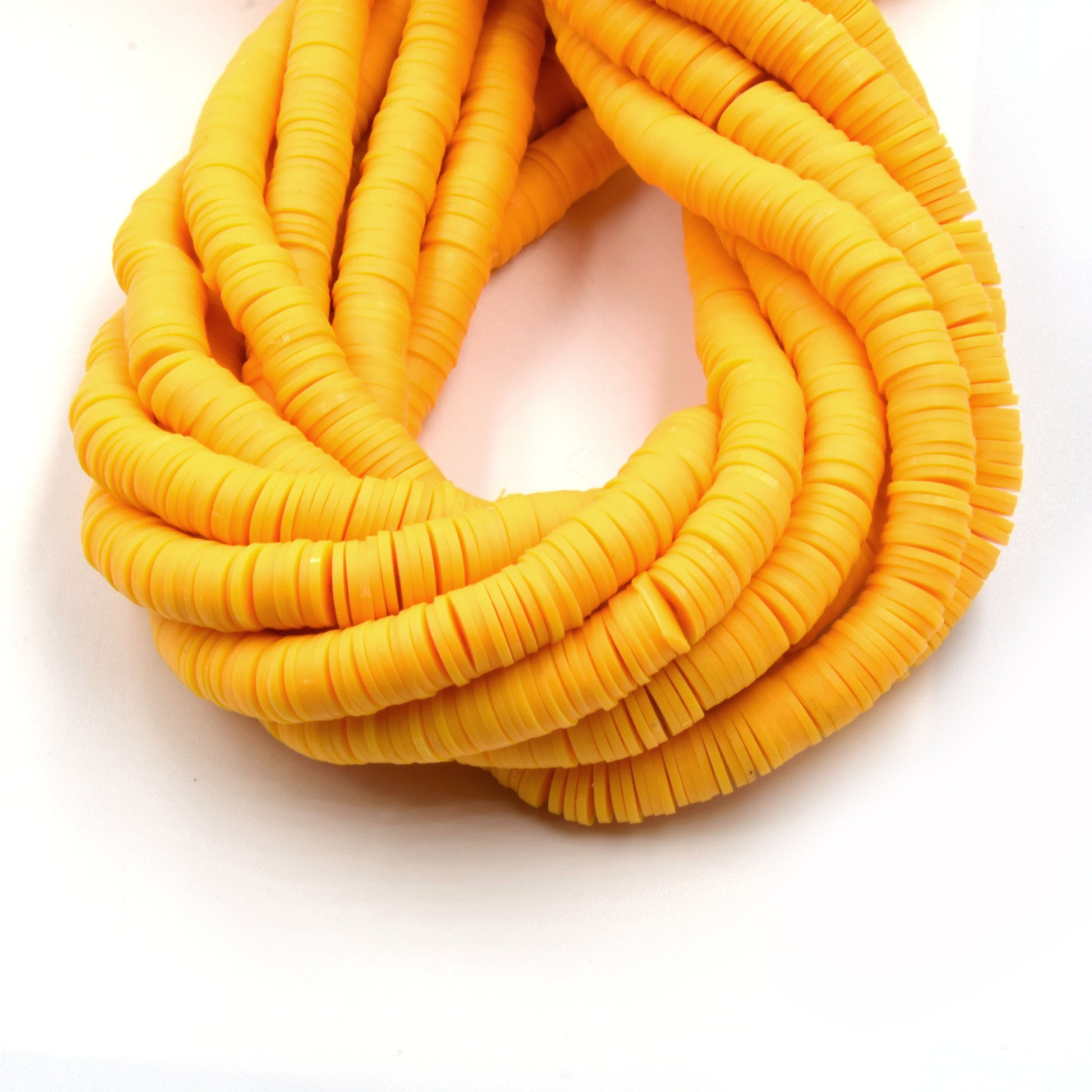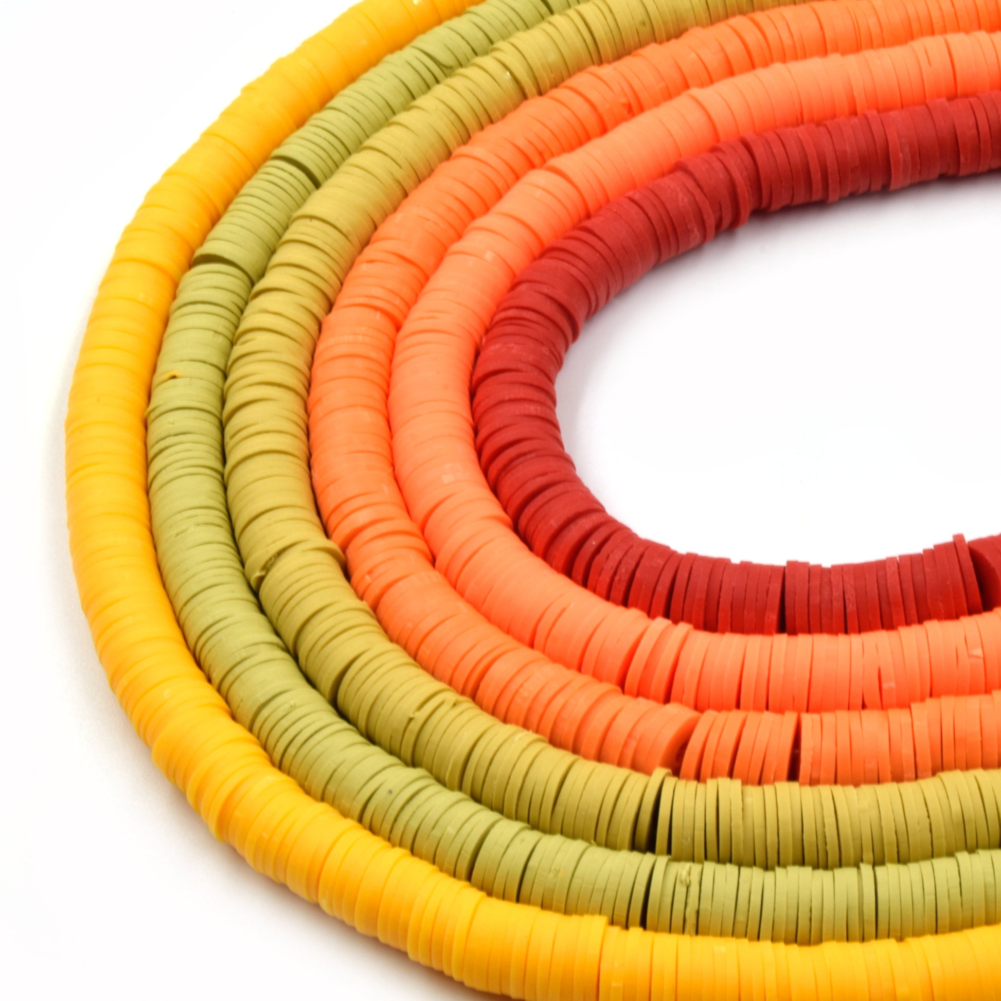 Description The African Vinyl Beads are a vibrant set of 8mm heishi-style disc beads designed in shades of red, orange, and yellow. Crafted from soft vinyl clay, these beads capture the energy and dynamism of African design with their bold, eye-catching hues and smooth texture. With an approximate strand containing 350 beads over 15 inches, each bead adds a playful yet striking accent to any creation.