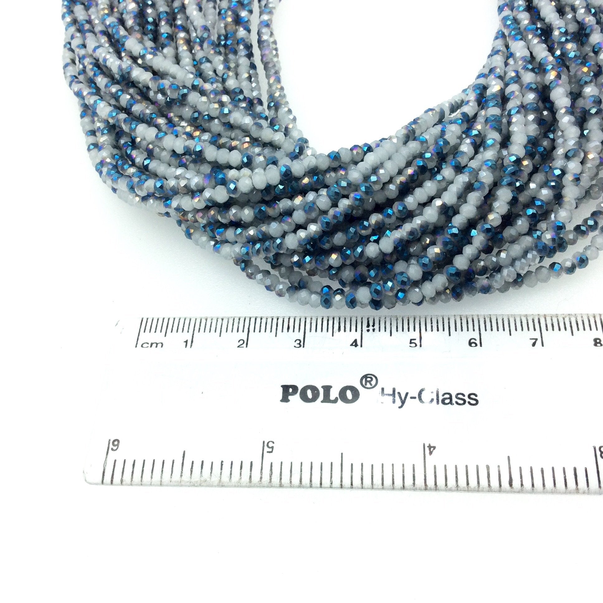 Chinese Crystal Beads | 3mm Faceted AB Bicolor Opaque White Blue Crystal Rondelle Shaped Glass Beads
