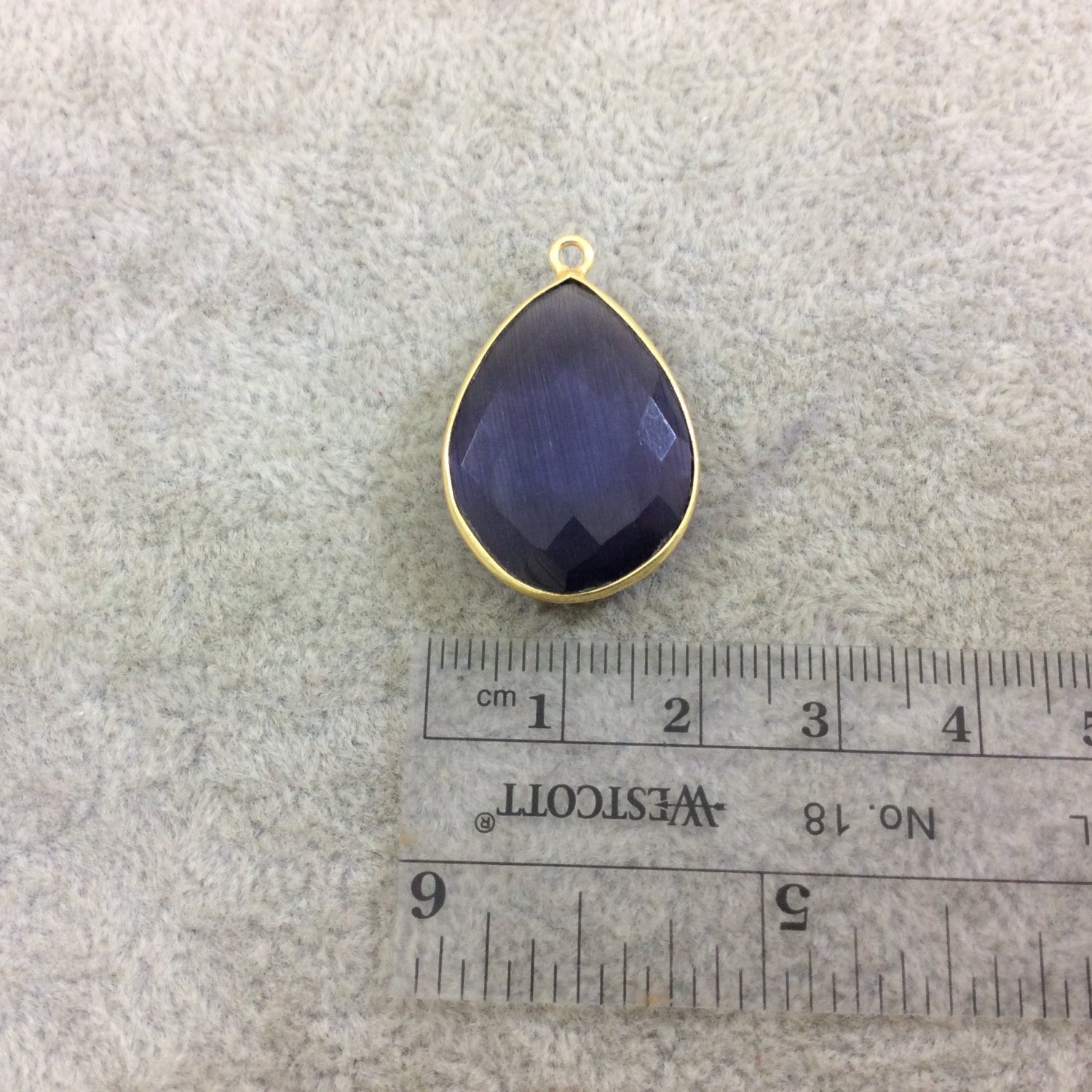 Deep Purple Cat's Eye Bezel | Gold Plated Faceted Synthetic (Manmade Glass) Teardrop Shaped Pendant - Measuring 18mm x 24mm