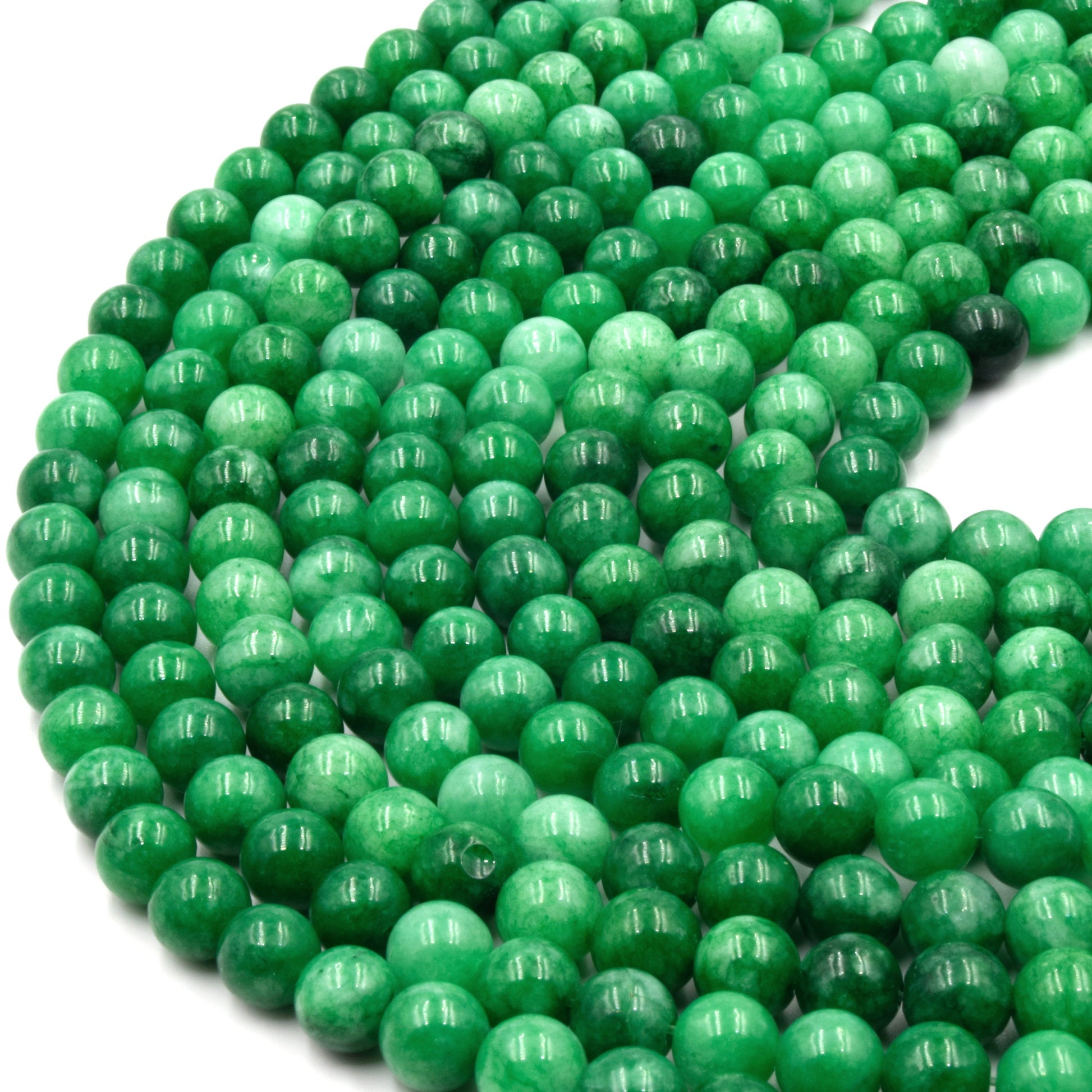 Dyed Smooth Jade Beads | Dyed Mottled Green Round Gemstone Beads - 8mm 10mm Available