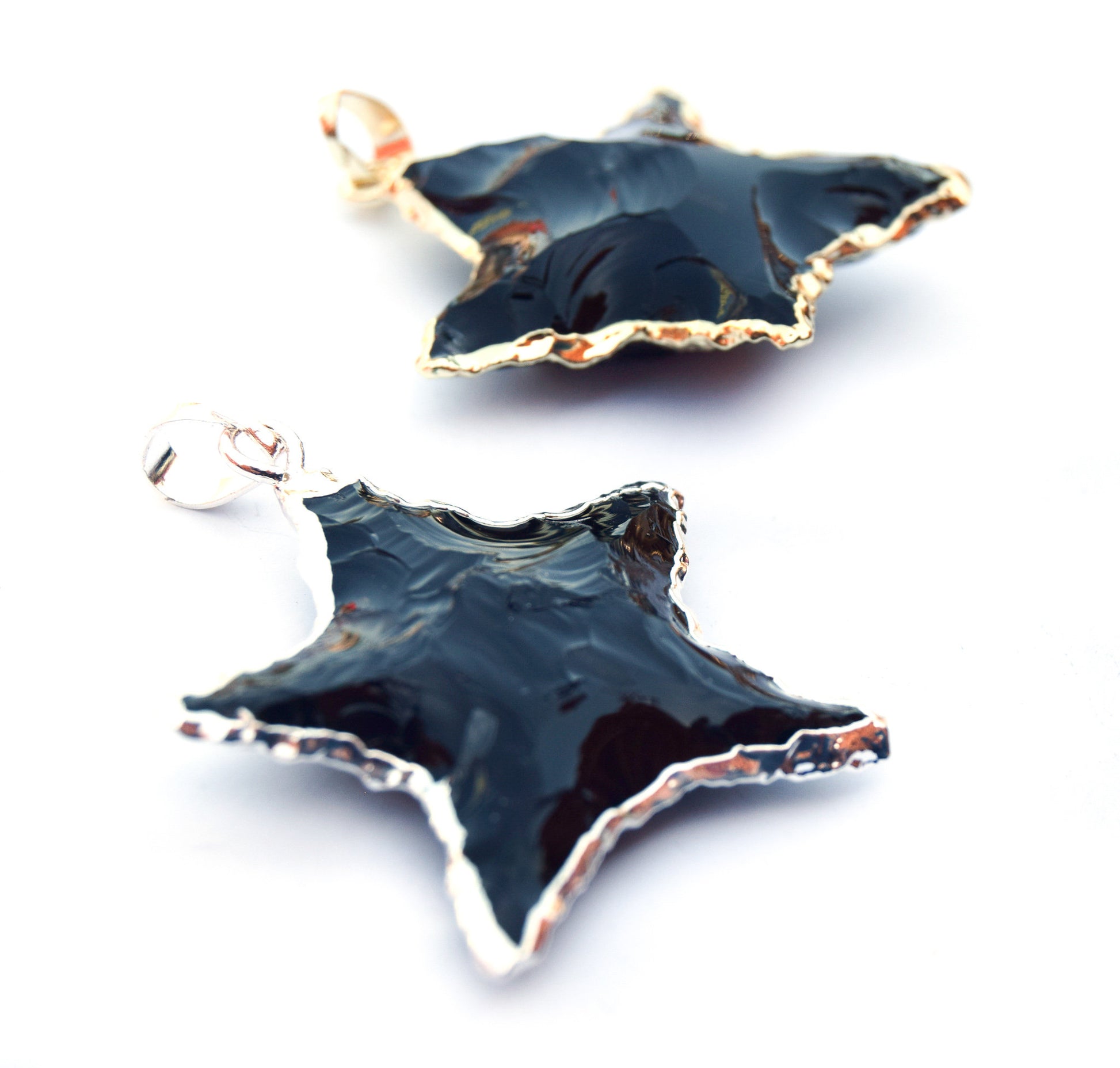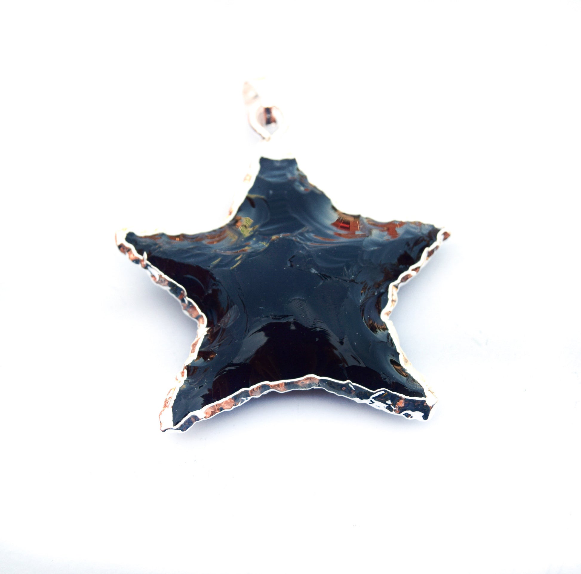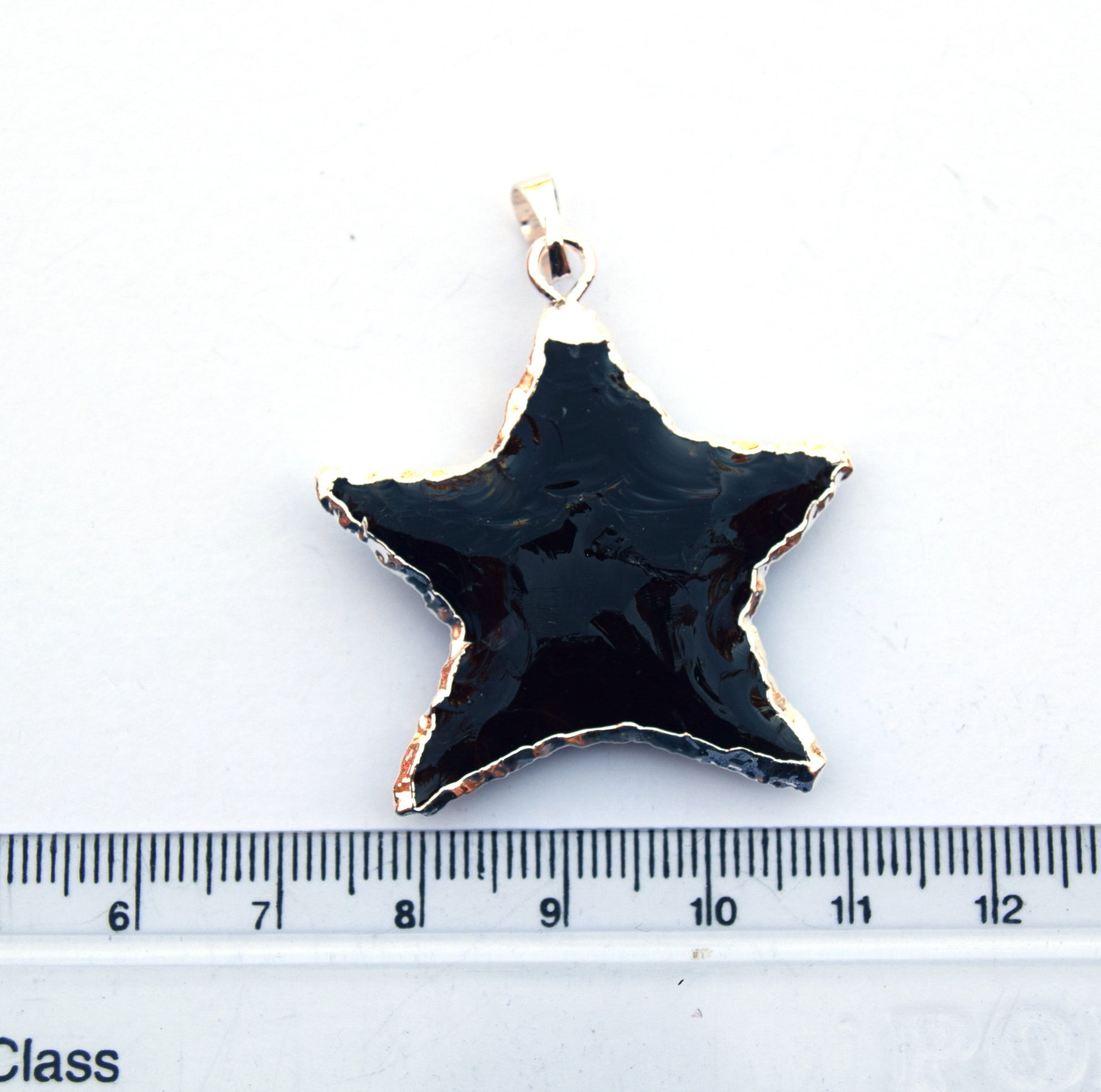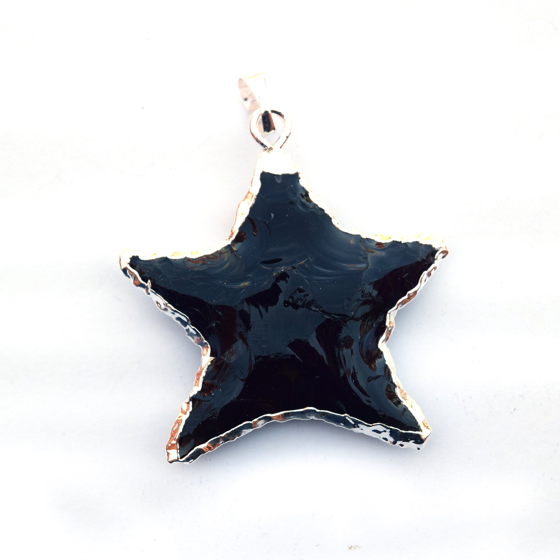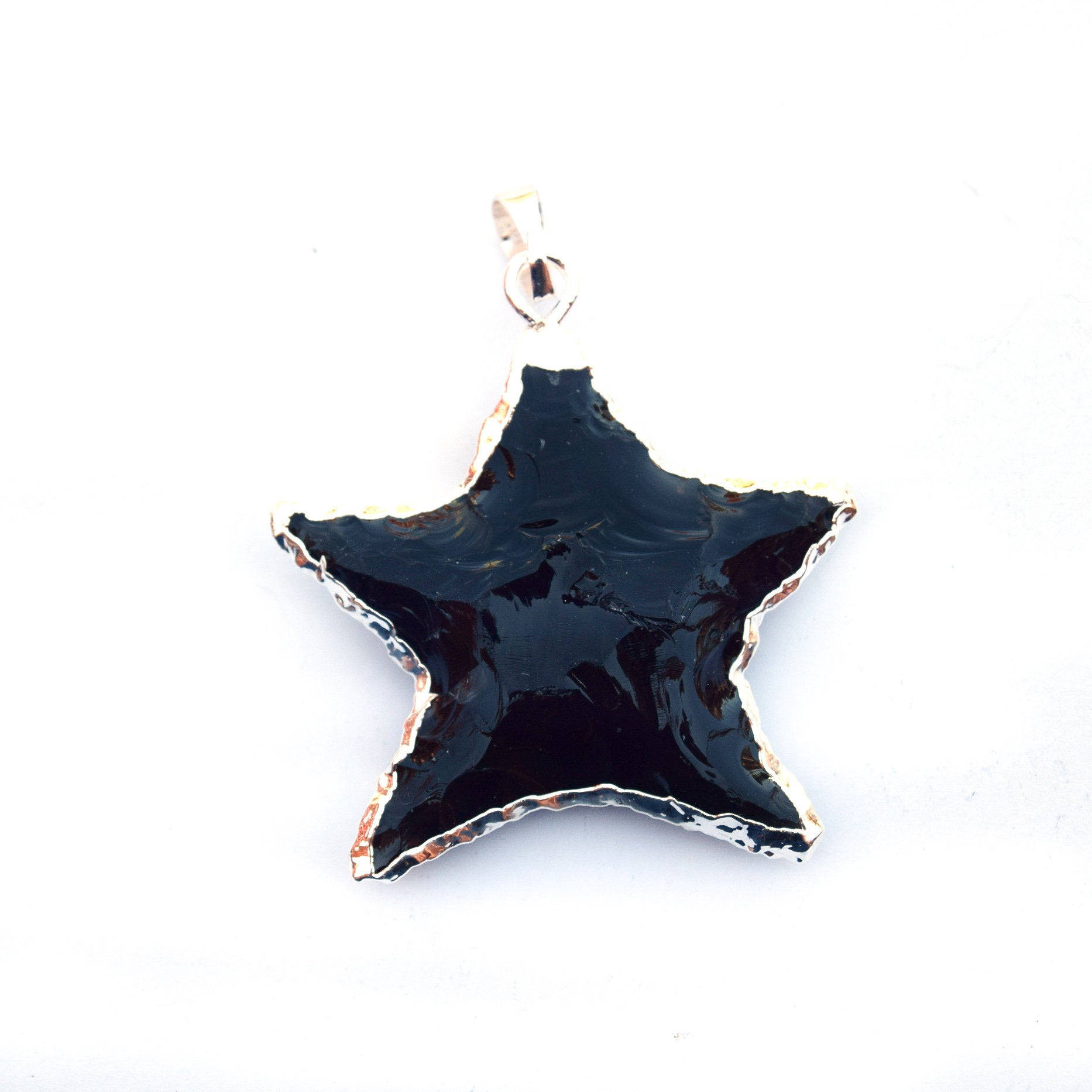 Gemstone Pendant | 35mm Approx Silver Electroplated Black Agate Gemstone Star Pendant