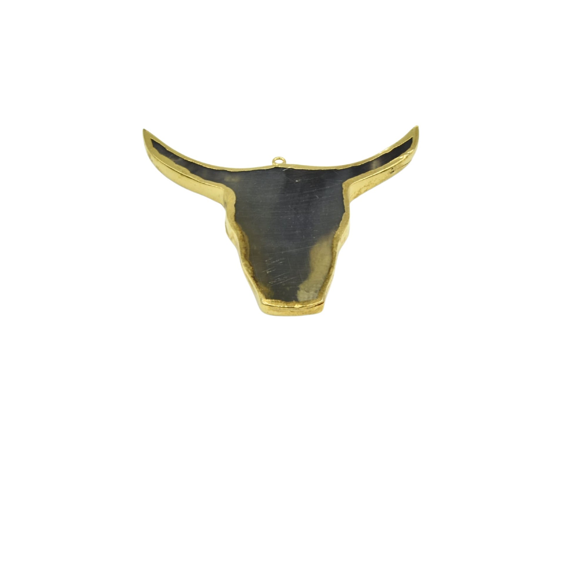 Gold Electrolated Natural Horn Bull/Steer Skull Shaped Focal Pendants - Measuring 65mm x 63mm Approximately- Sold Individually