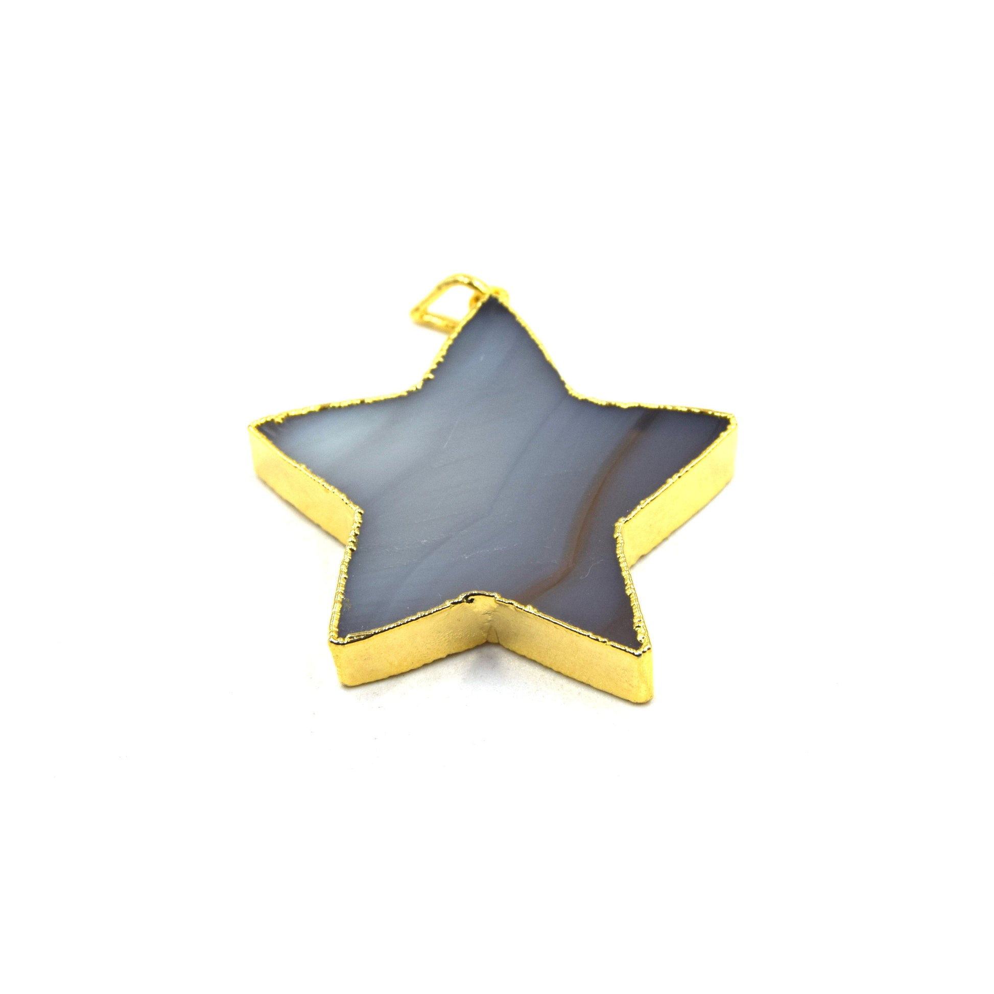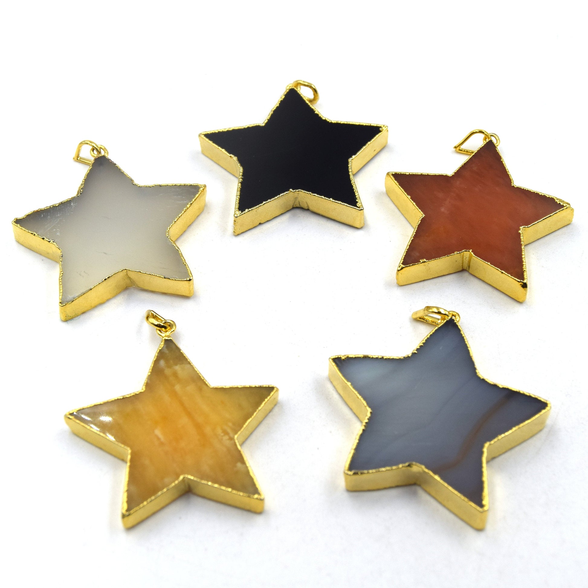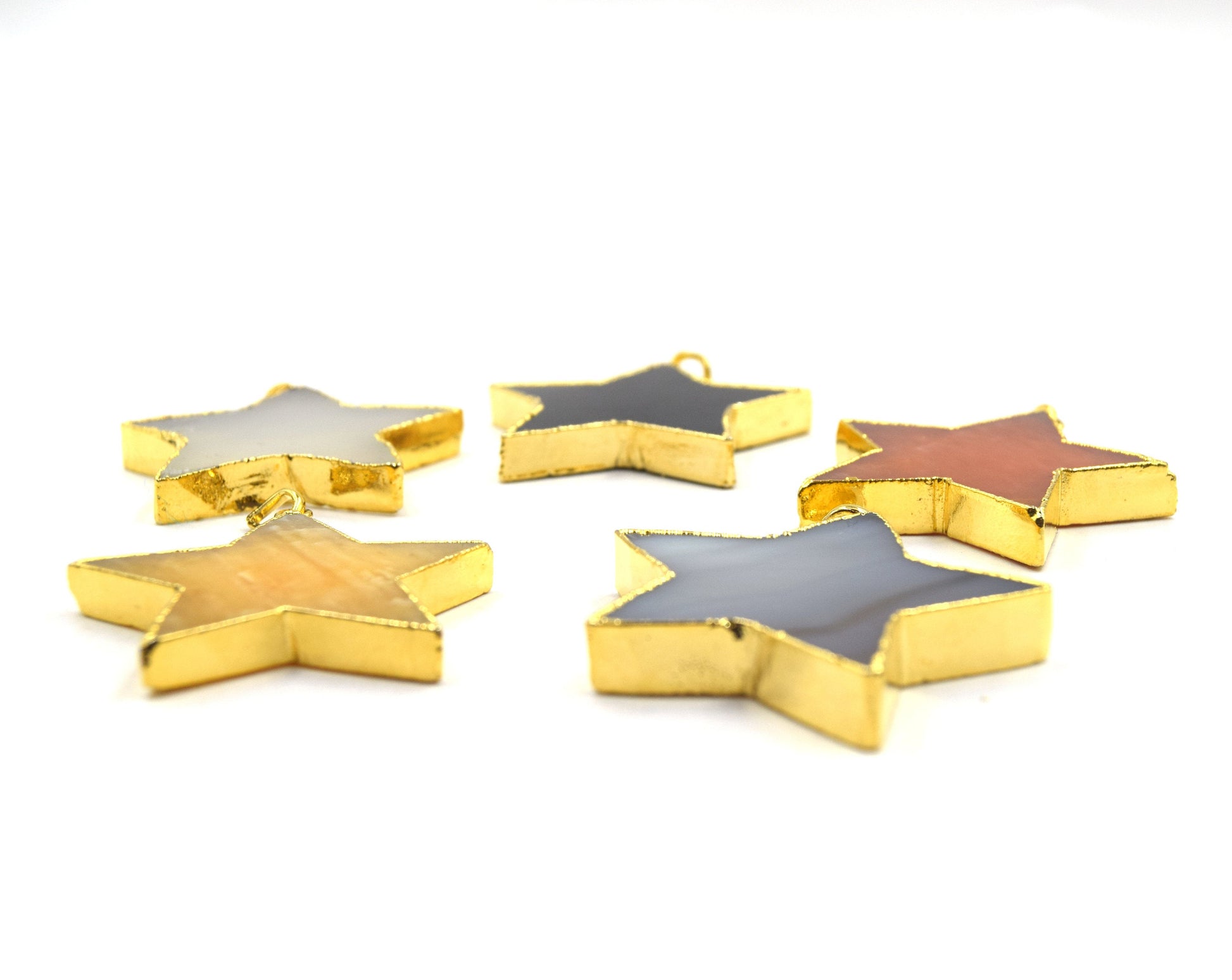 Gold Electroplated Star Gemstone Pendants | Agate Star Pendants | 45mm x 45mm