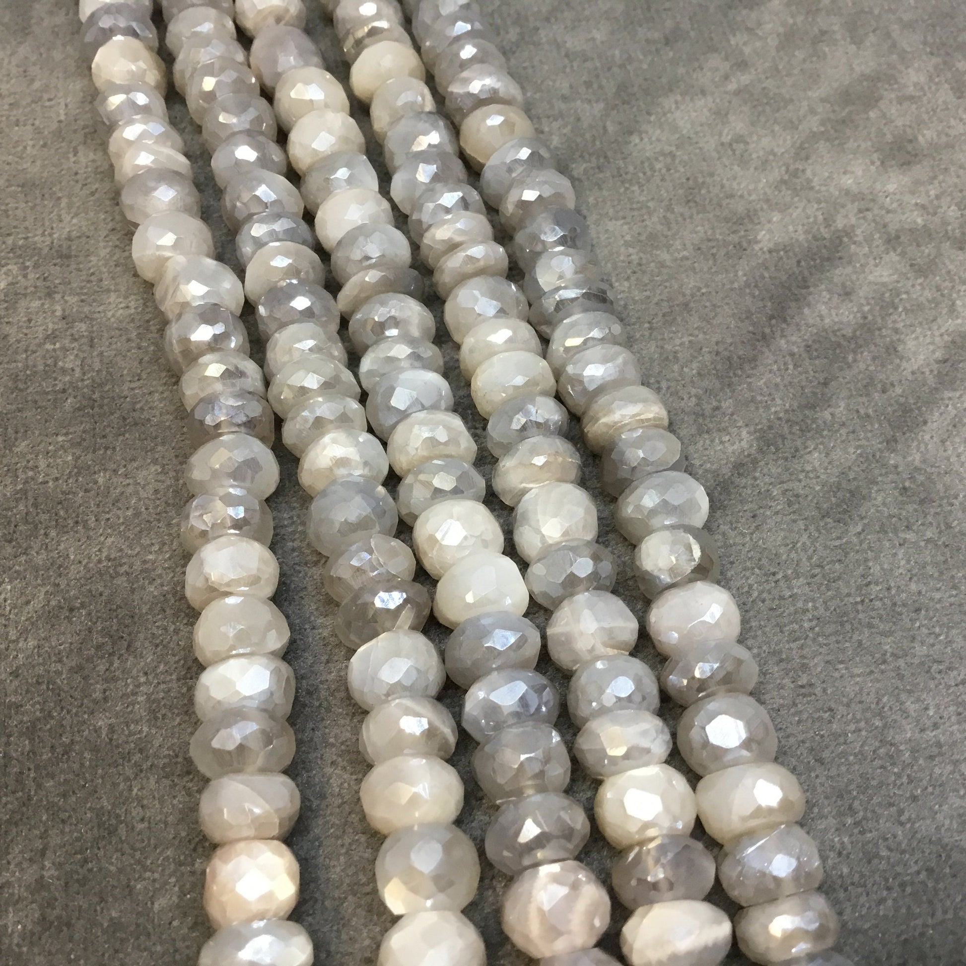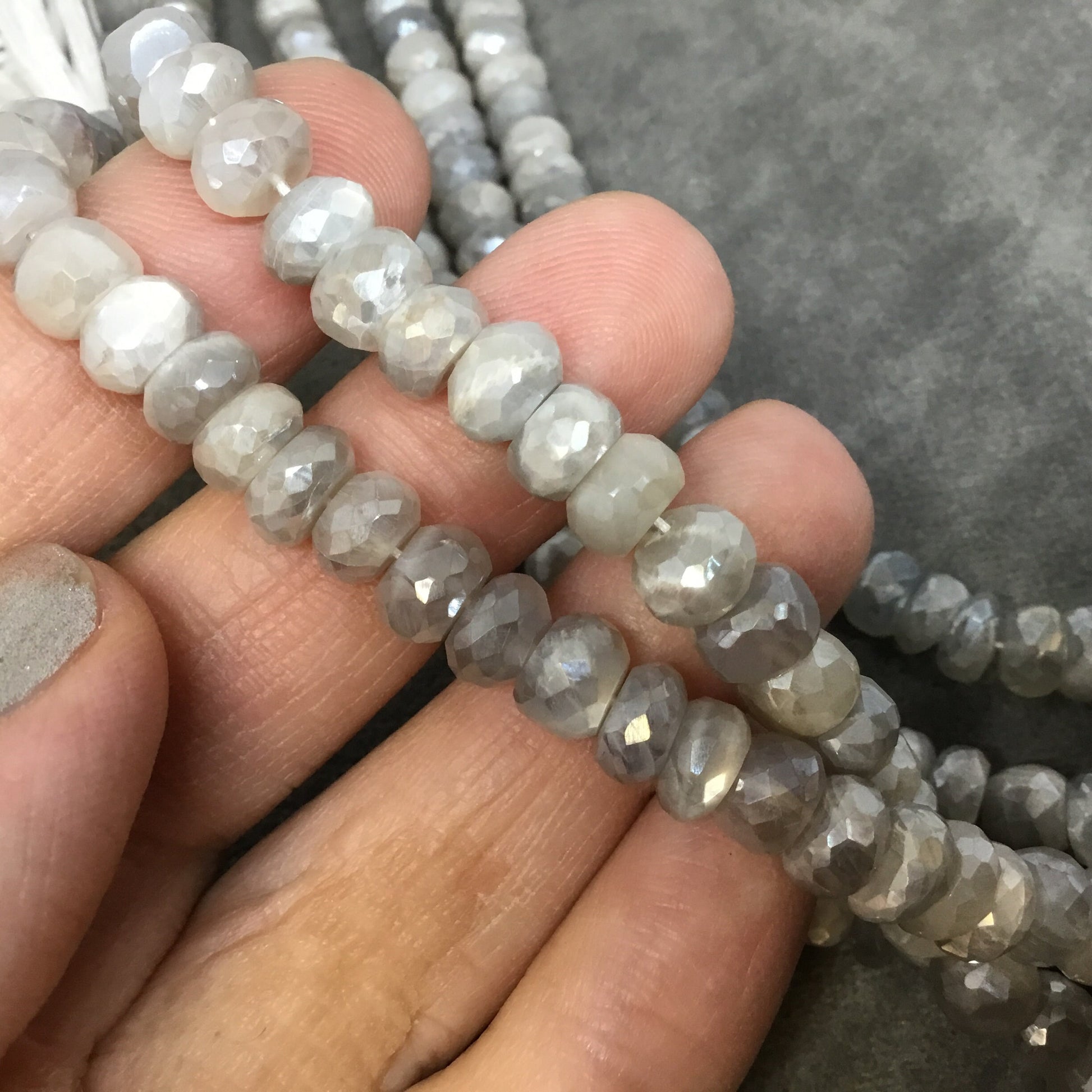 Mystic Gray Moonstone Rondelle Beads - 8mm faceted