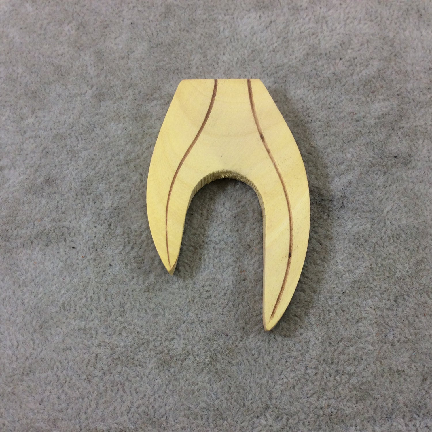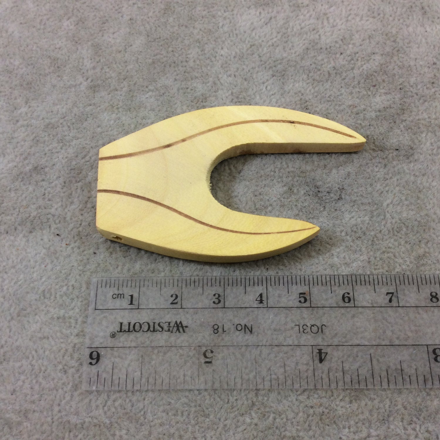 SALE 2.75" Pale Yellow Flat Stubby Deer Antler Shaped Natural Carved Wooden Drilled Pendant - Measuring 42mm x 68mm, Approx. - (TR275WDDAN)