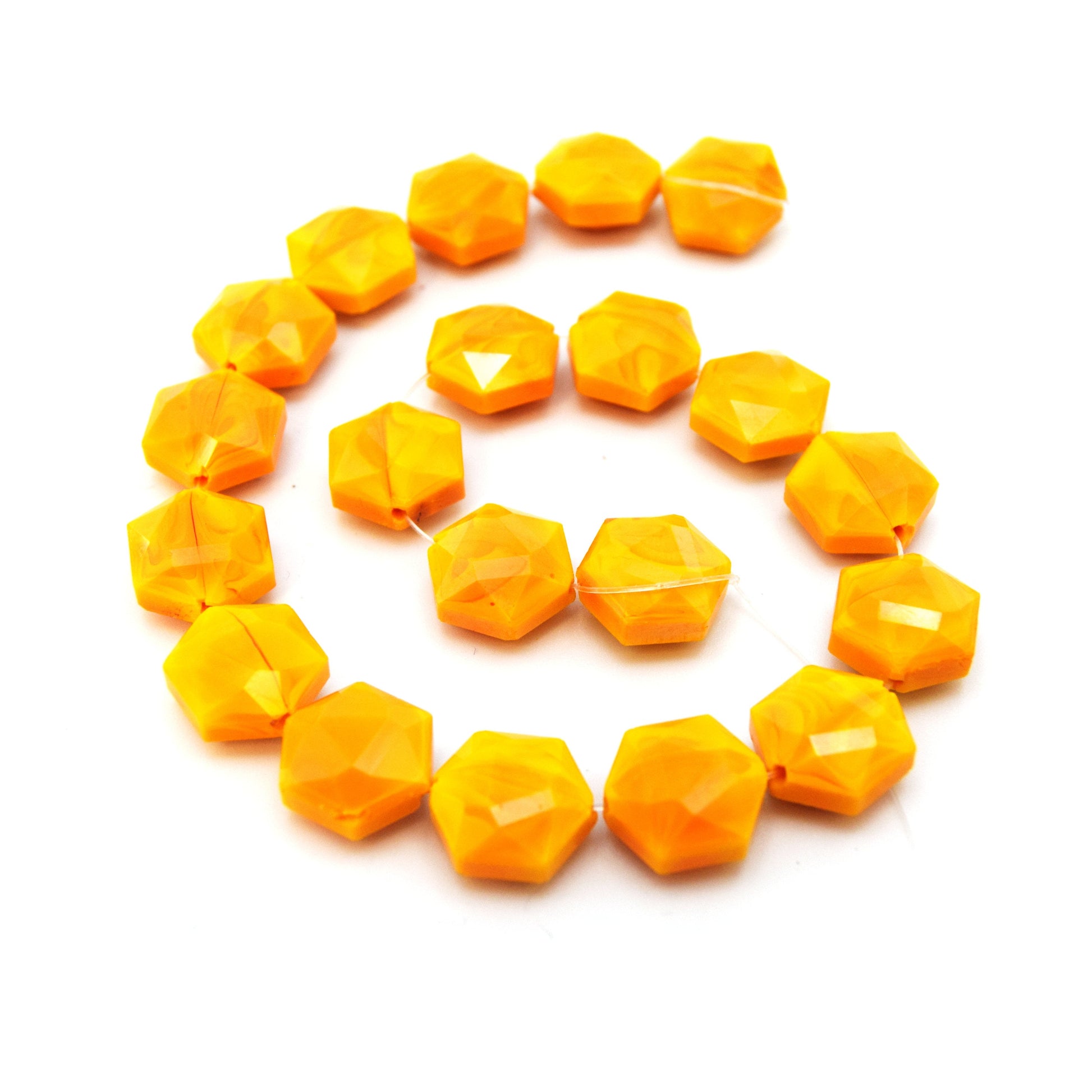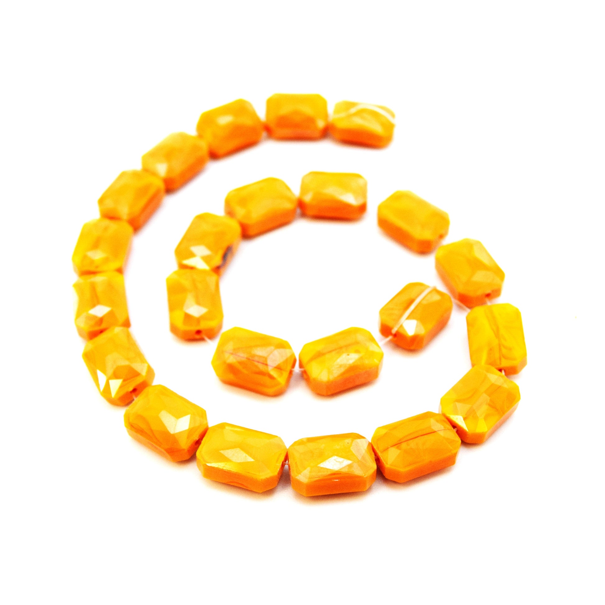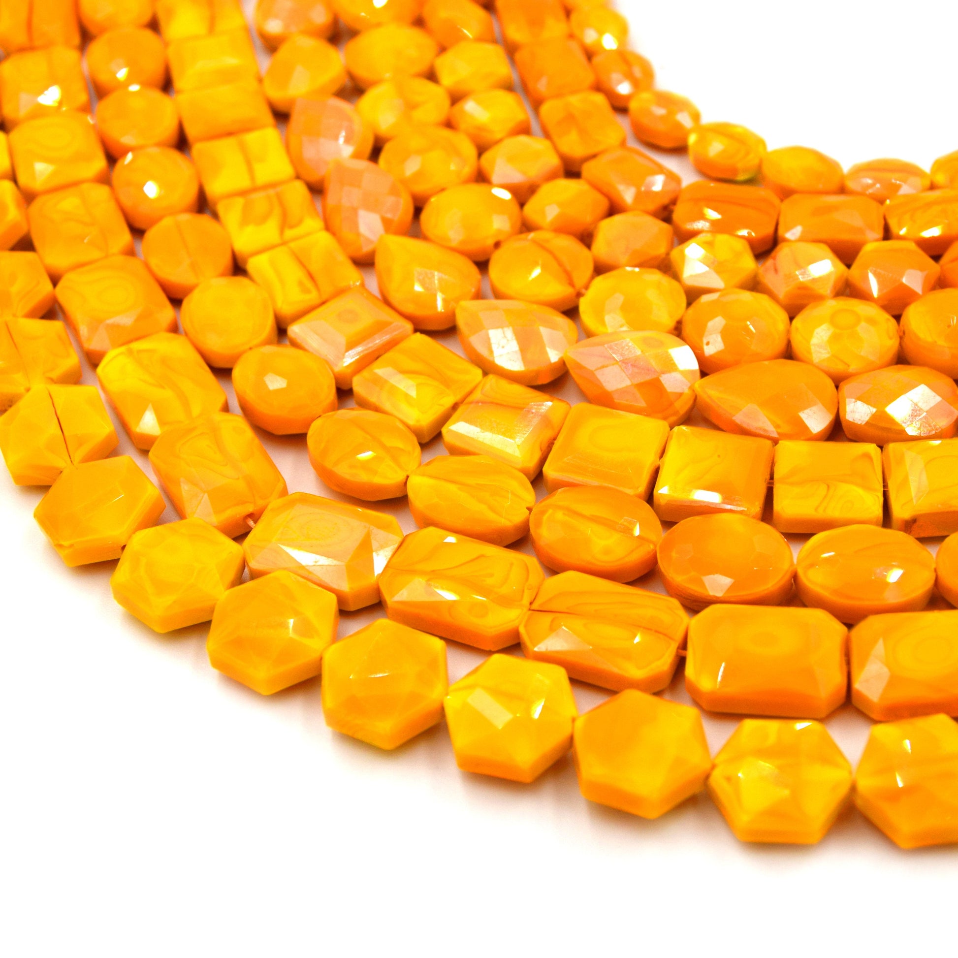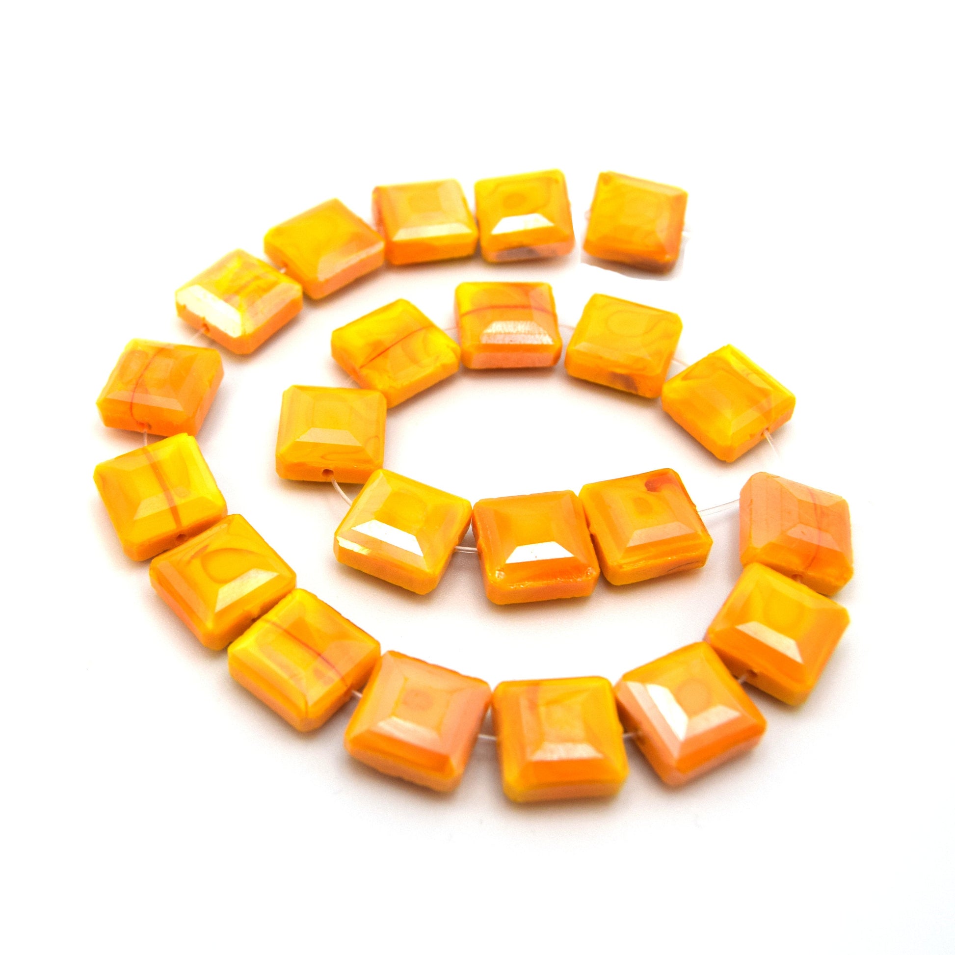 Description of Yellow Orange Chinese Crystal Beads: These striking Yellow Orange Chinese crystal beads are a versatile addition to any crafting collection. With a faceted square design that offers a glossy, light-catching finish, they come in various geometric shapes, including hexagon, rectangle, oval, square, coin, and teardrop. Their vibrant yellow and orange tones exude warmth and elegance, paired with opaque opacity that adds a rich depth to their appearance. Each strand measures approximately 11.5 inches, containing 22 beads, each with a 1mm hole for easy threading.